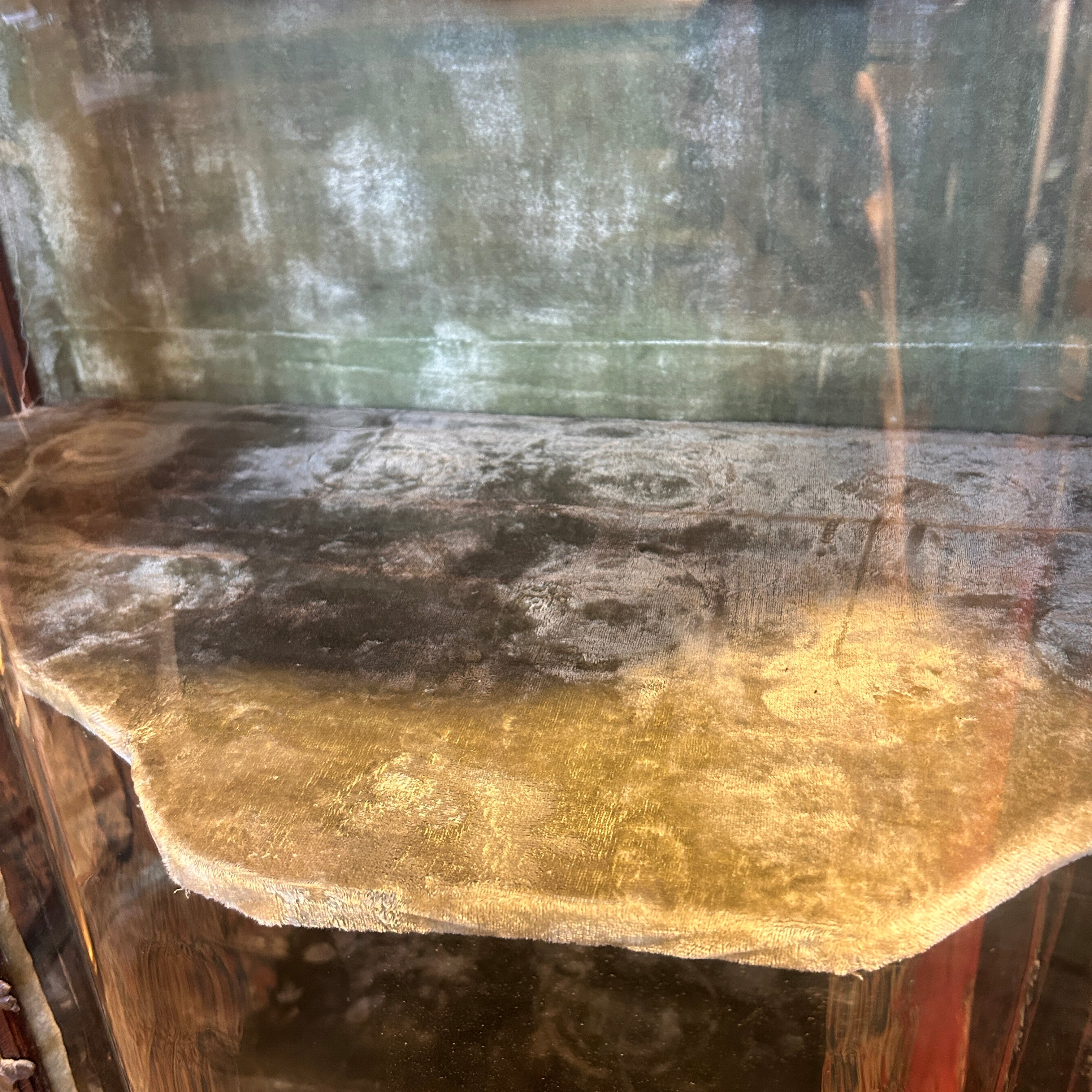 Vitrina francesa serpentine Napoleón III principios del s. XX marquetería y terciopelo
