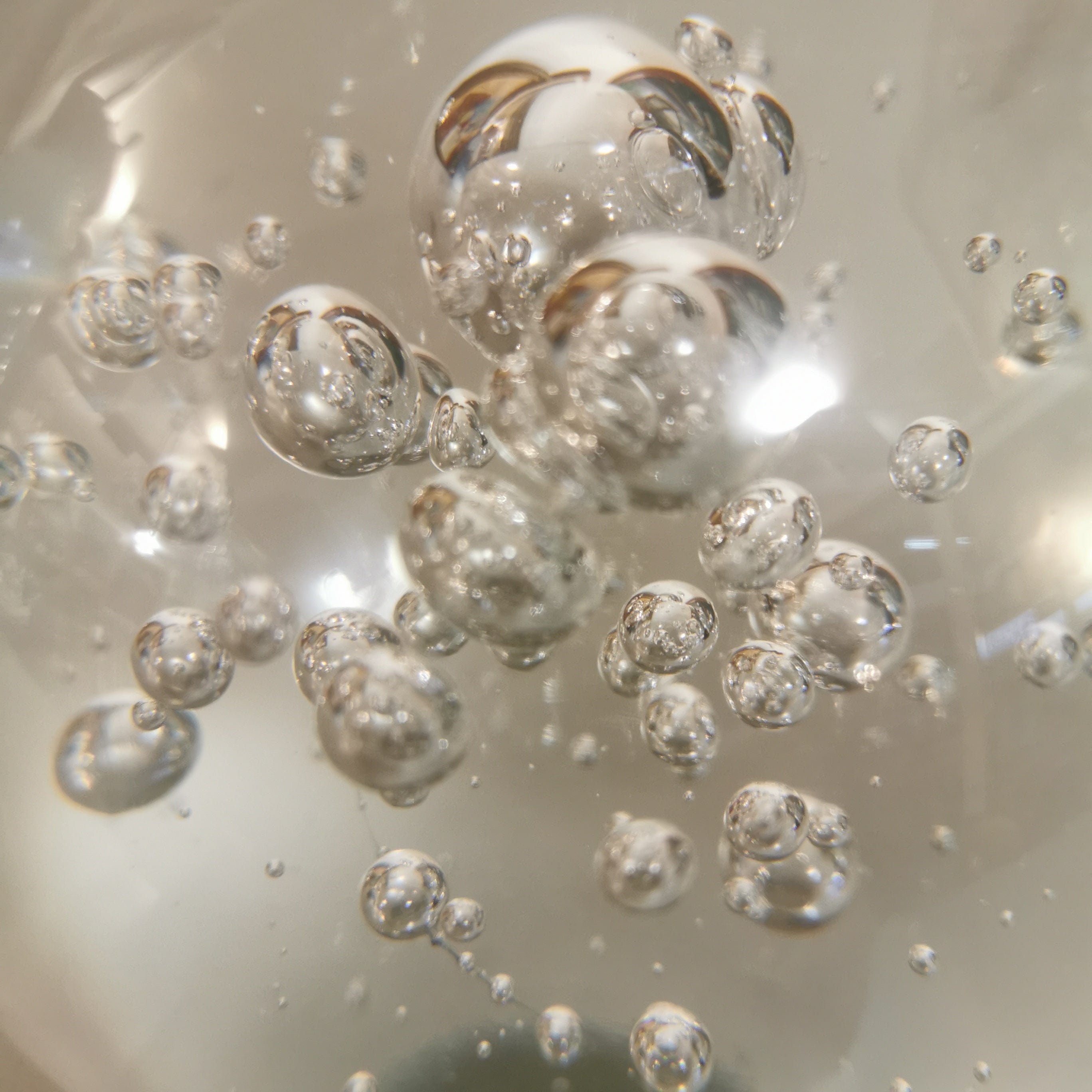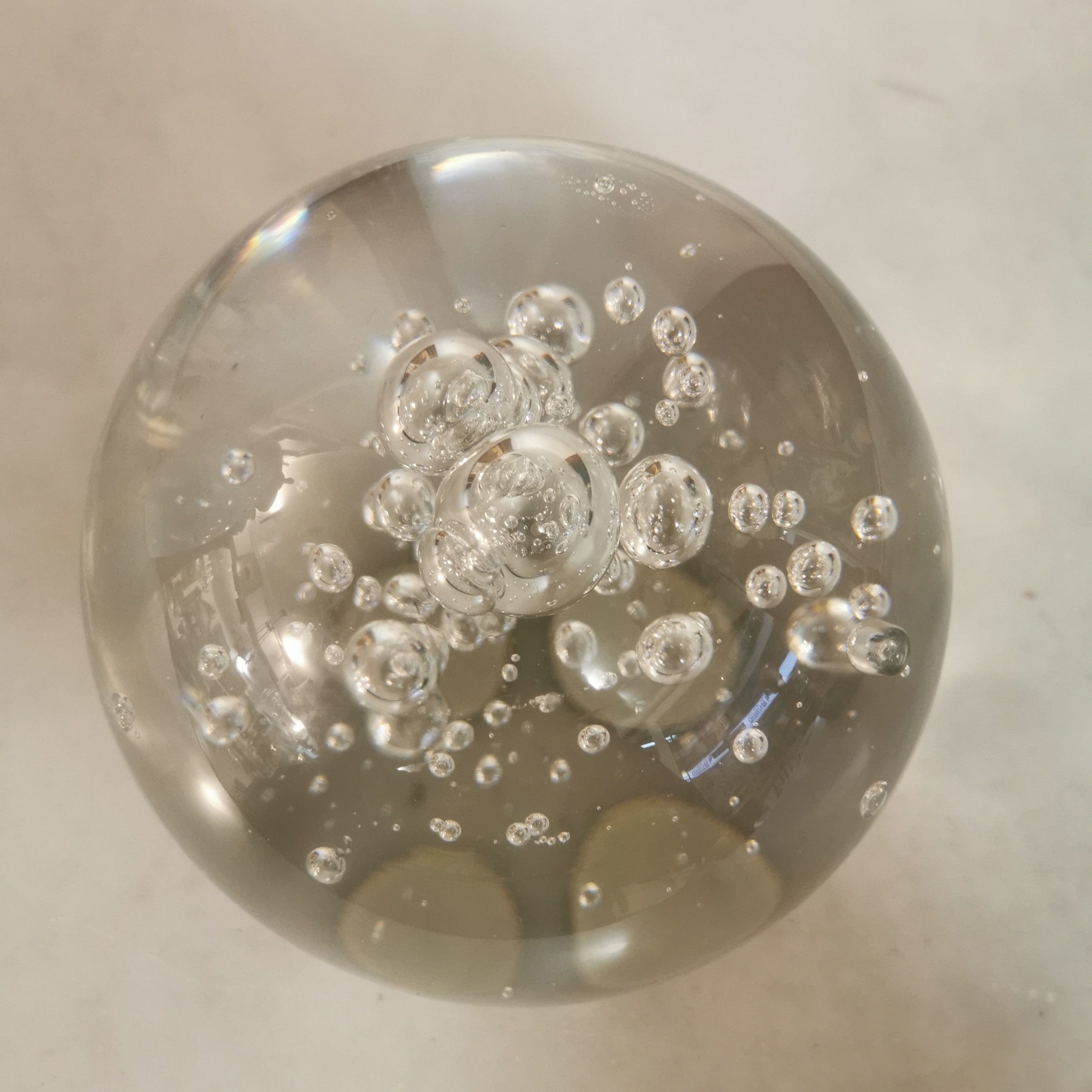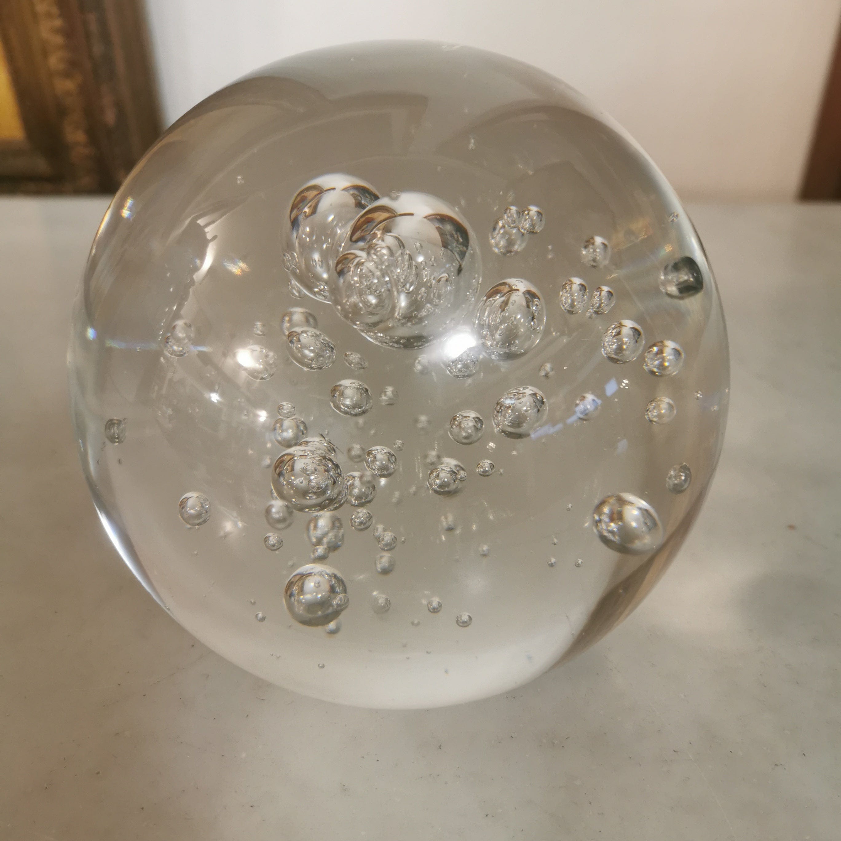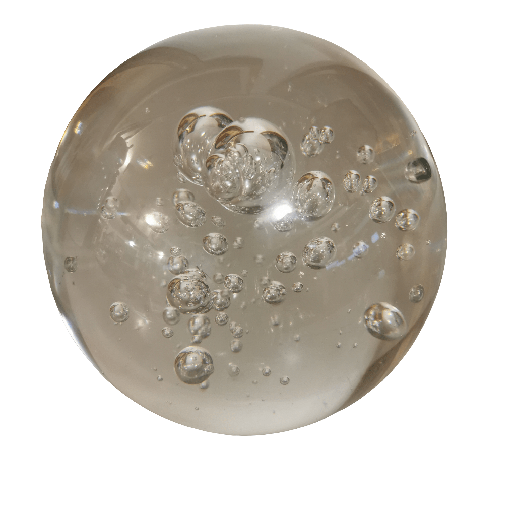 Gran bola pisapapeles de vidrio soplado transparente.