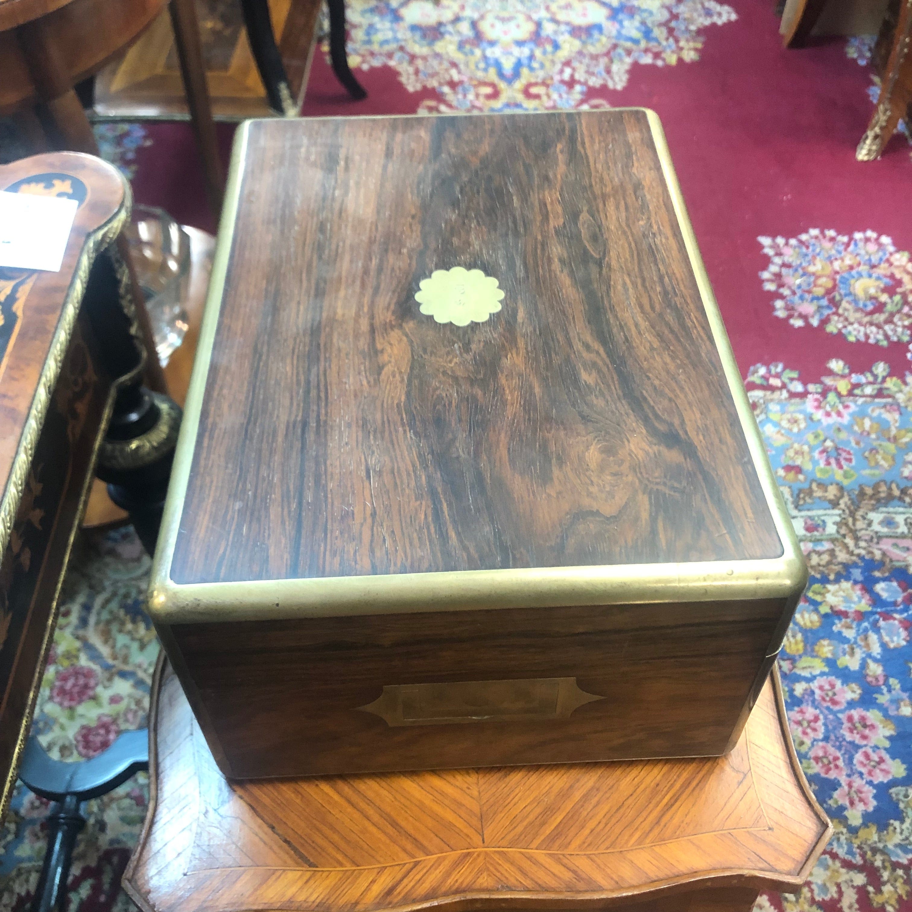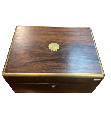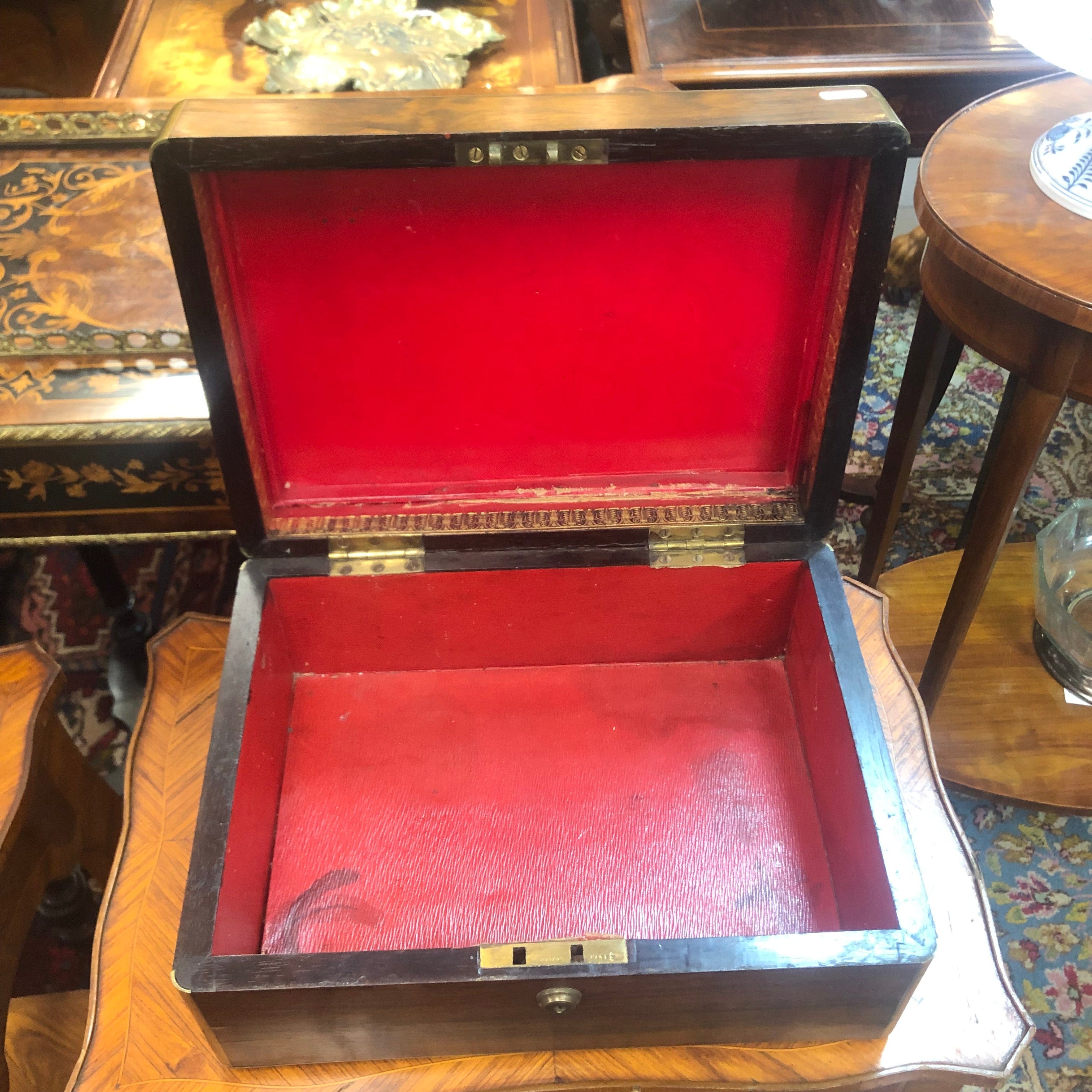 Hermosa y espaciosa caja de madera, con marquetería en bronce.