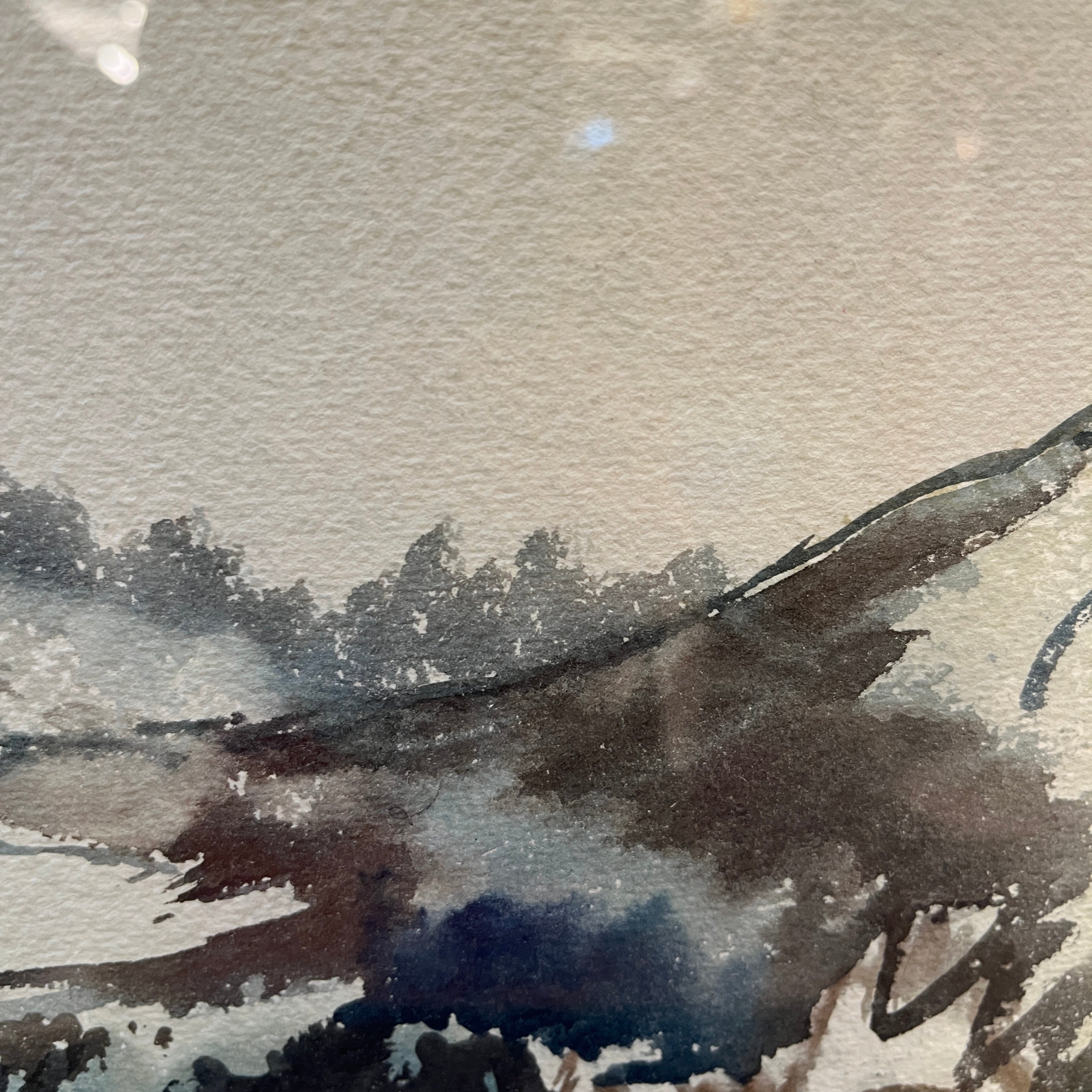 Se trata de una pintura que aprovecha la técnica de la acuarela, dándole una textura húmeda y de colores fríos, transmitiendo una sensación del paisaje al que observa. La Obra tiene un marco de madera contemporánea, de diseño sobrio y terminación en pintura dorada.