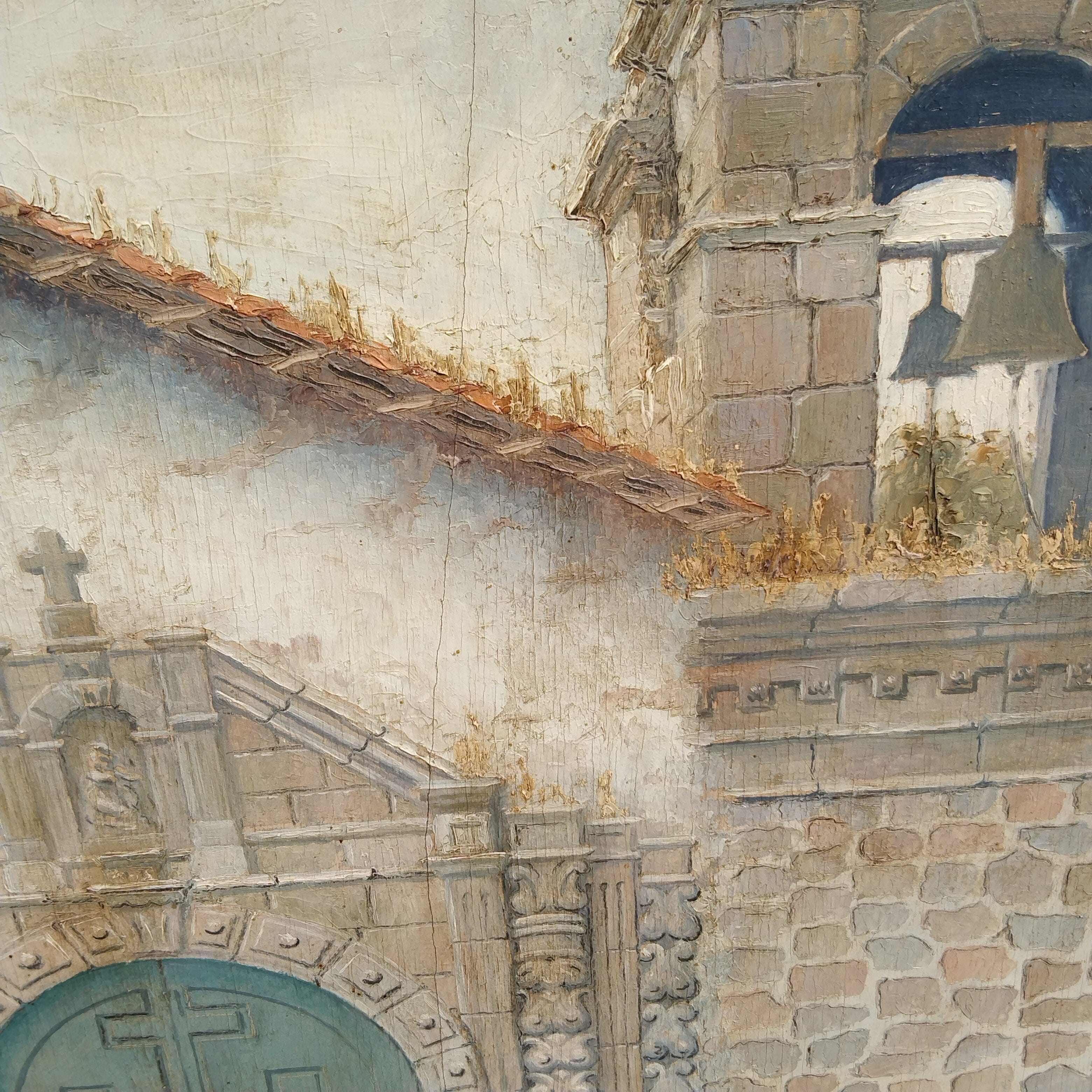 E. Zabala - Óleo sobre madera 'Iglesia de piedra'