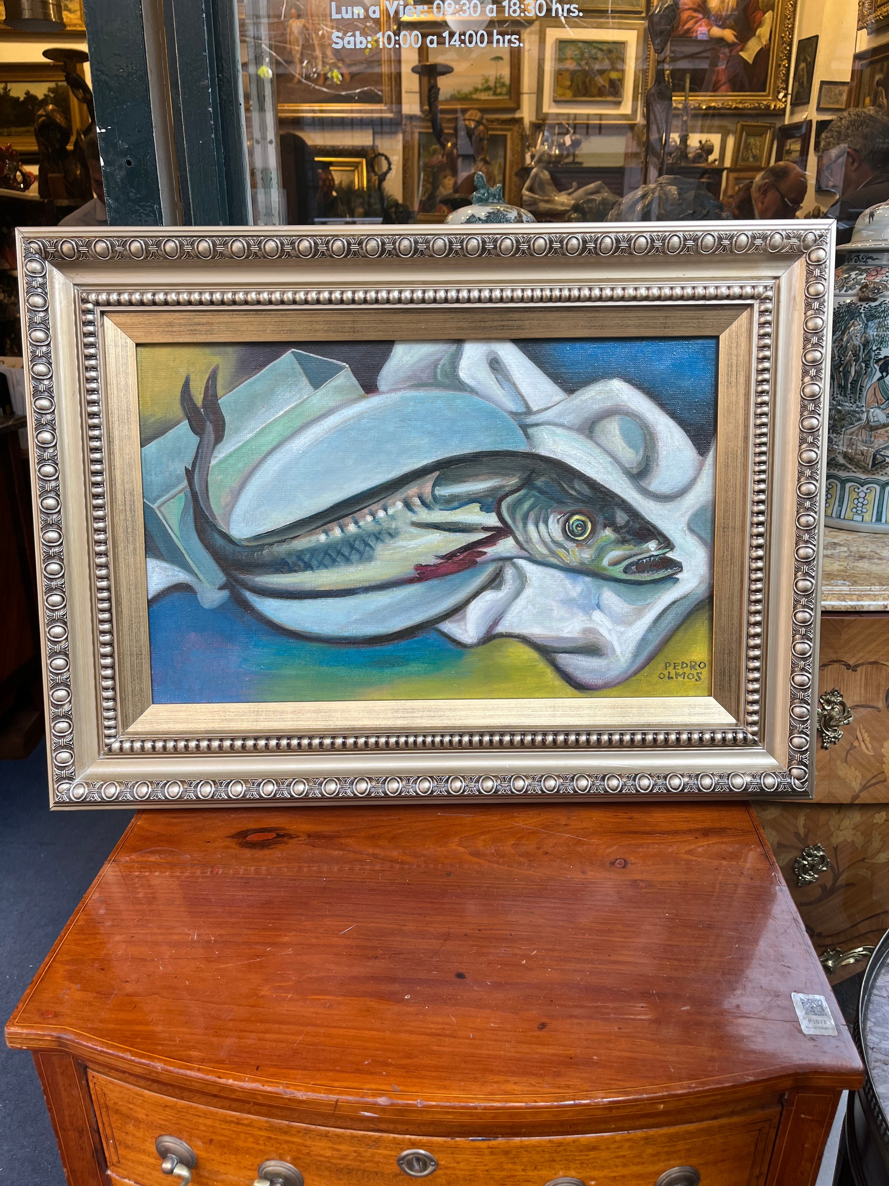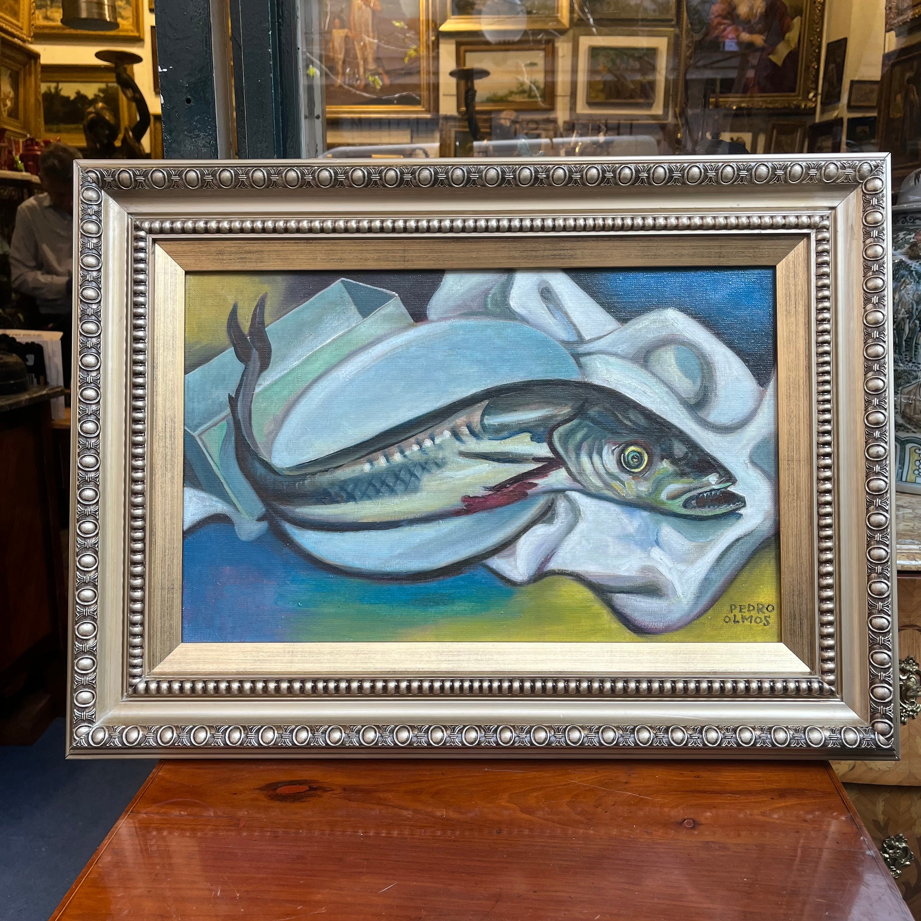 Pedro Olmos - Óleo sobre tela ‘Composición Pez en el Plato’