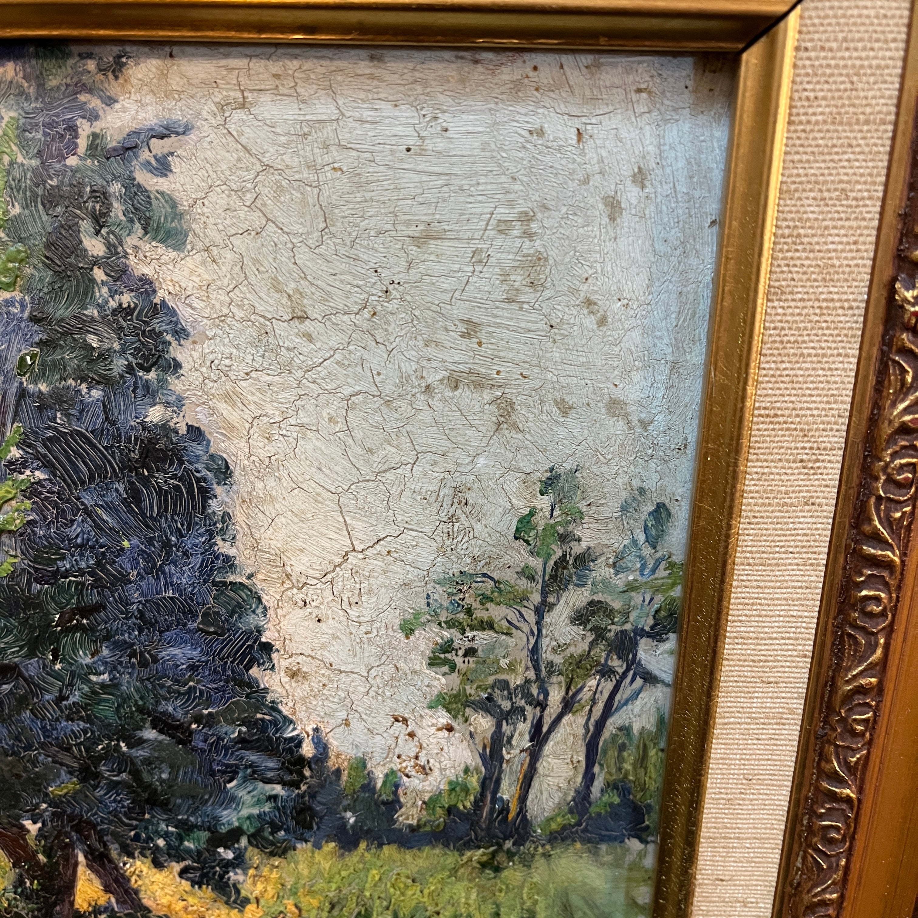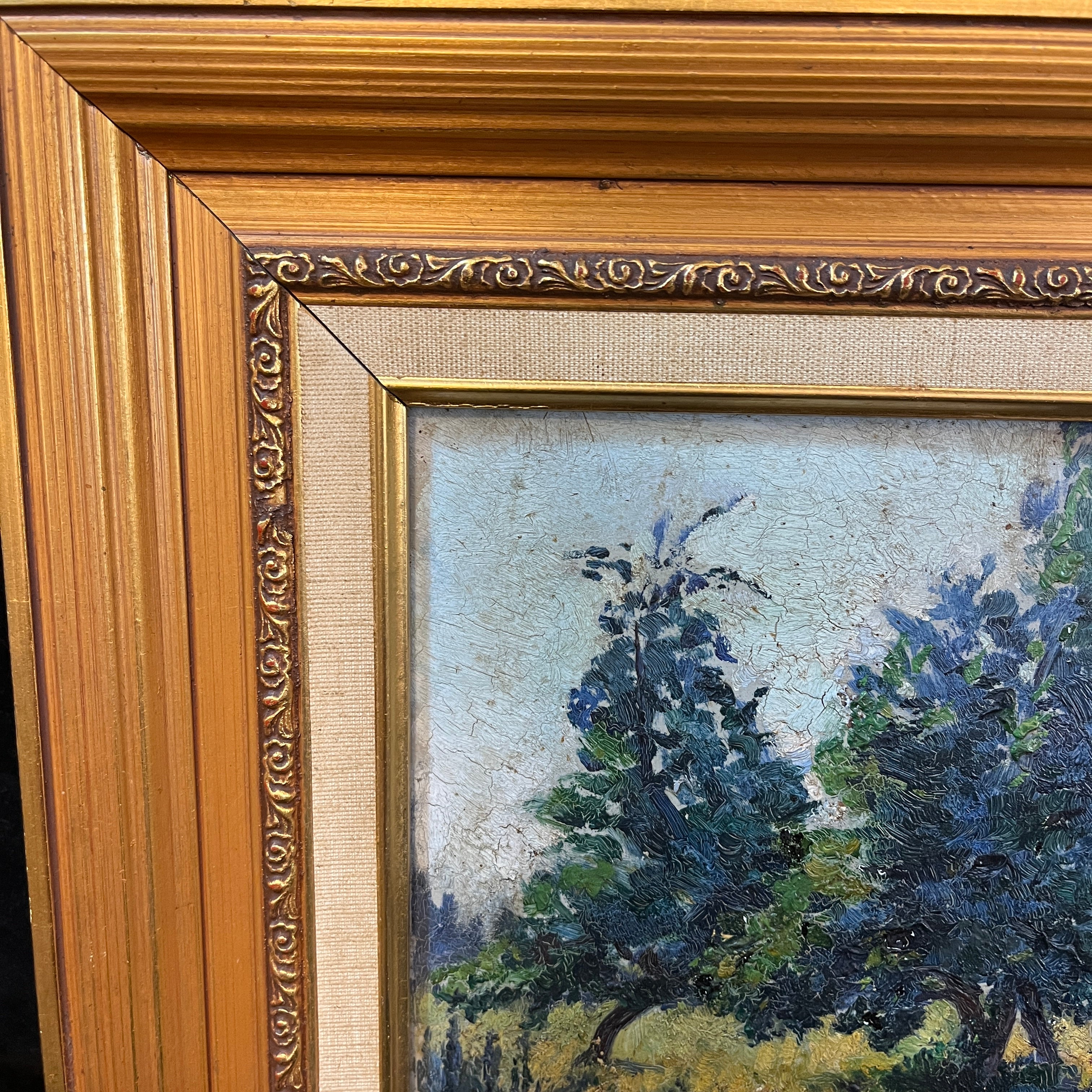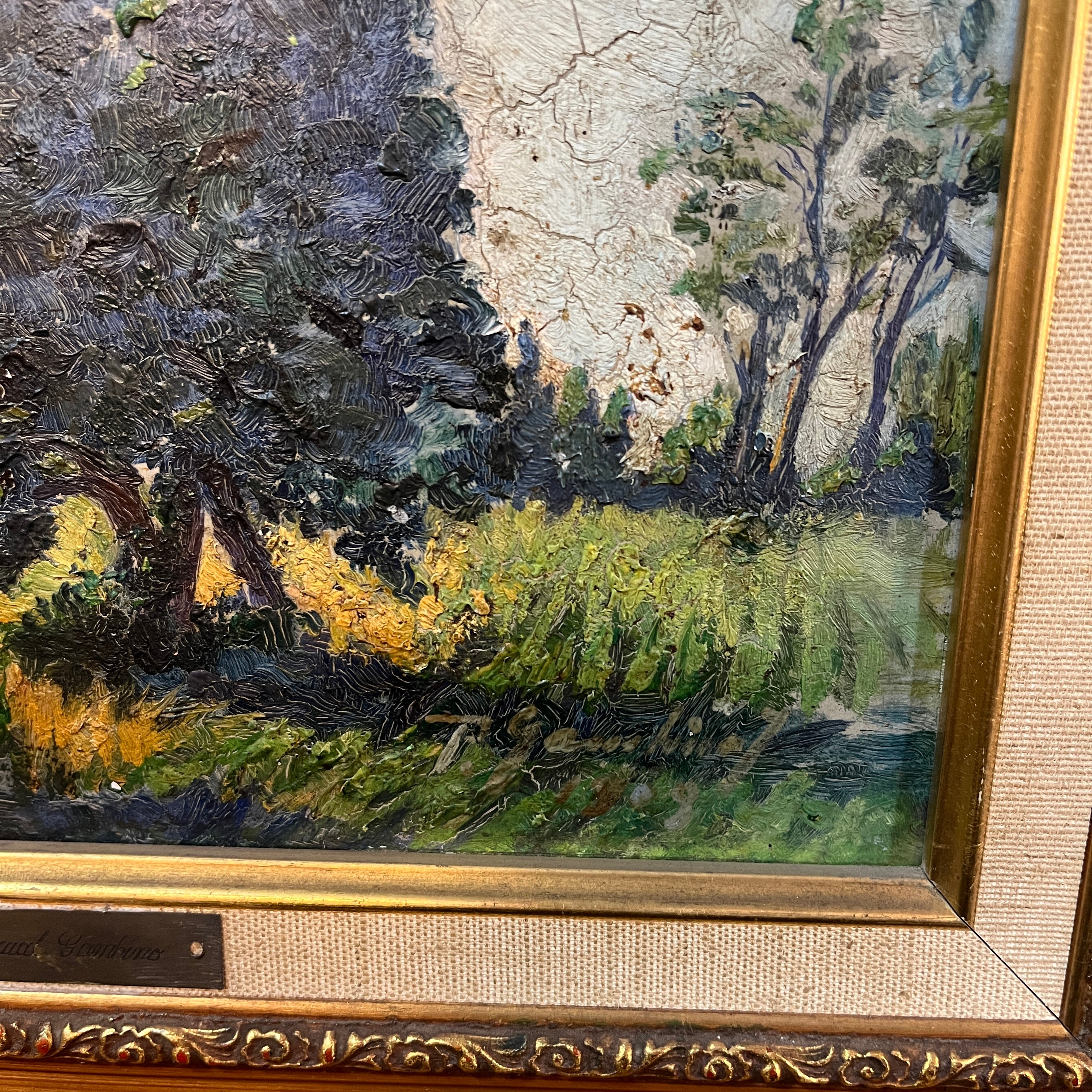 Pascual Gambino - Óleo sobre madera ´Paisaje de dos arboles`
