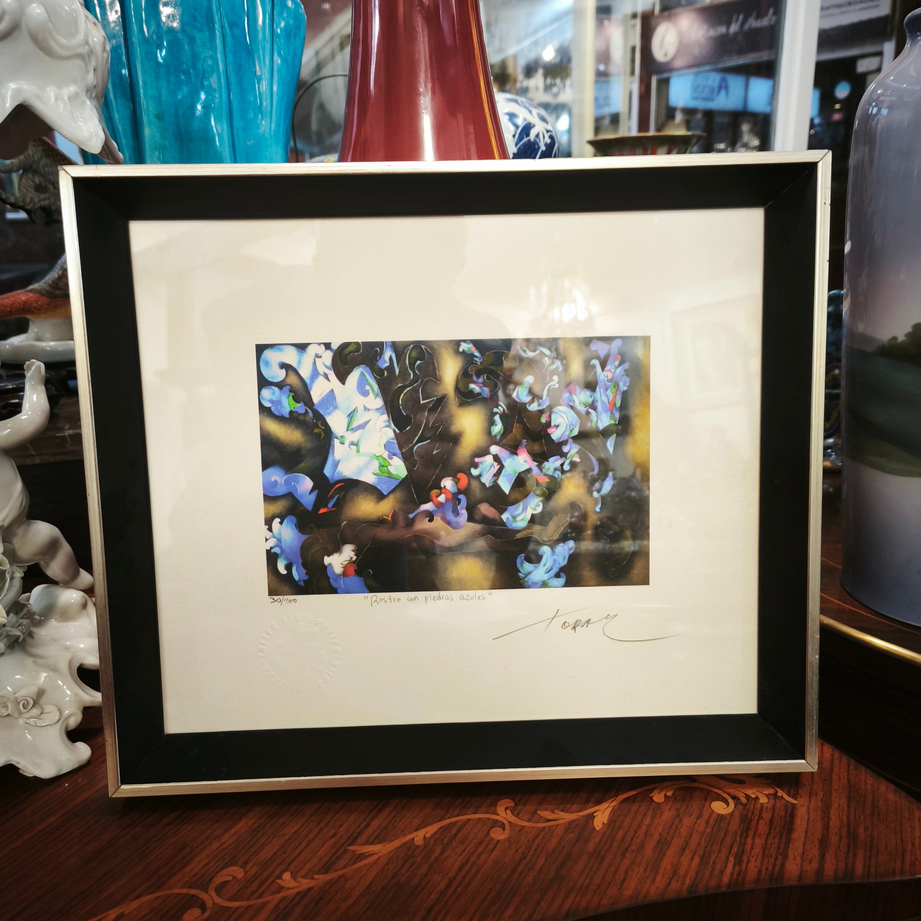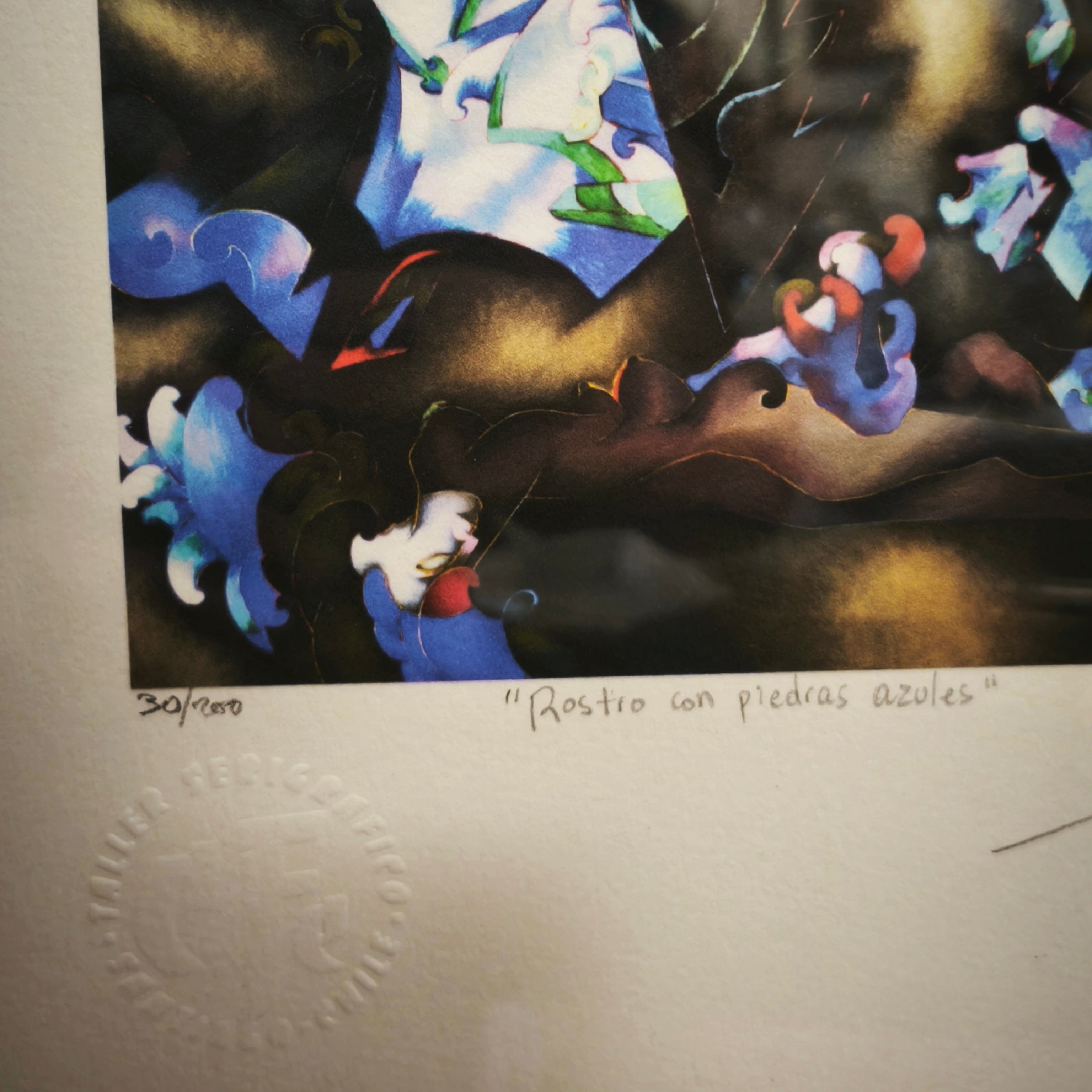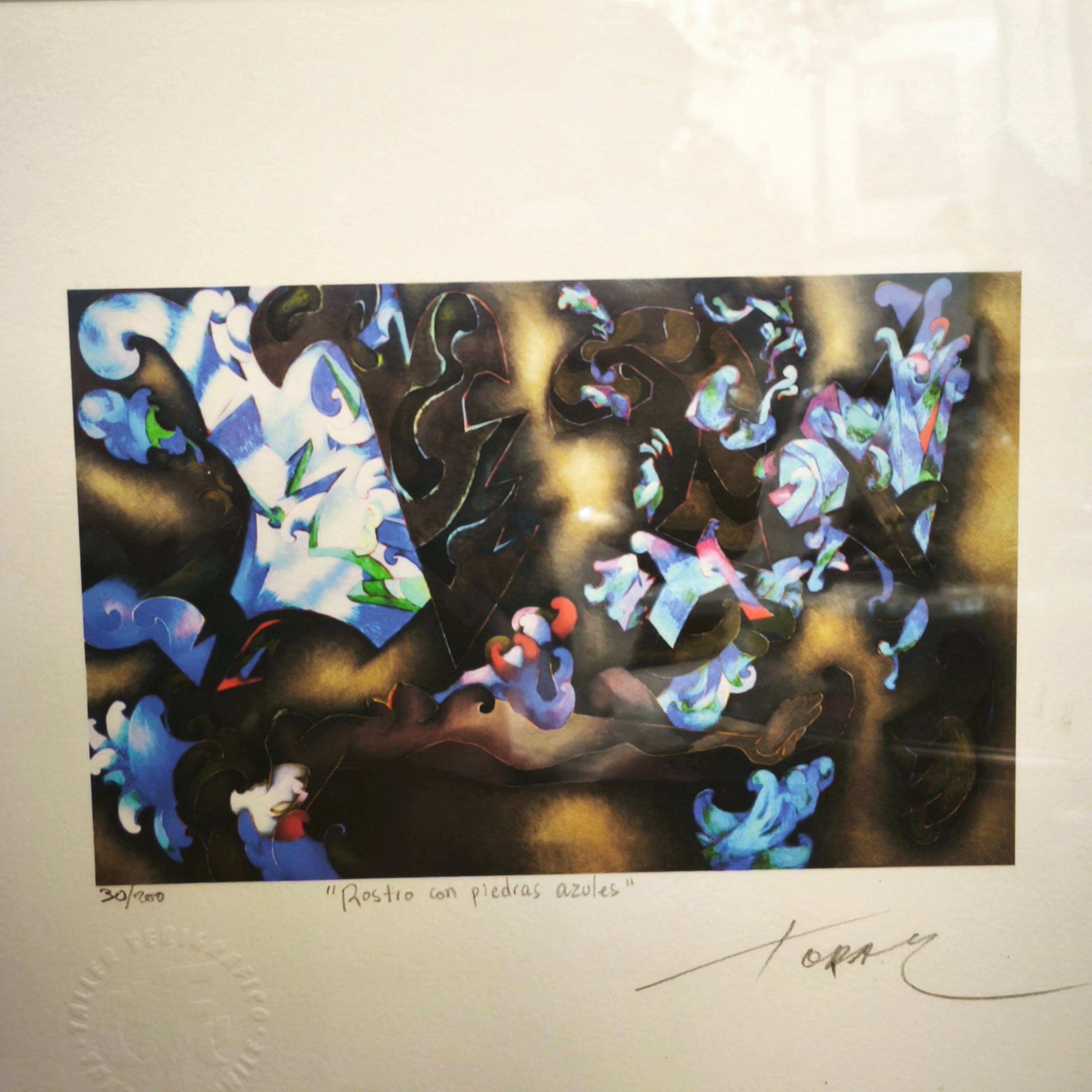 Giclée titulado ‘Rostros con piedras azules’ del reconocido artista nacional Mario Toral. Firmado y numerado.