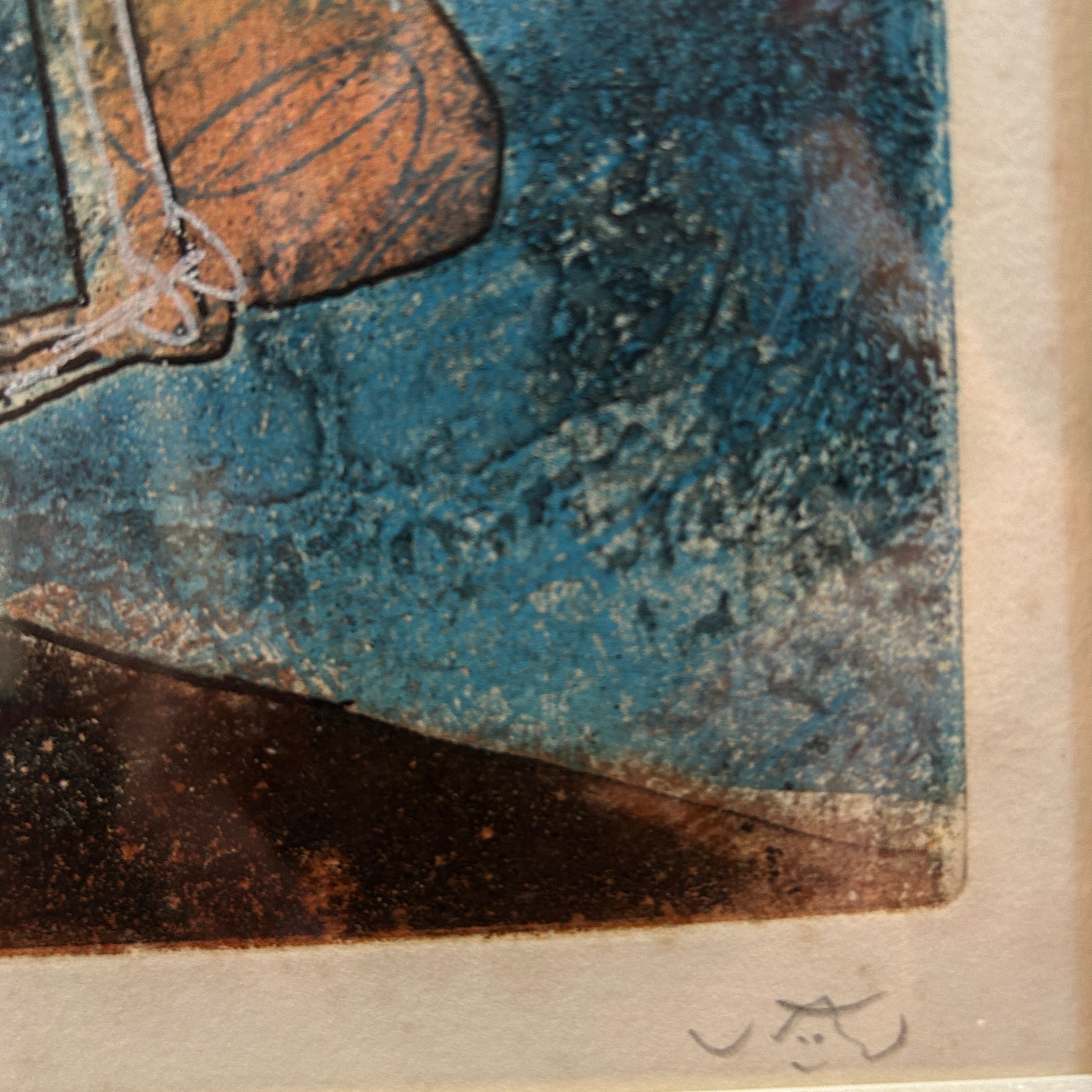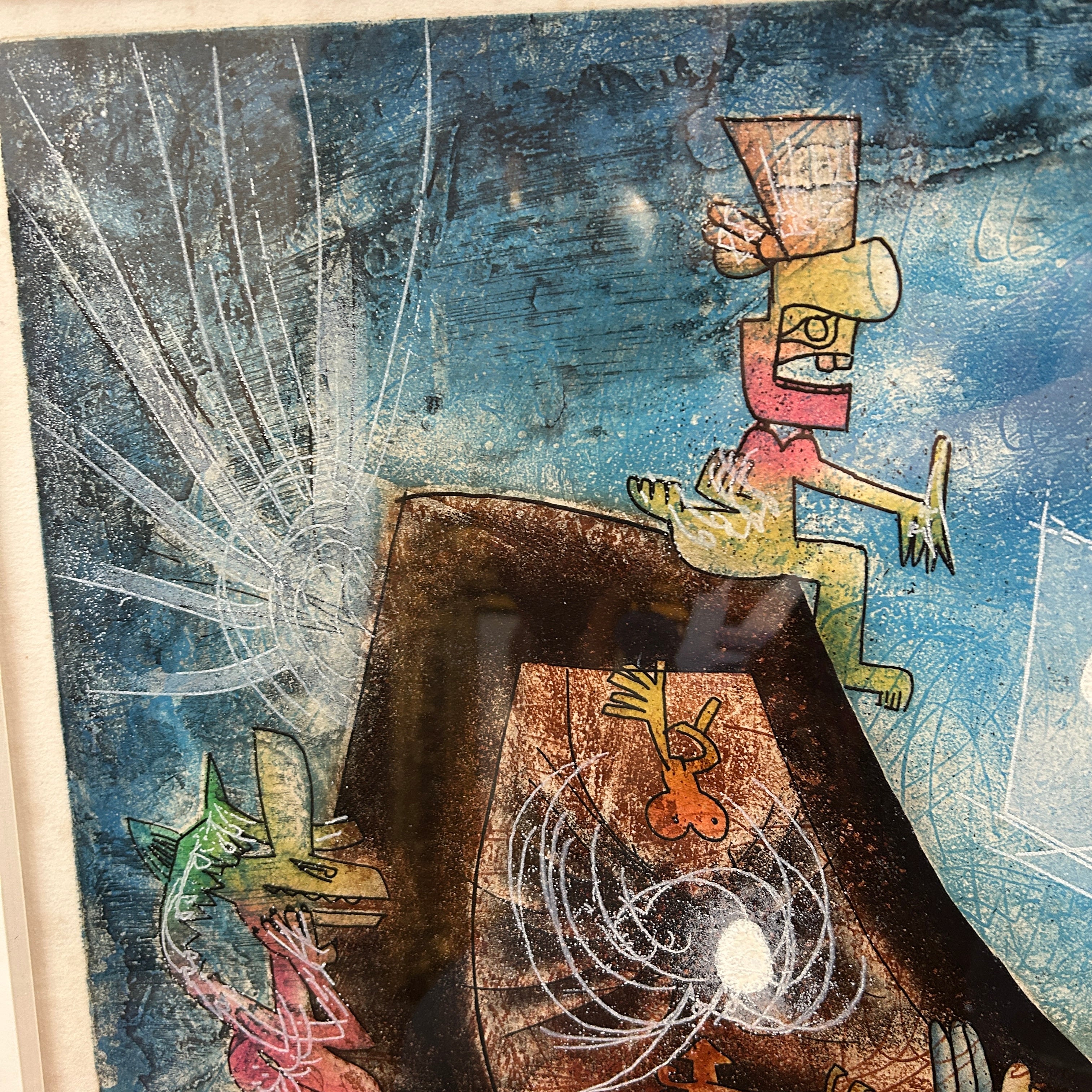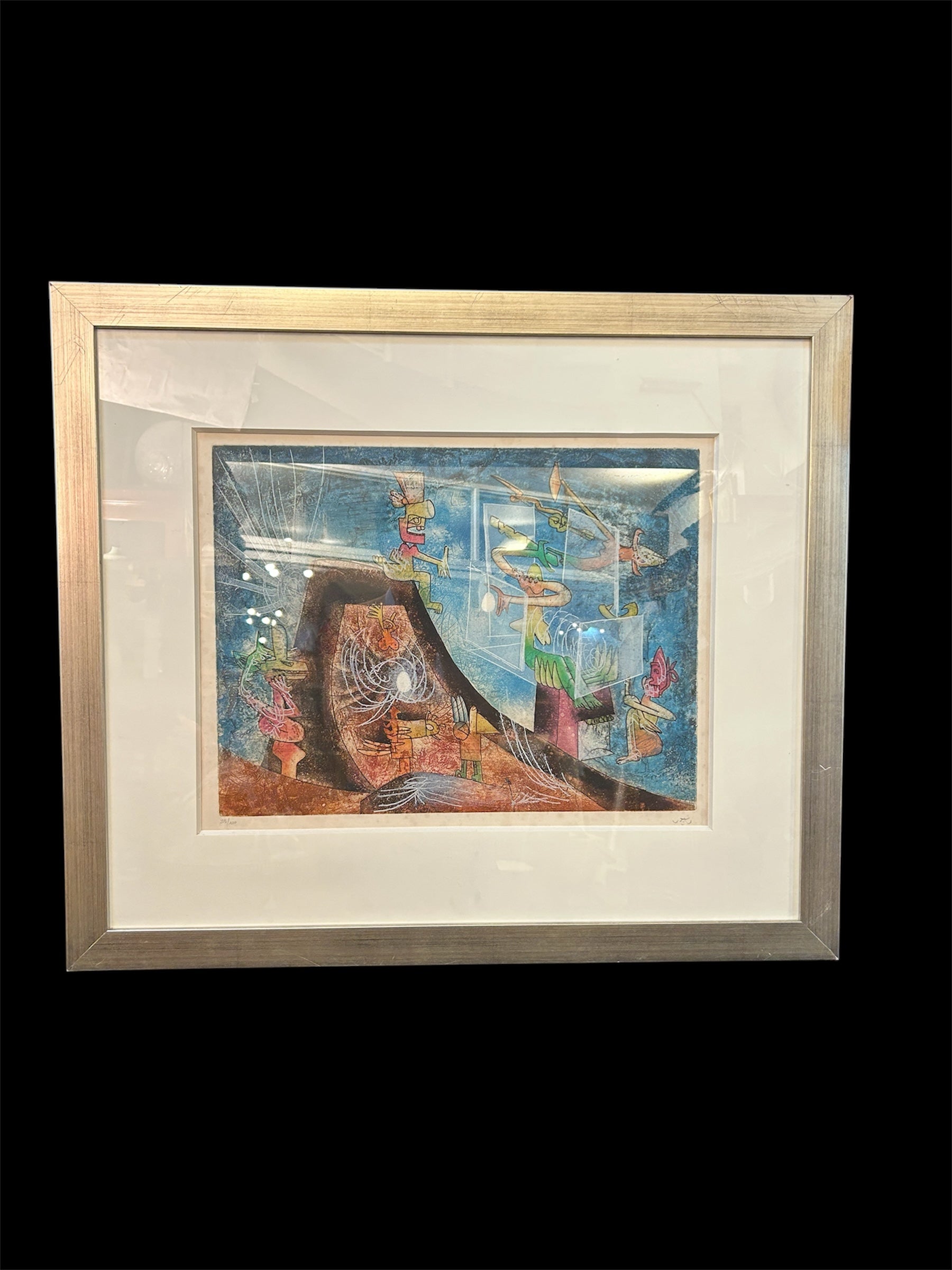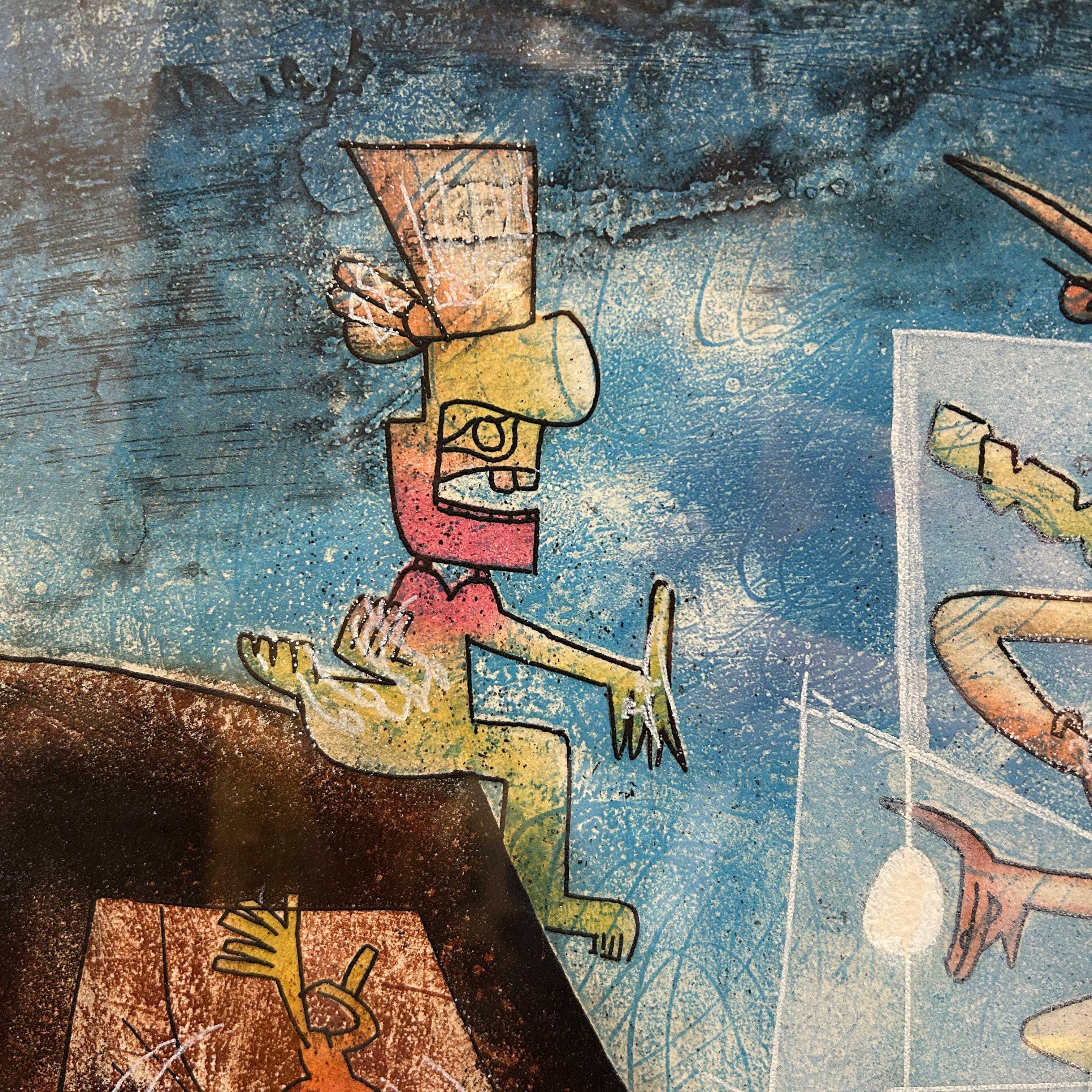 Grabado sobre papel de algodón, firmado y seriado, del reconocido artista chileno Roberto Matta. La obra, creada en 1983 y titulada ‘The Oppressors Les Oprime’, está hecha en técnica aguafuerte y aguatinta.