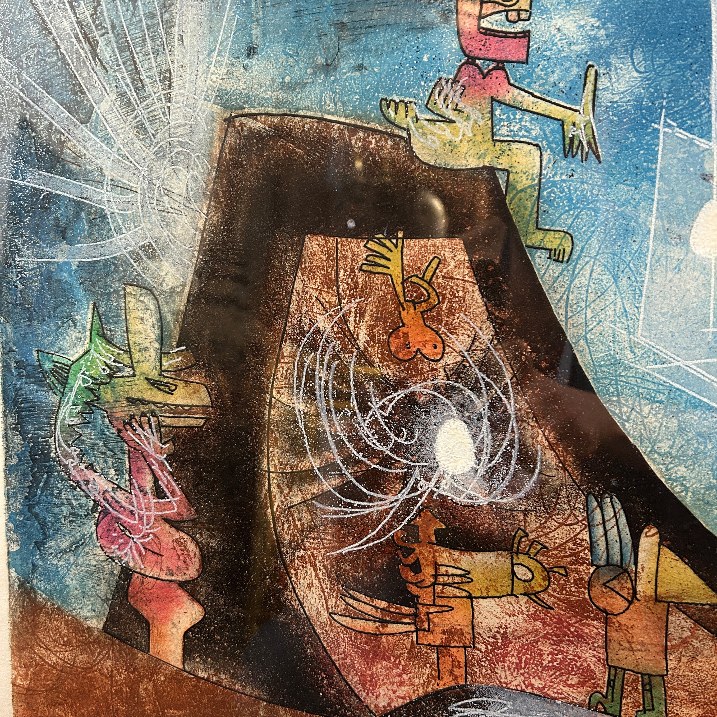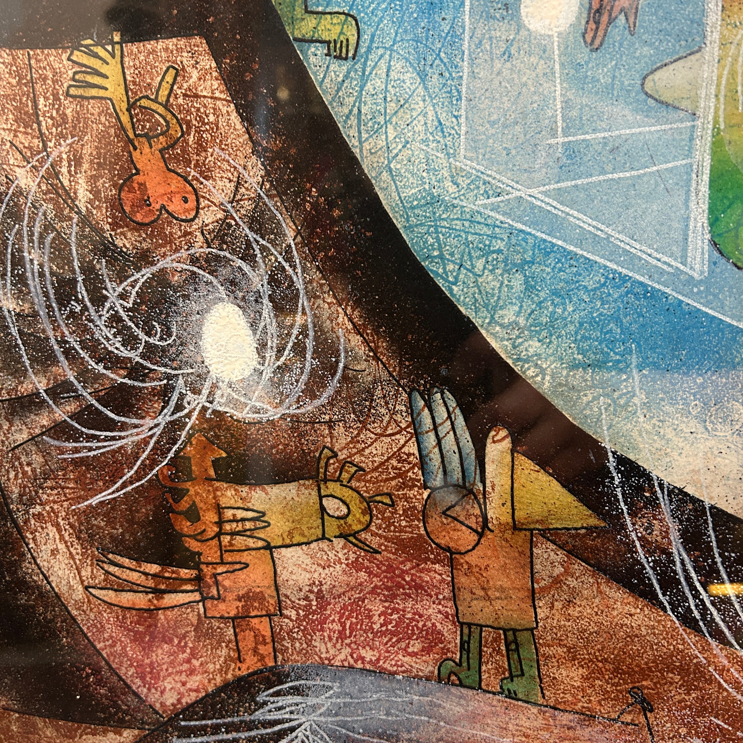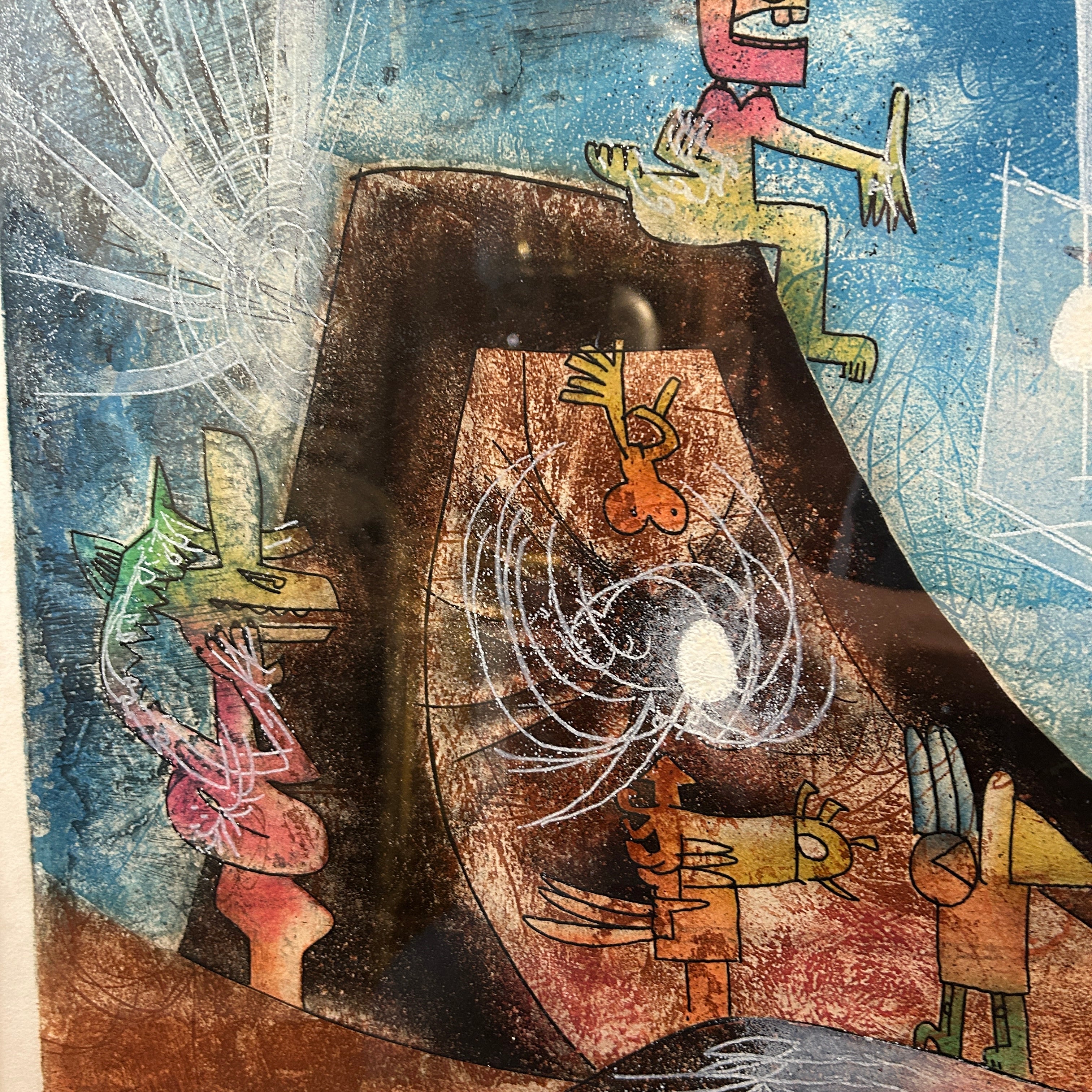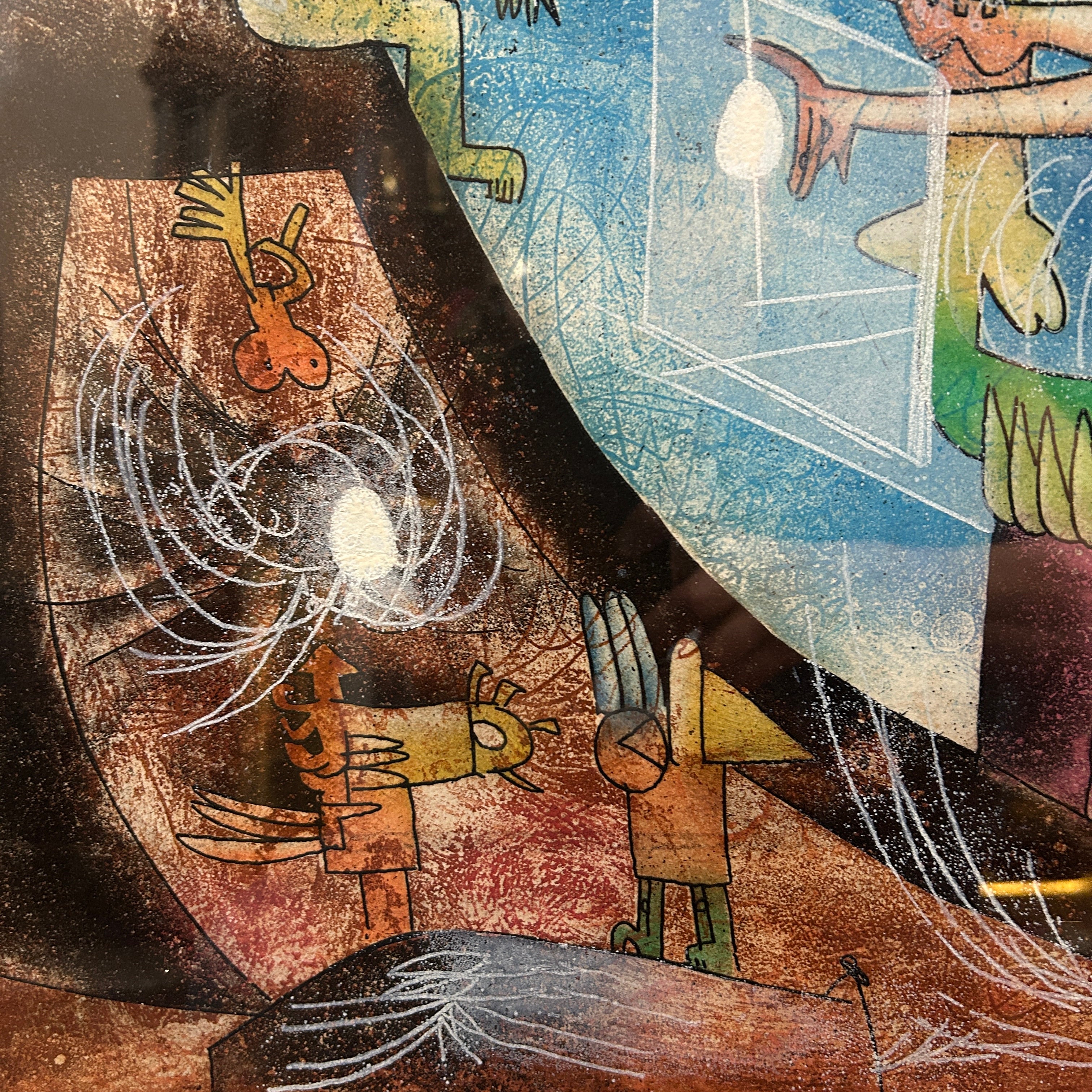 Grabado sobre papel de algodón, firmado y seriado, del reconocido artista chileno Roberto Matta. La obra, creada en 1983 y titulada ‘The Oppressors Les Oprime’, está hecha en técnica aguafuerte y aguatinta.