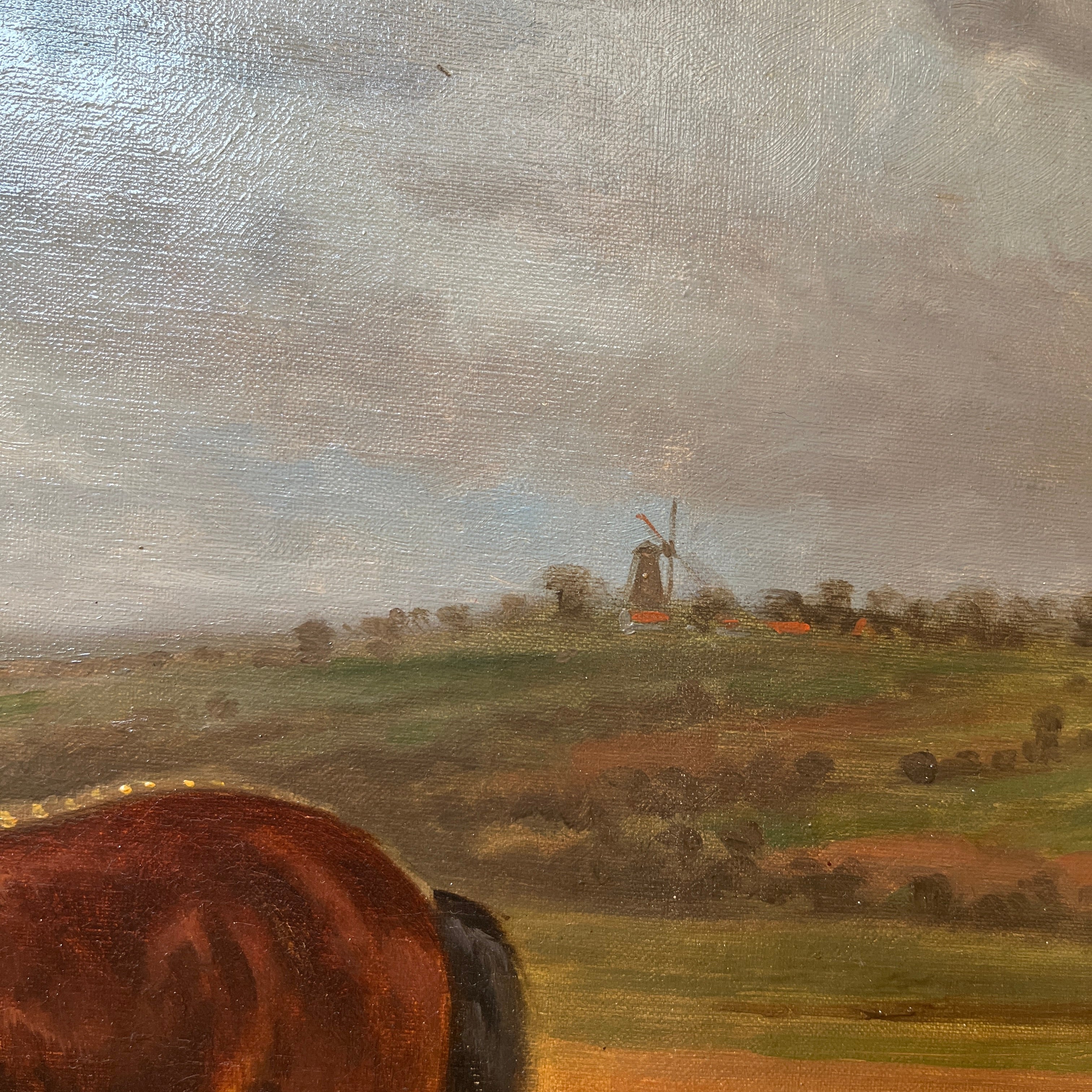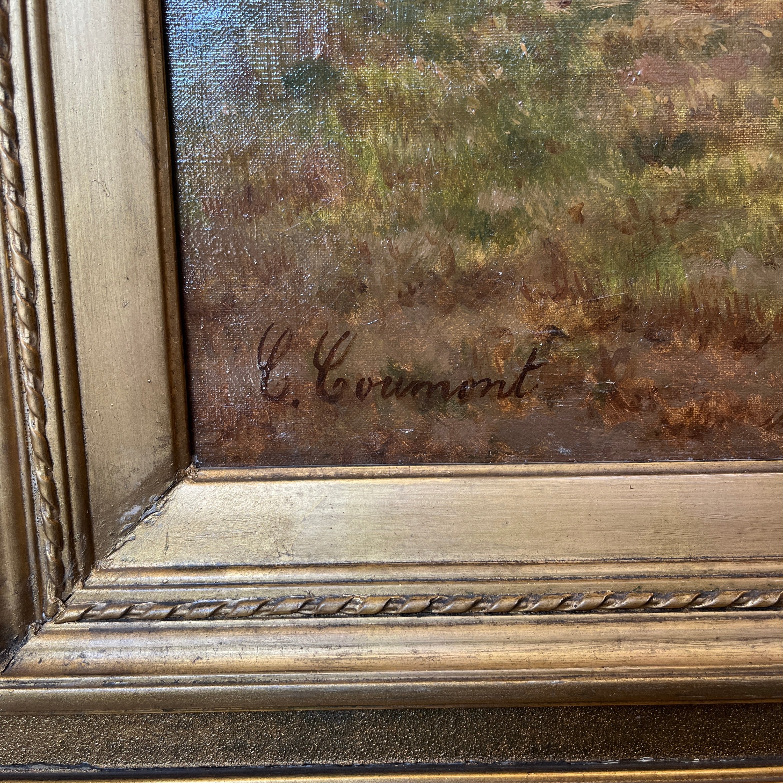 Charles Coumont - Óleo sobre tela 'Paisaje de campo con caballos'
