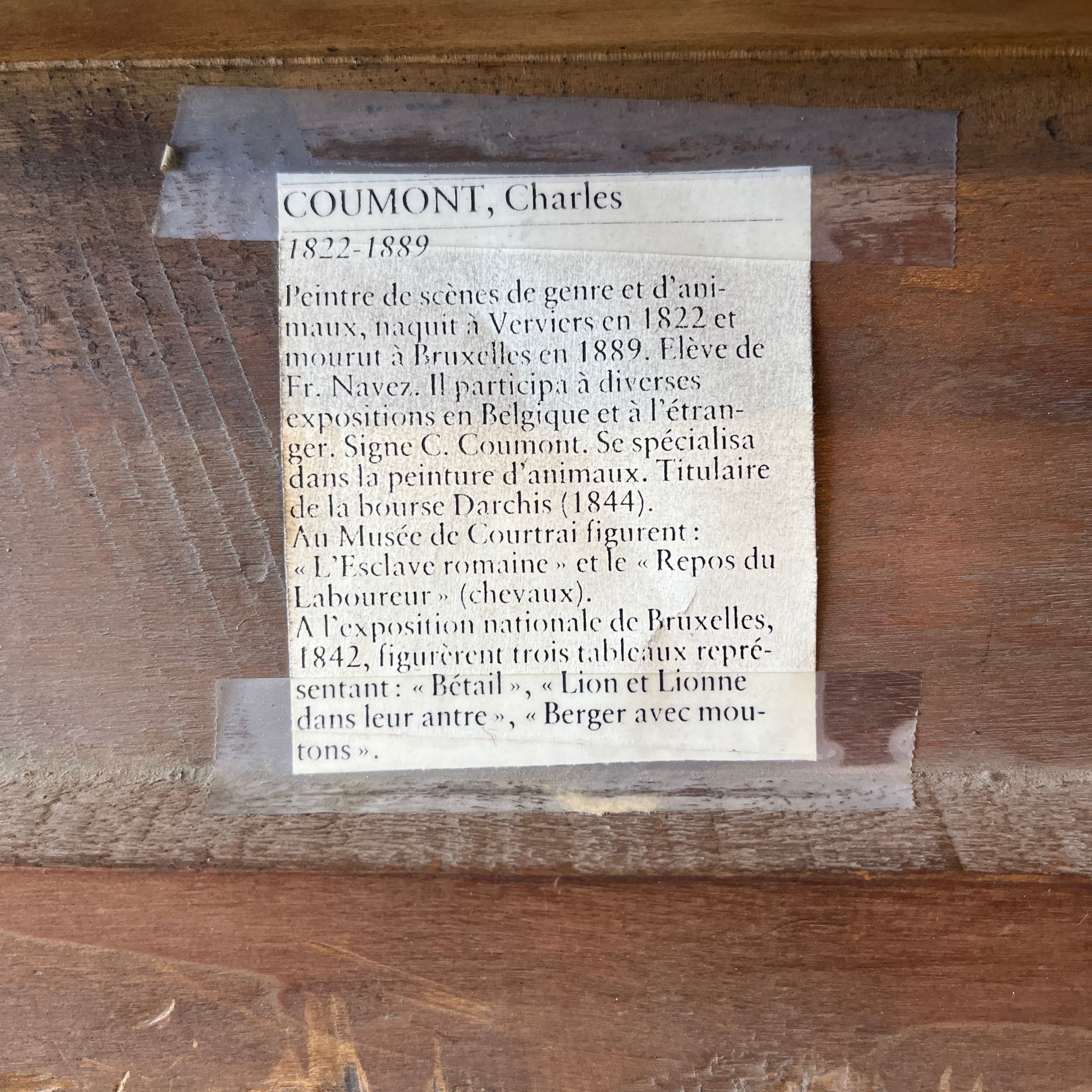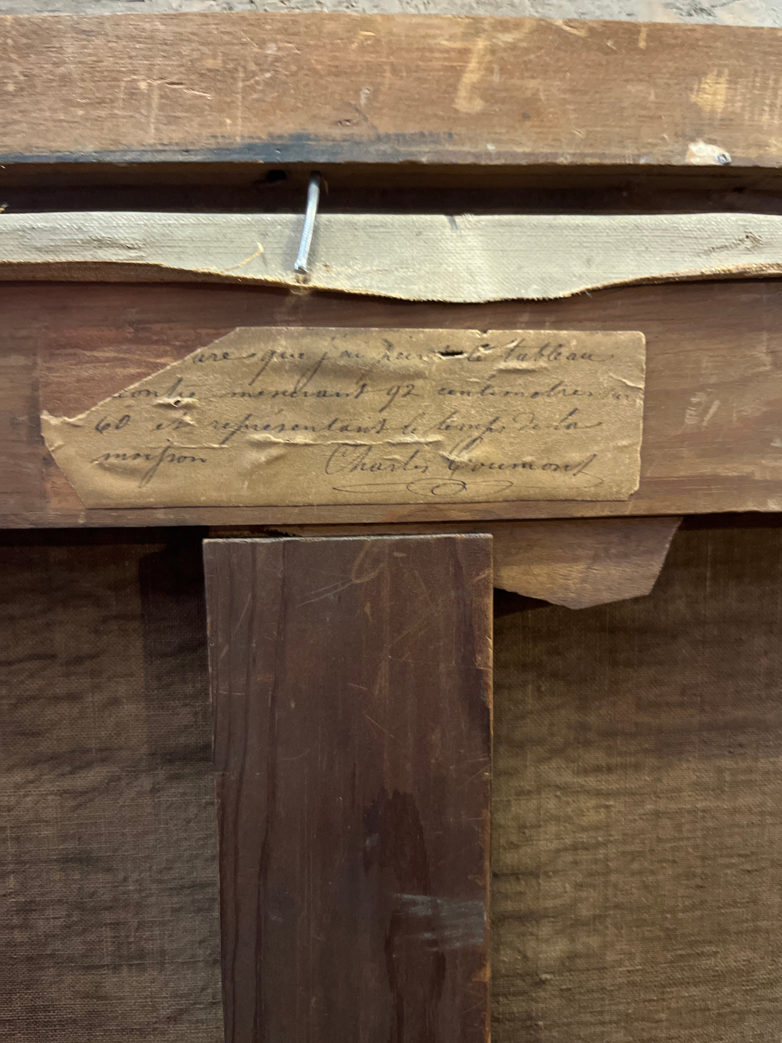 El cuadro, en su parte posterior, tiene una descripción de la obra escrita por el propio autor.