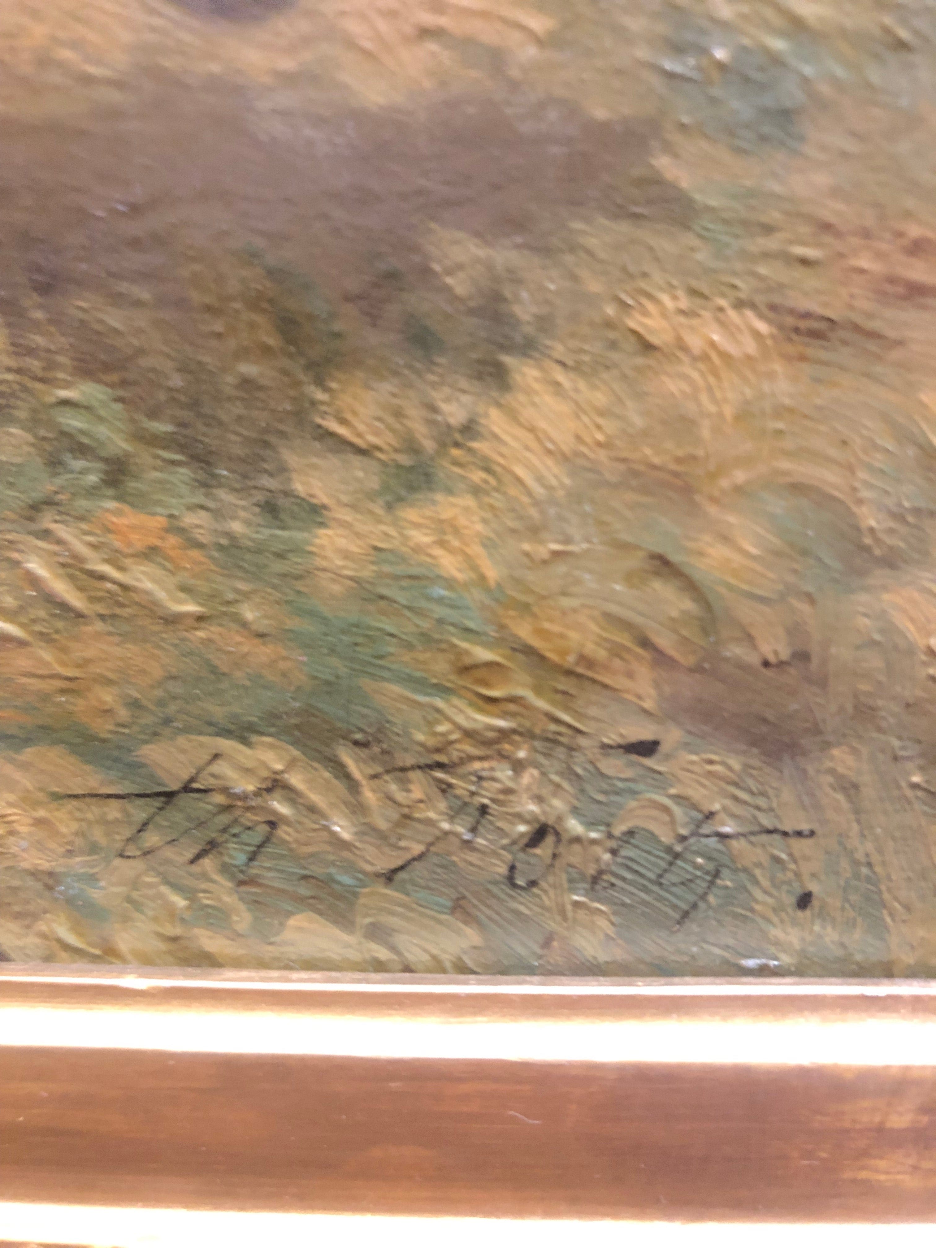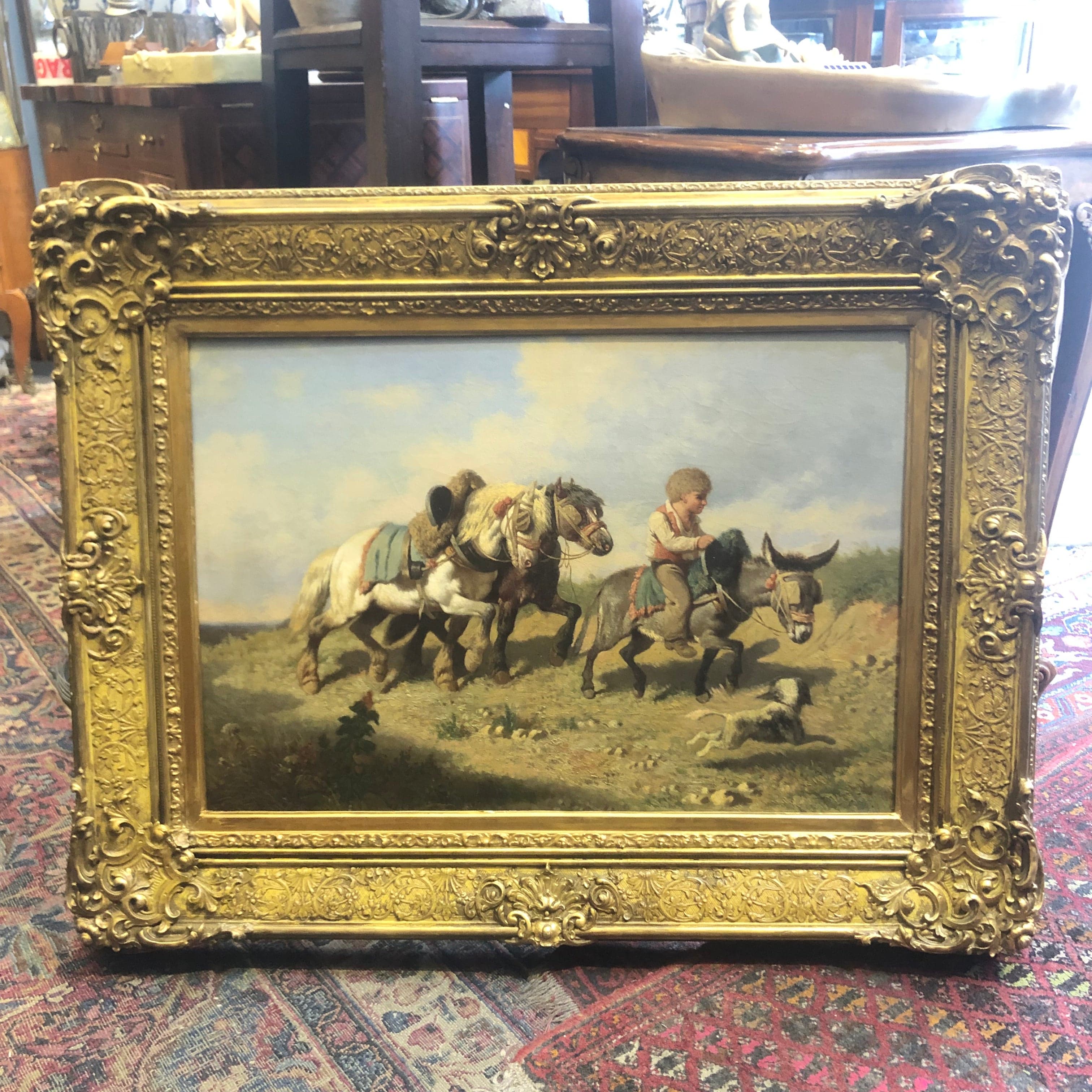 Hermoso Oleo del pintor Francés, Theodore Fort (1810- 1896) la obra está enmarcada con bello marco de madera en dorado.