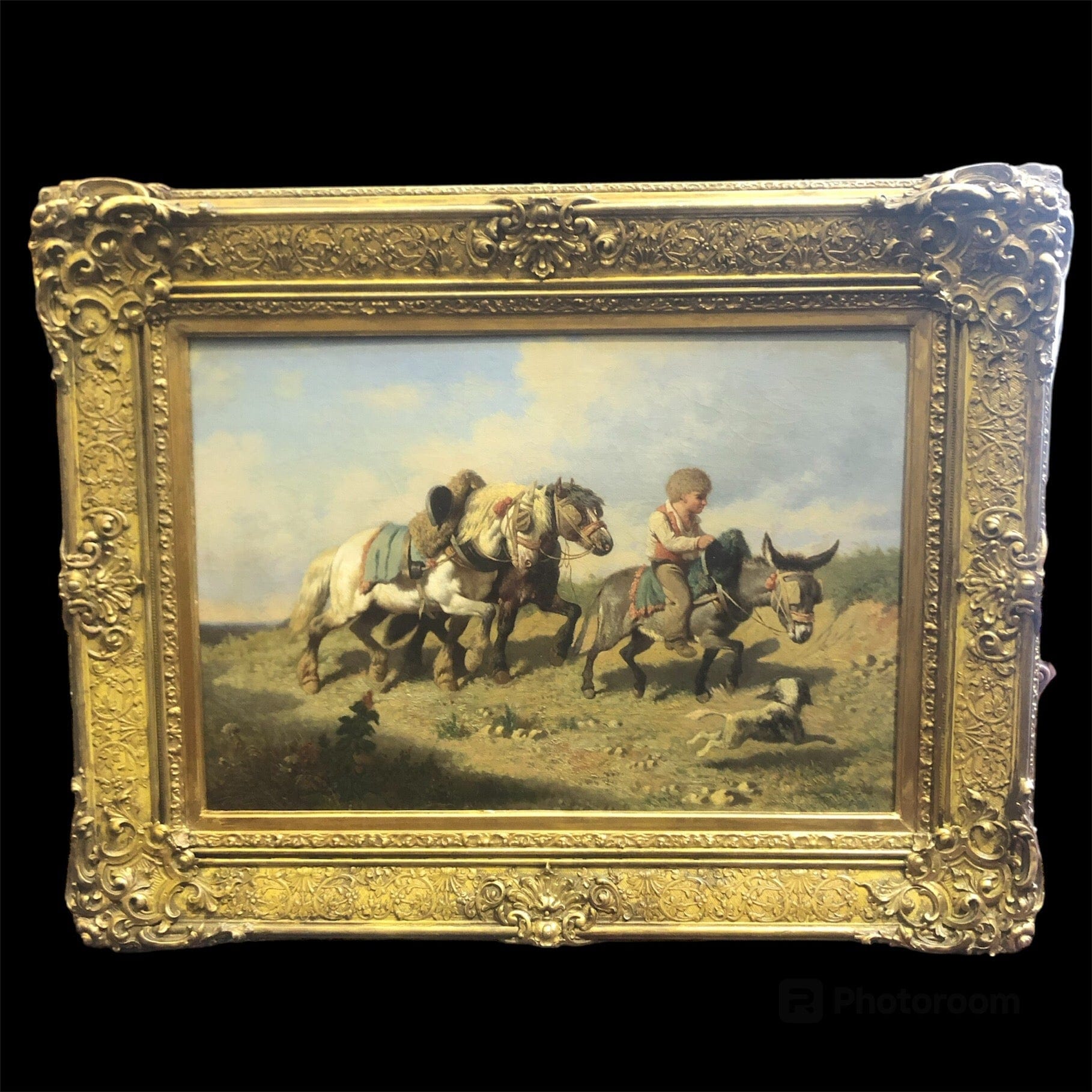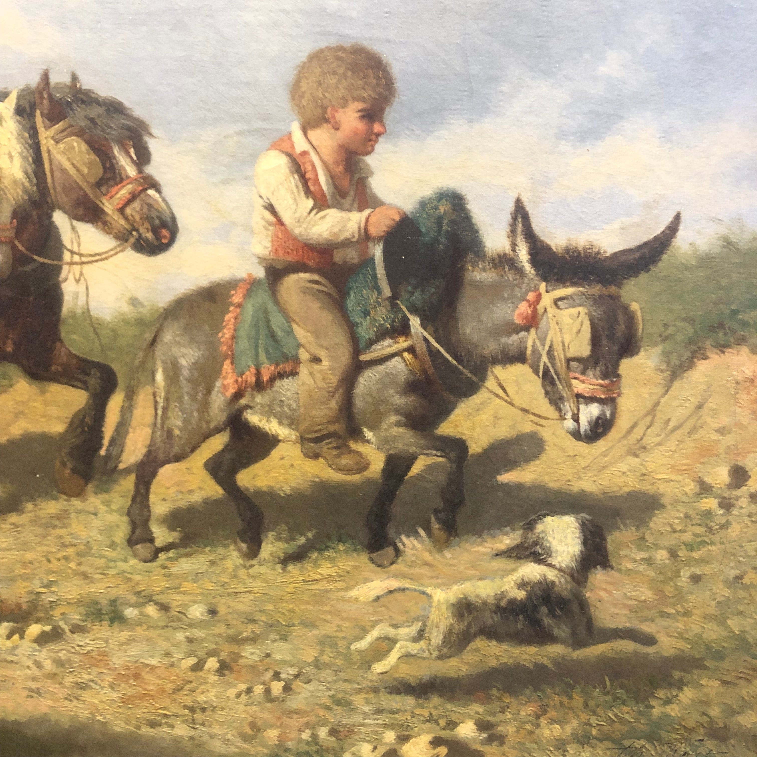 Theodore Fort - Oleo “Niño en pastizal con caballos”