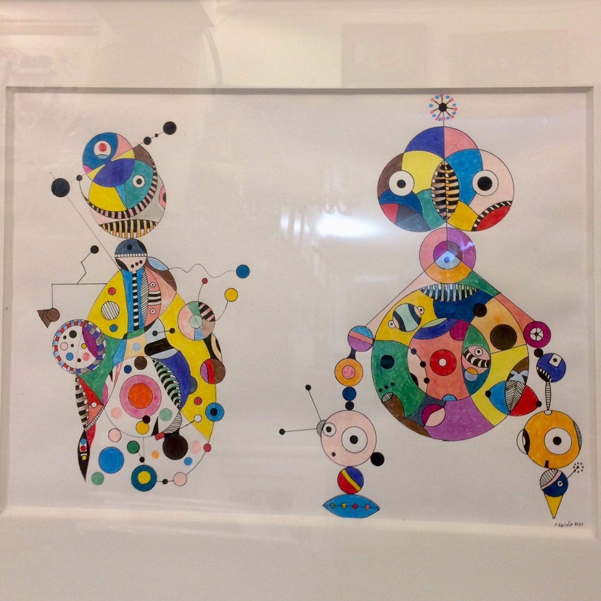 Técnica mixta sobre papel del artista chileno Reynaldo Gaviola Rayo. Destaca el colorido y la gracia de las figuras. Firmado a mano.