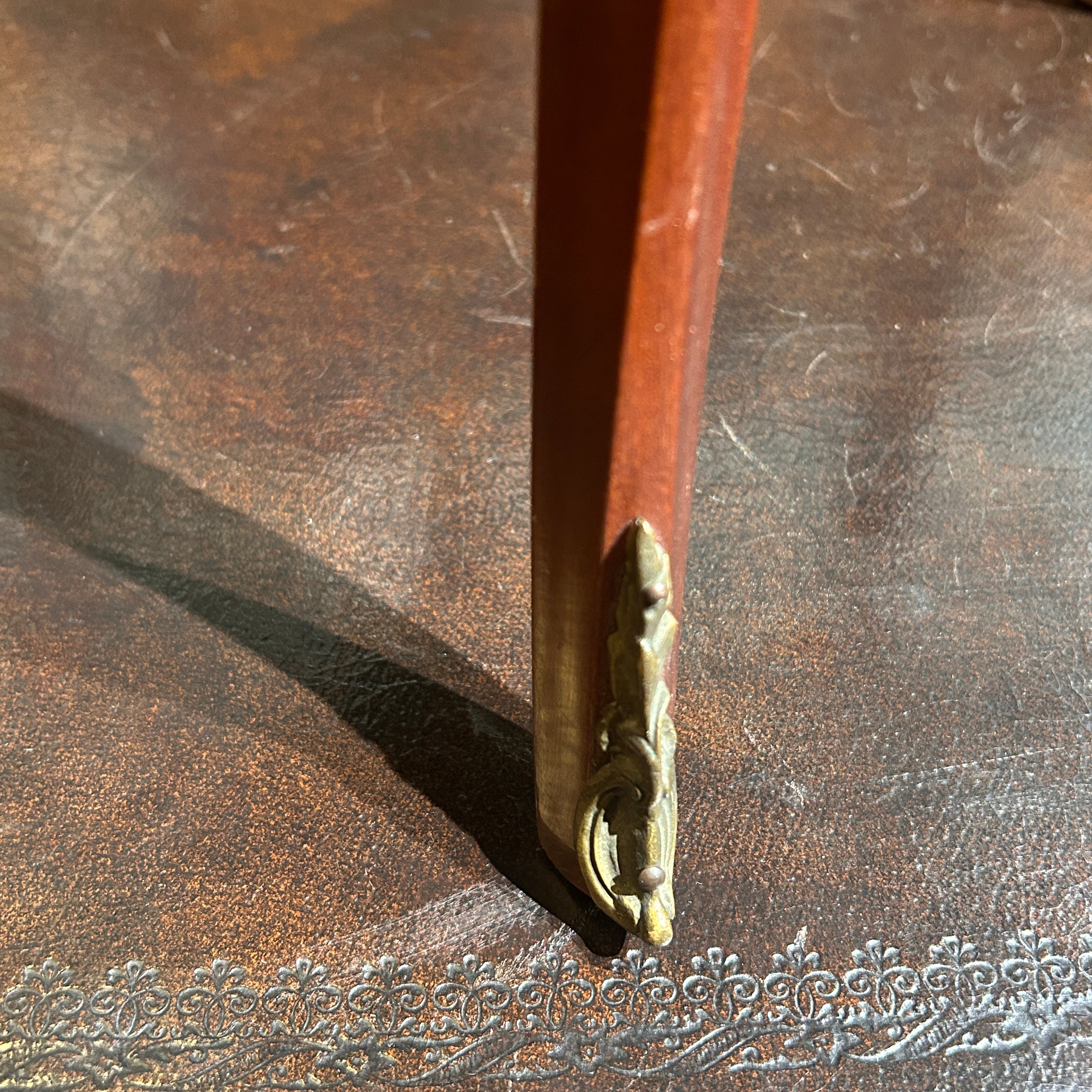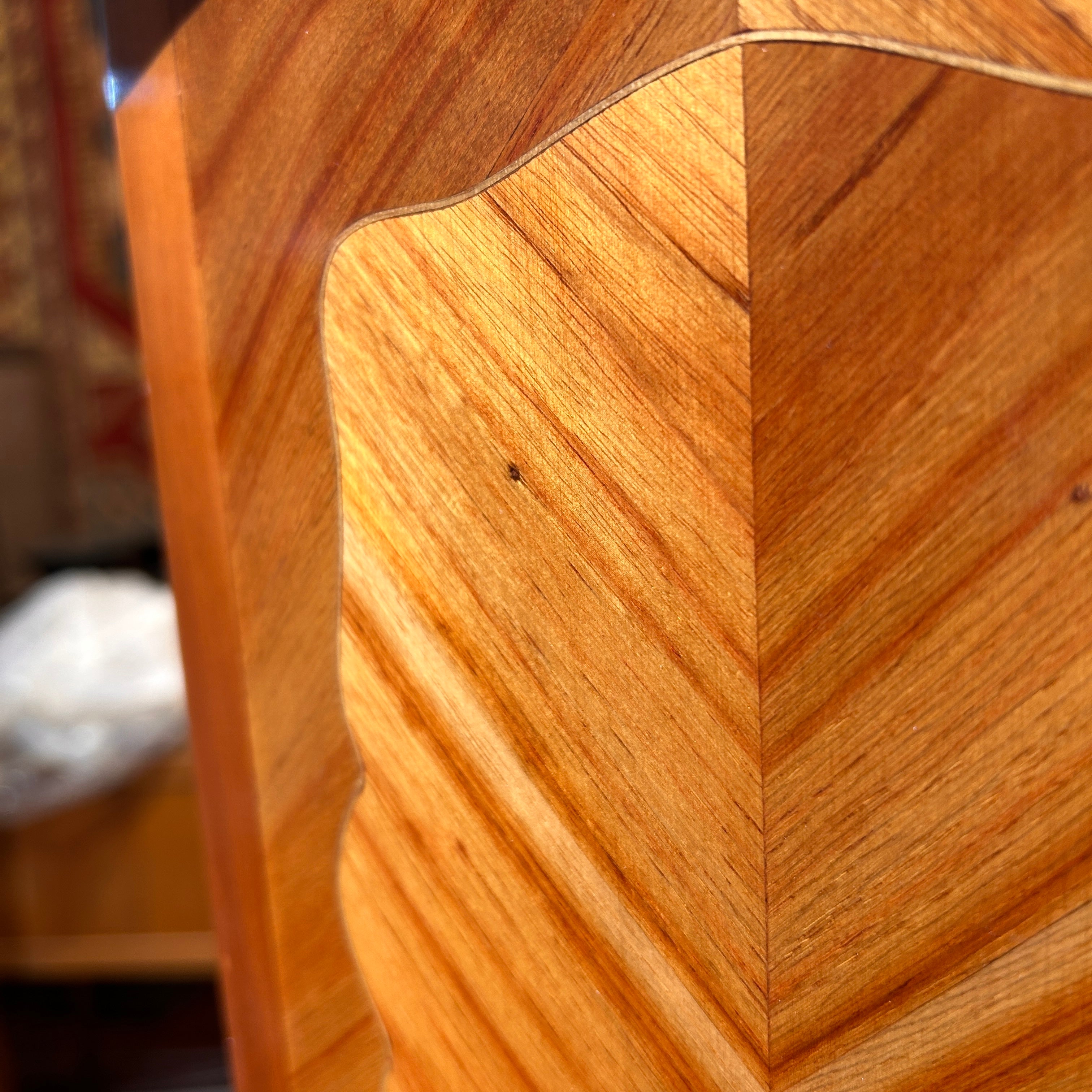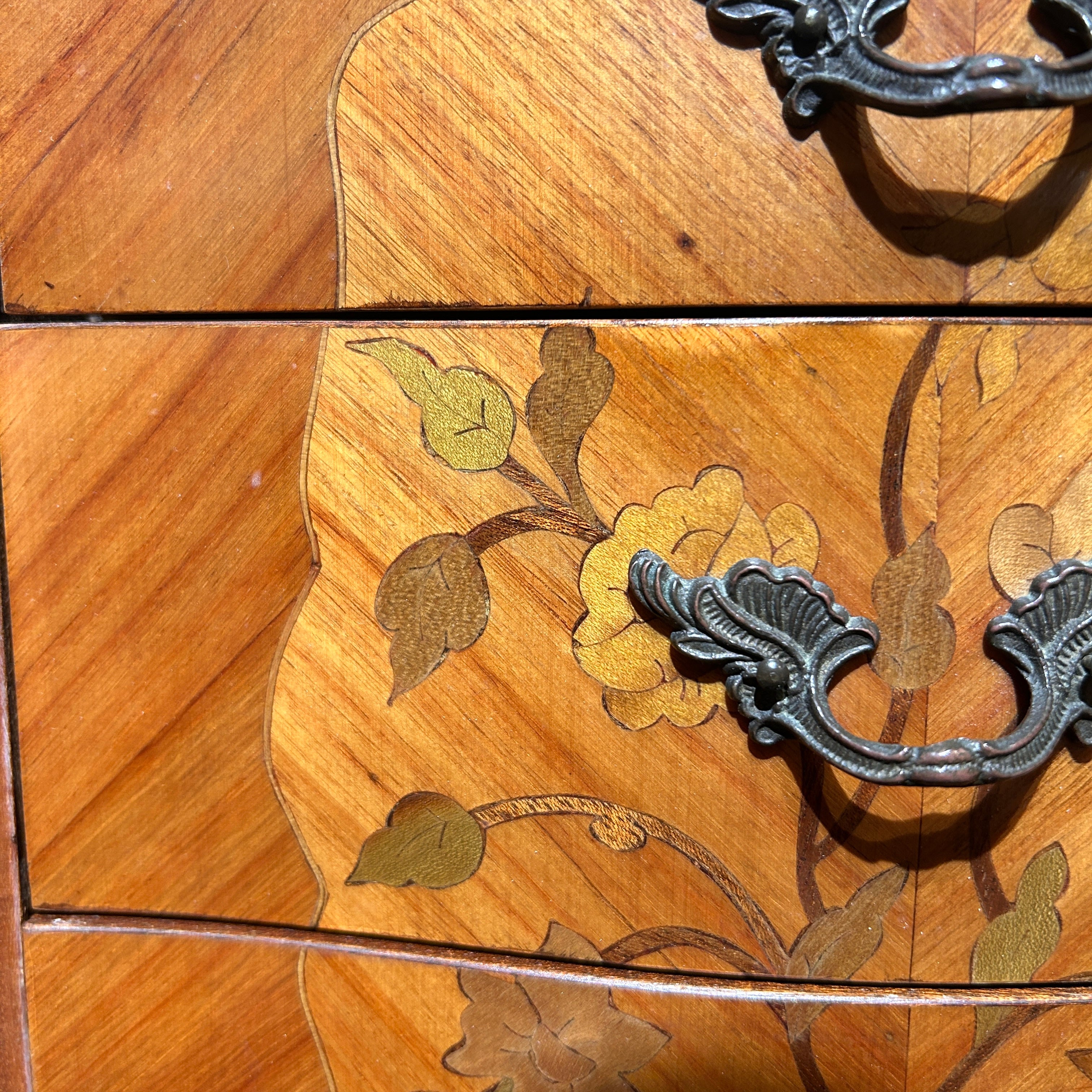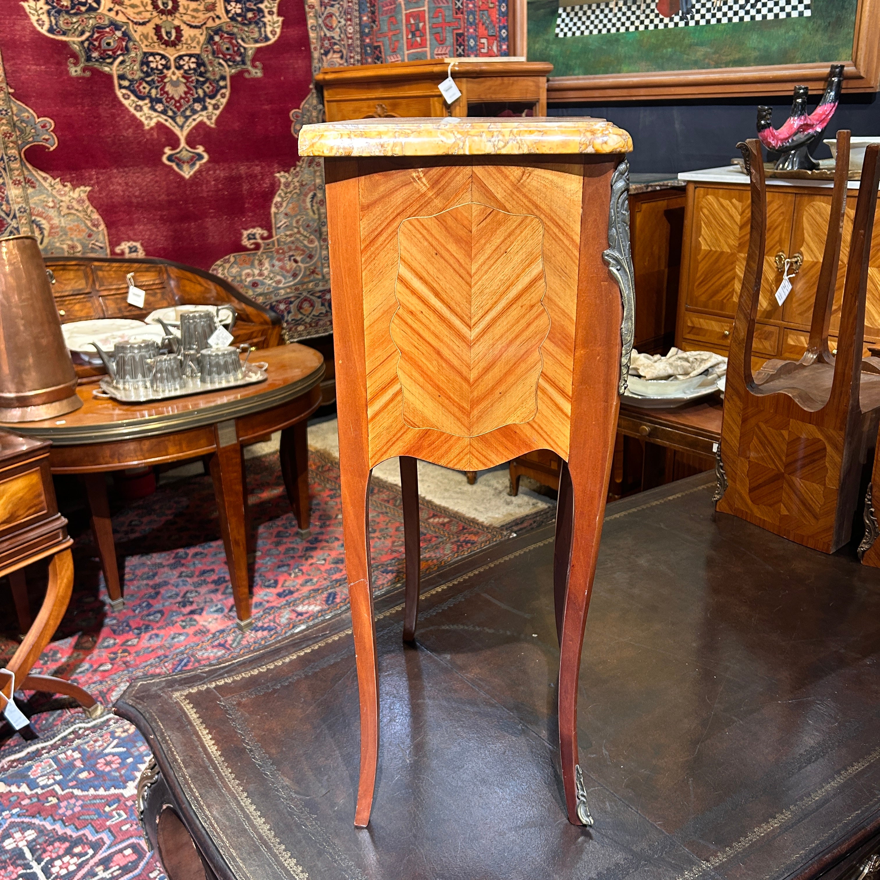 Chevet o velador francés estilo Luis XV mármol veteado tres cajones circa 1950