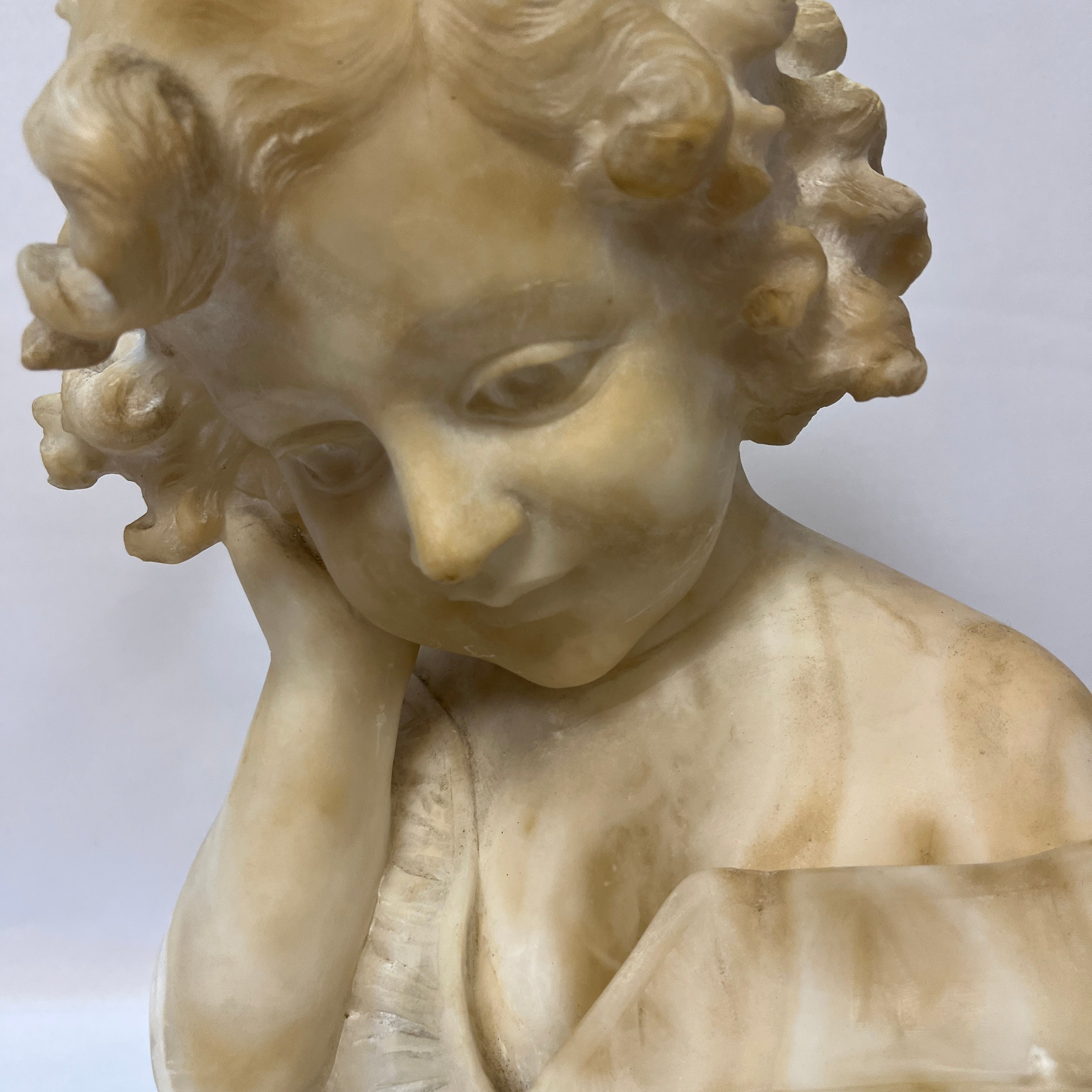 Escultura en alabastro y mármol ‘Niña firmada Christoforo Vicari (1846–1913)