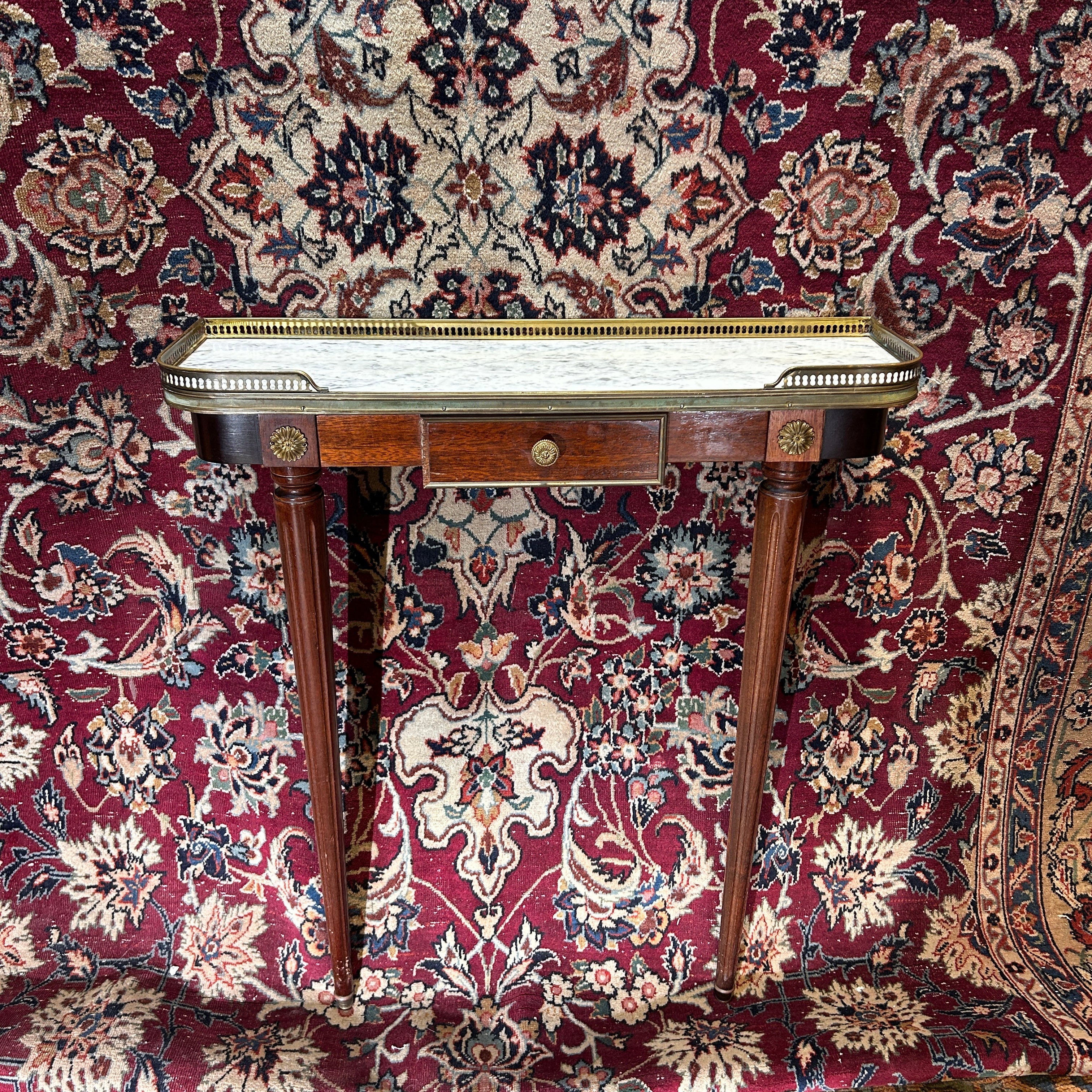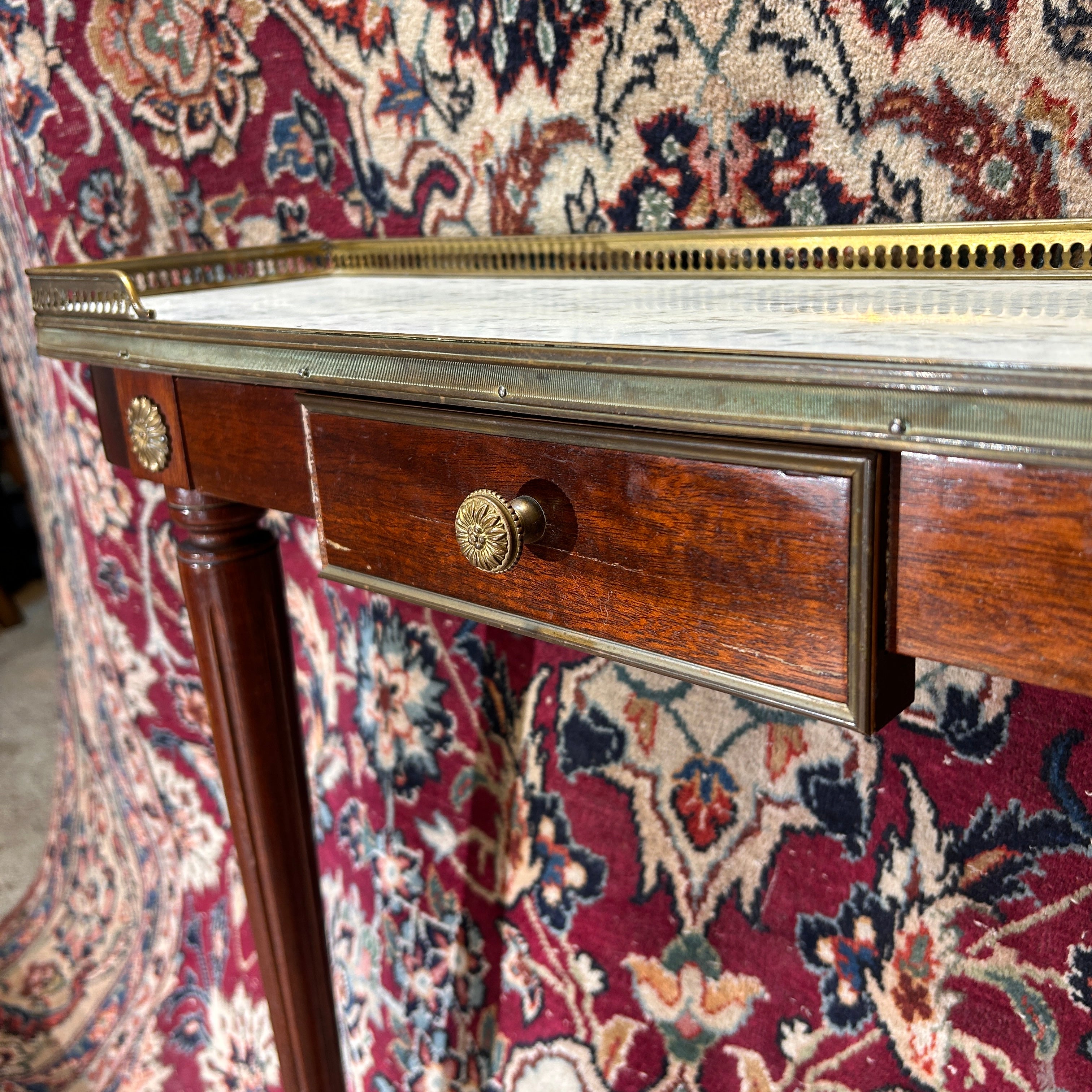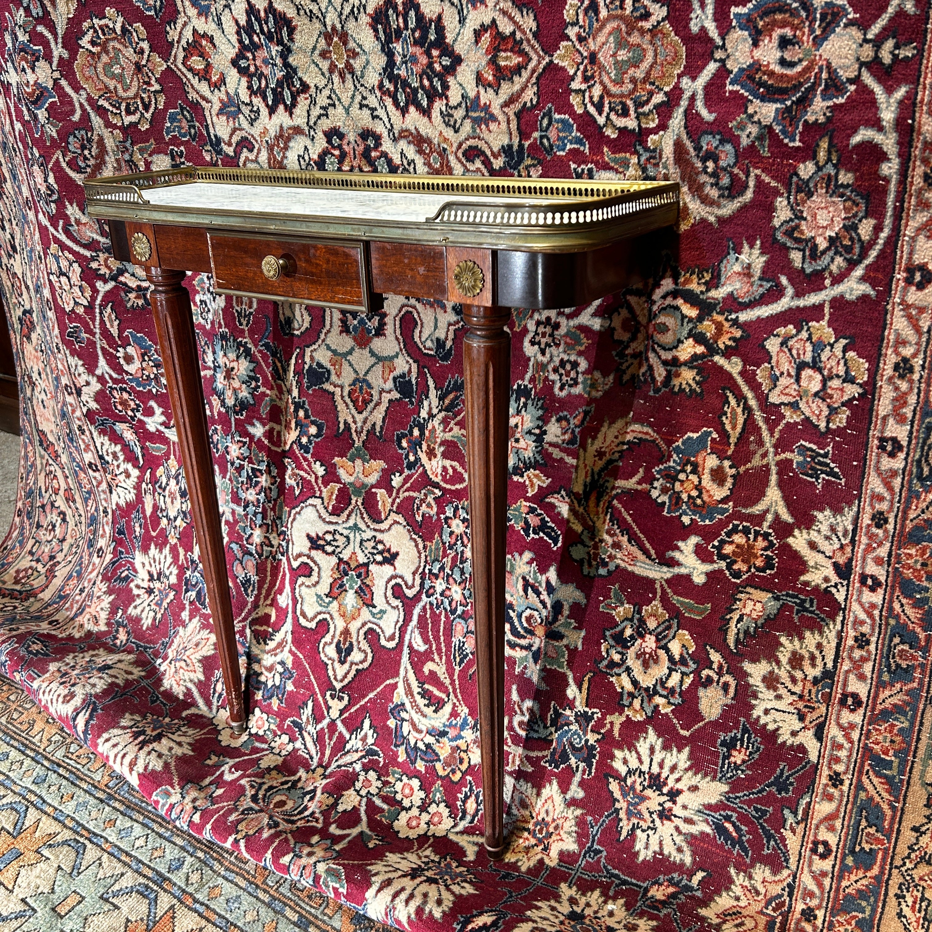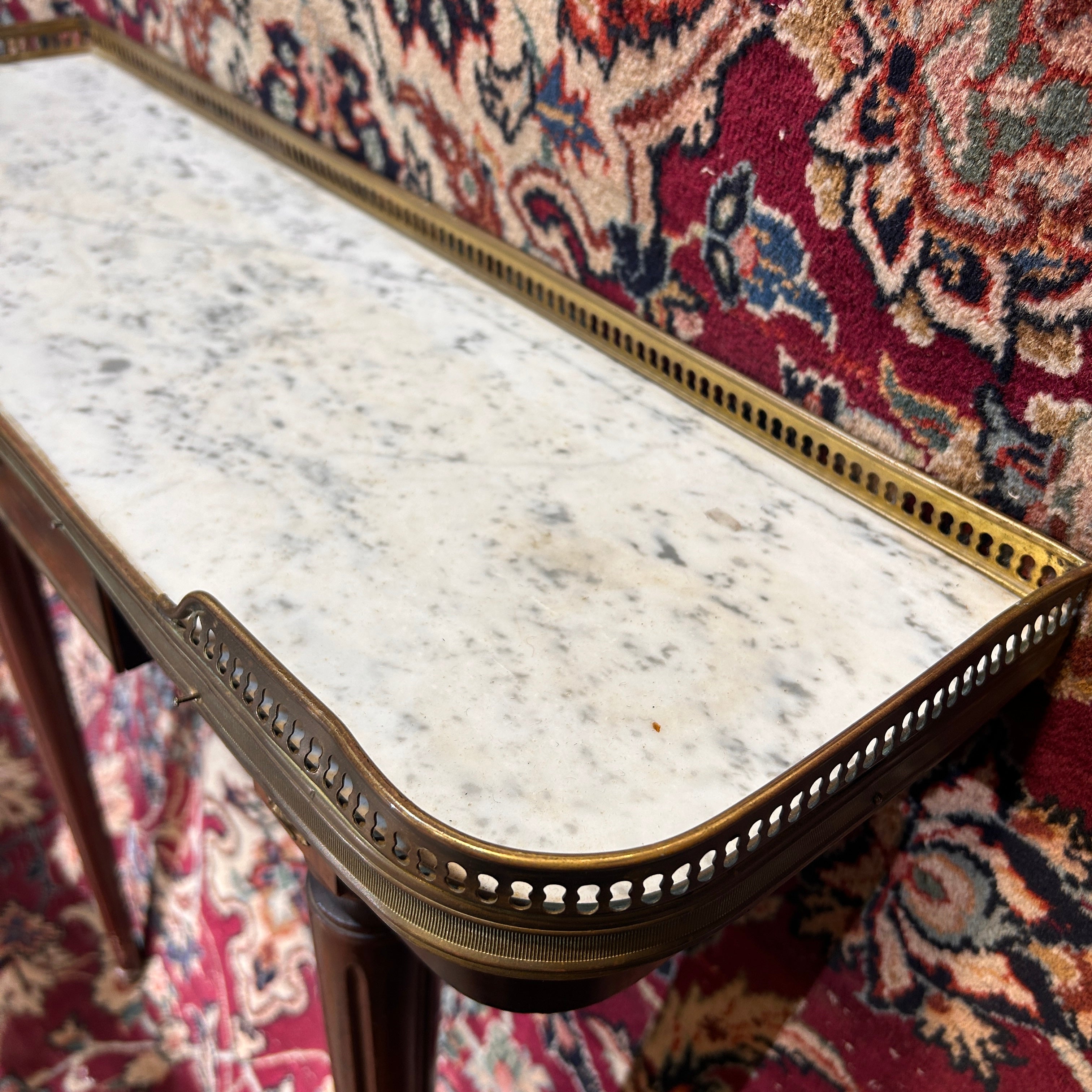 Consola pequeña Directorio mármol blanco veteado circa 1950