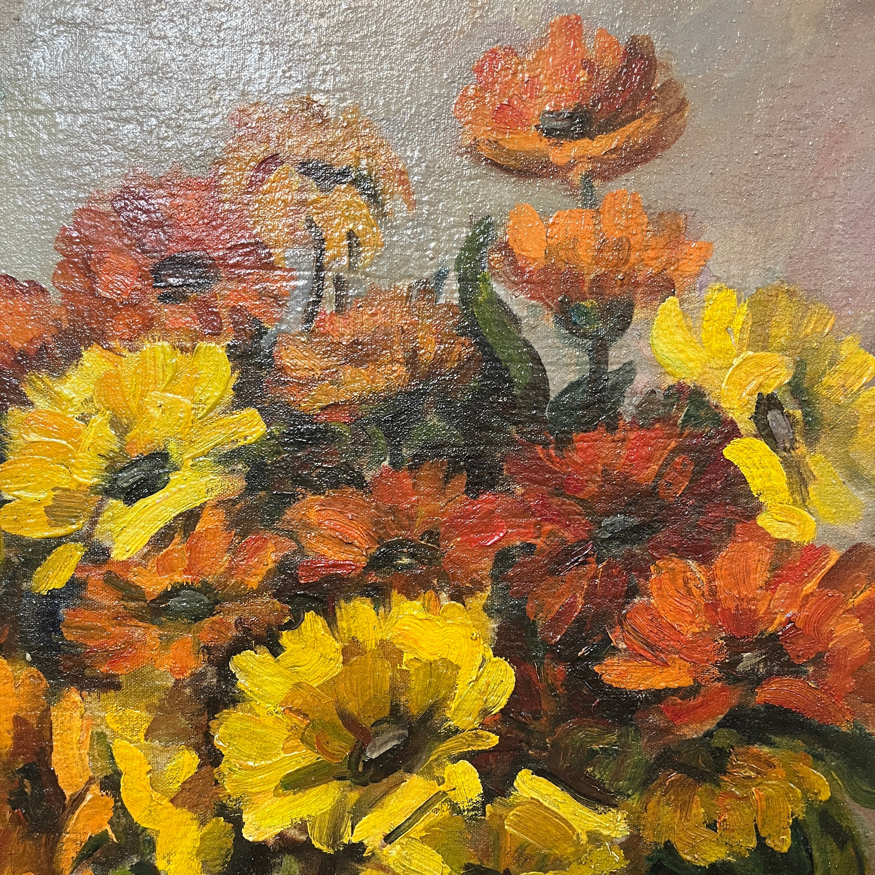 Dora Puelma - Óleo sobre tela naturaleza muerta 'Gerberas amarillas y naranjas'
