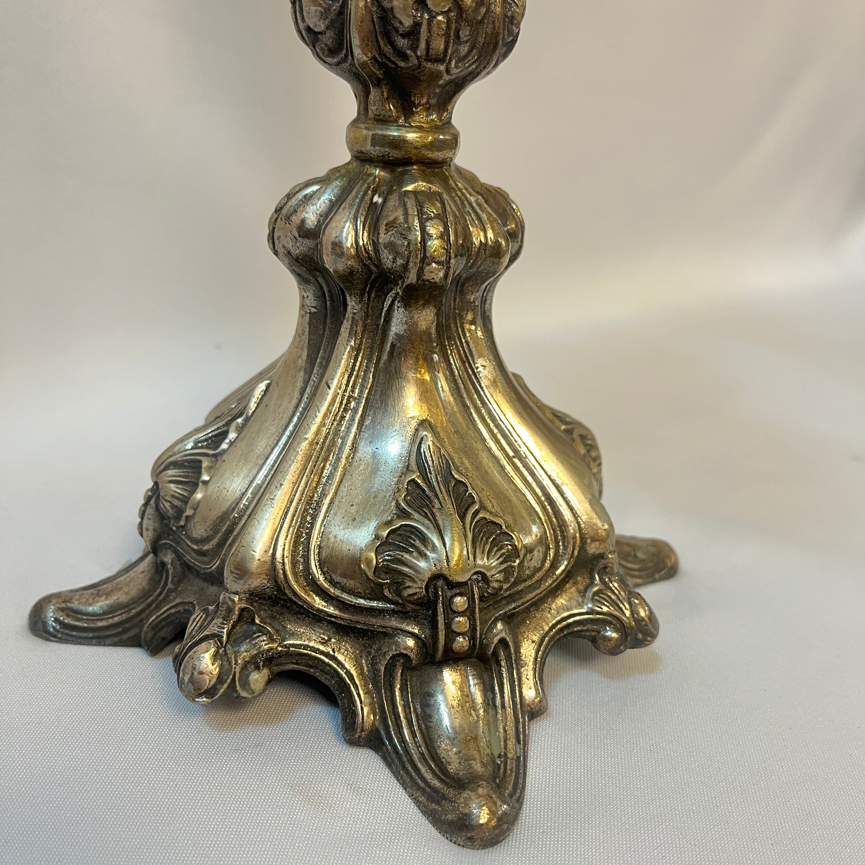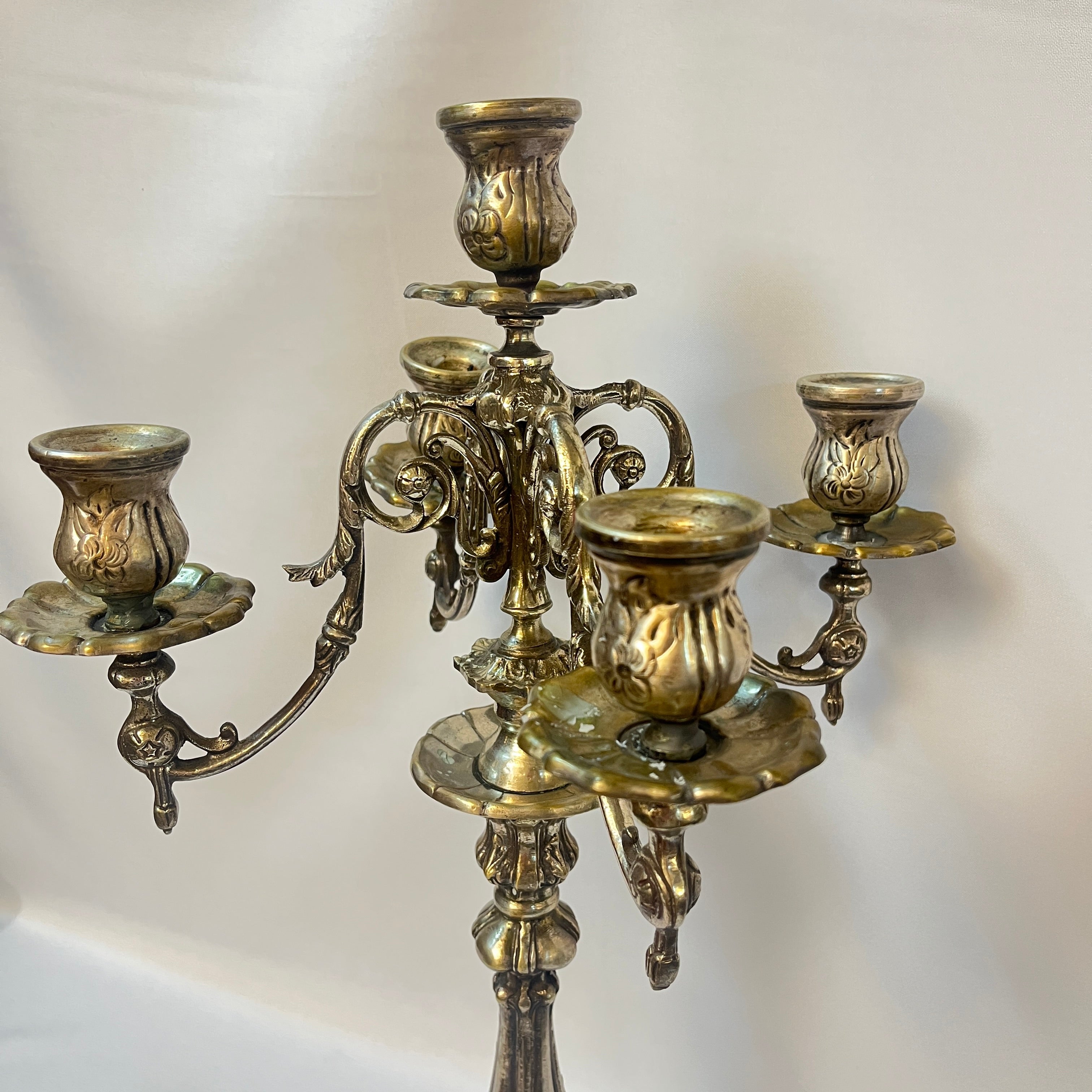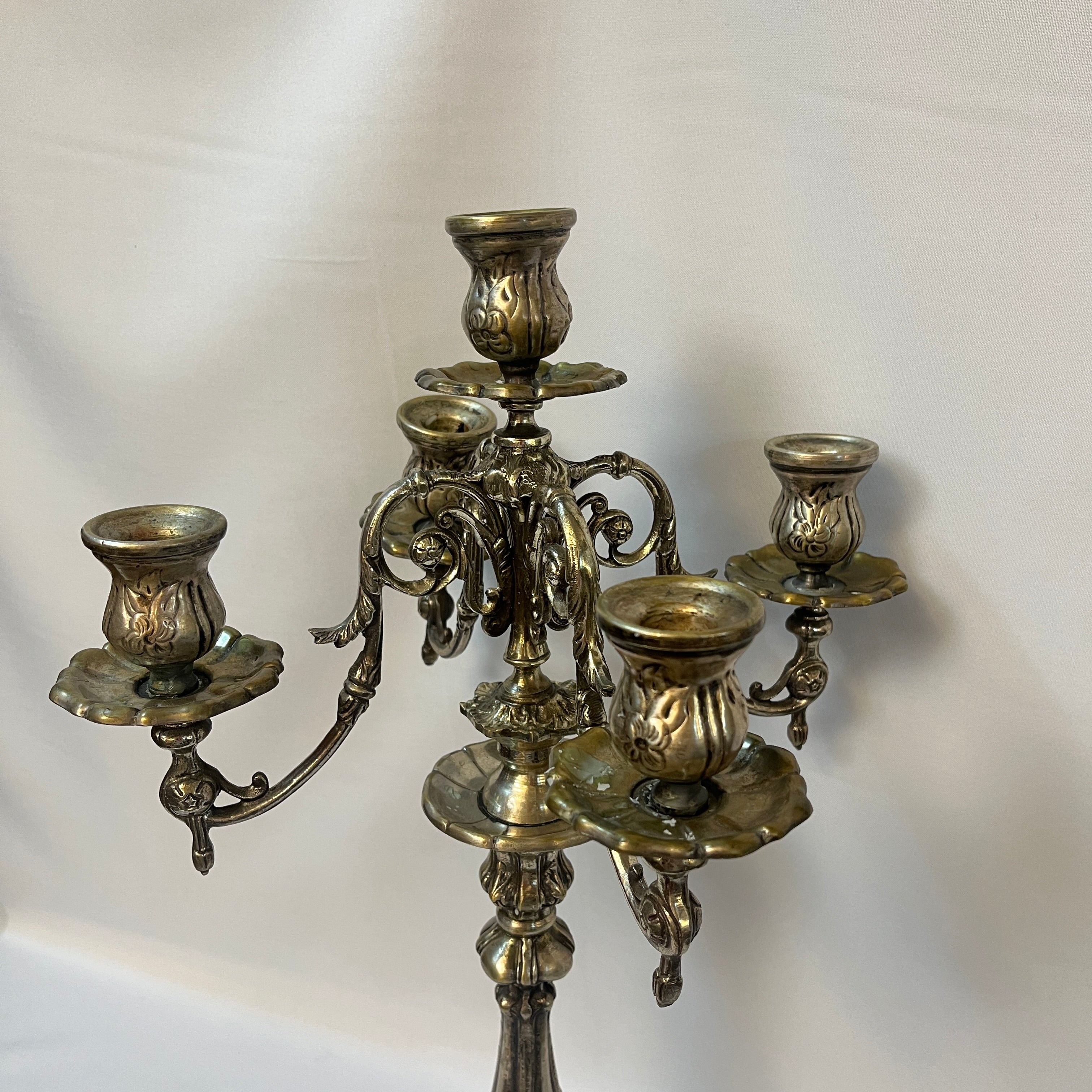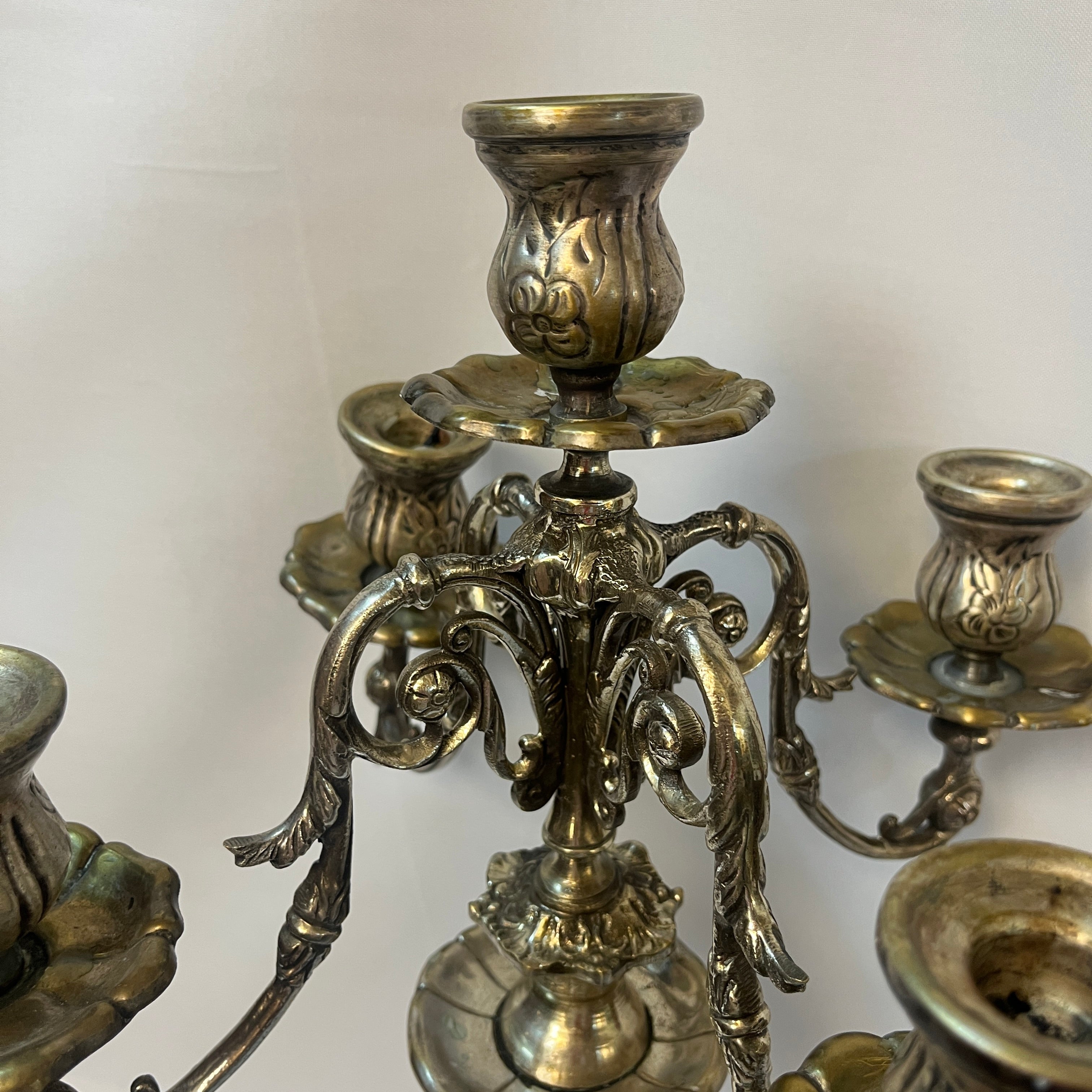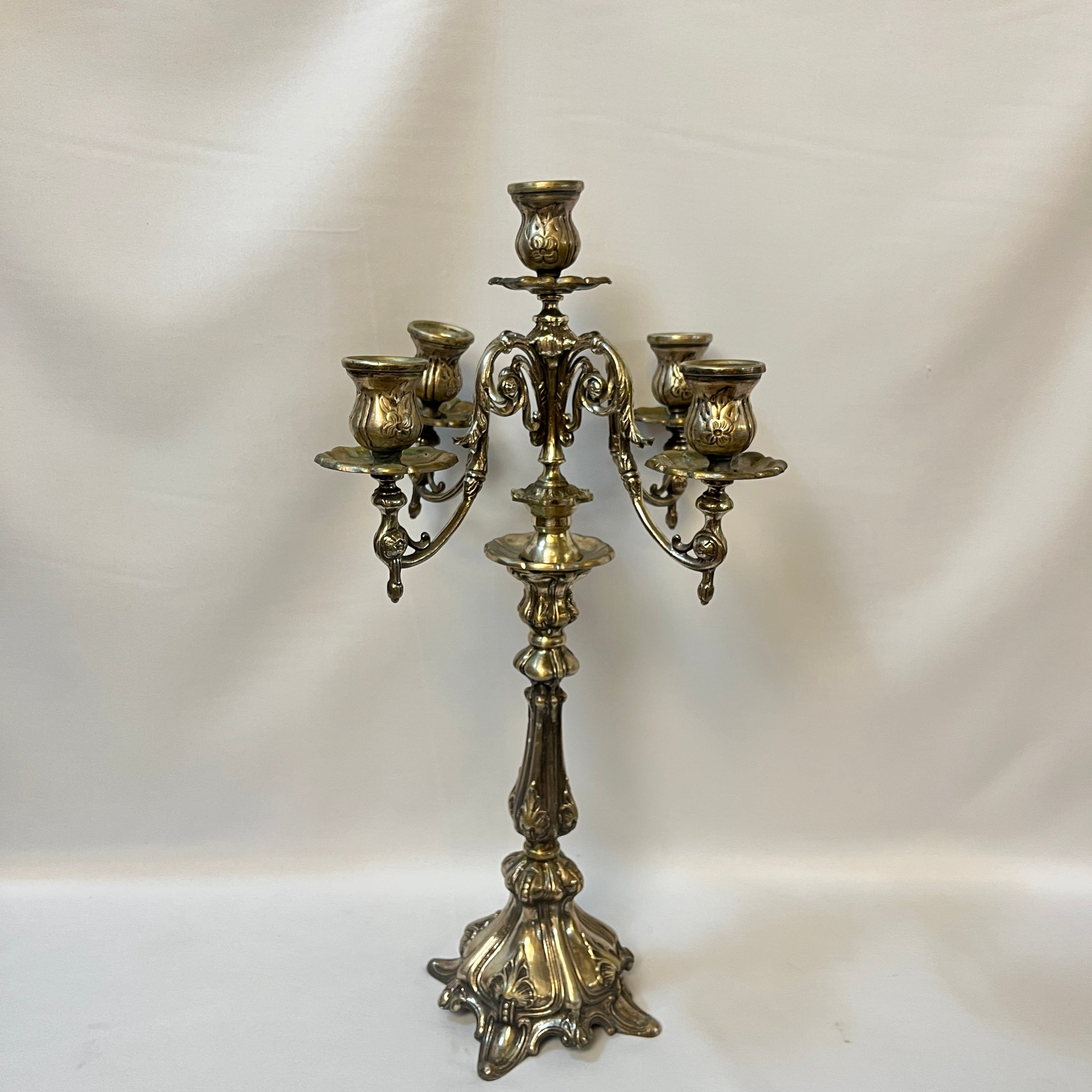 Candelabro de plaqué para cinco luces con decoración rocaille