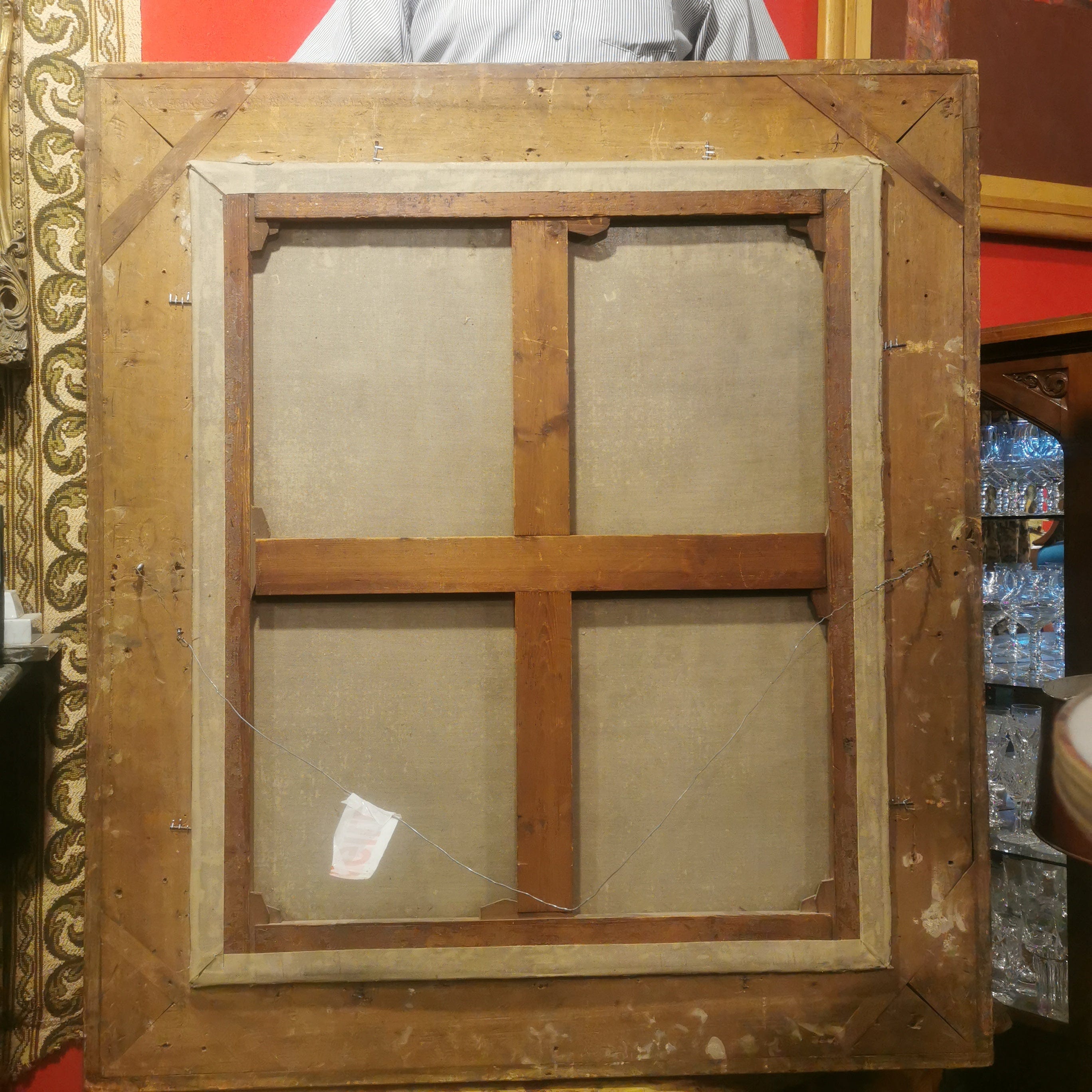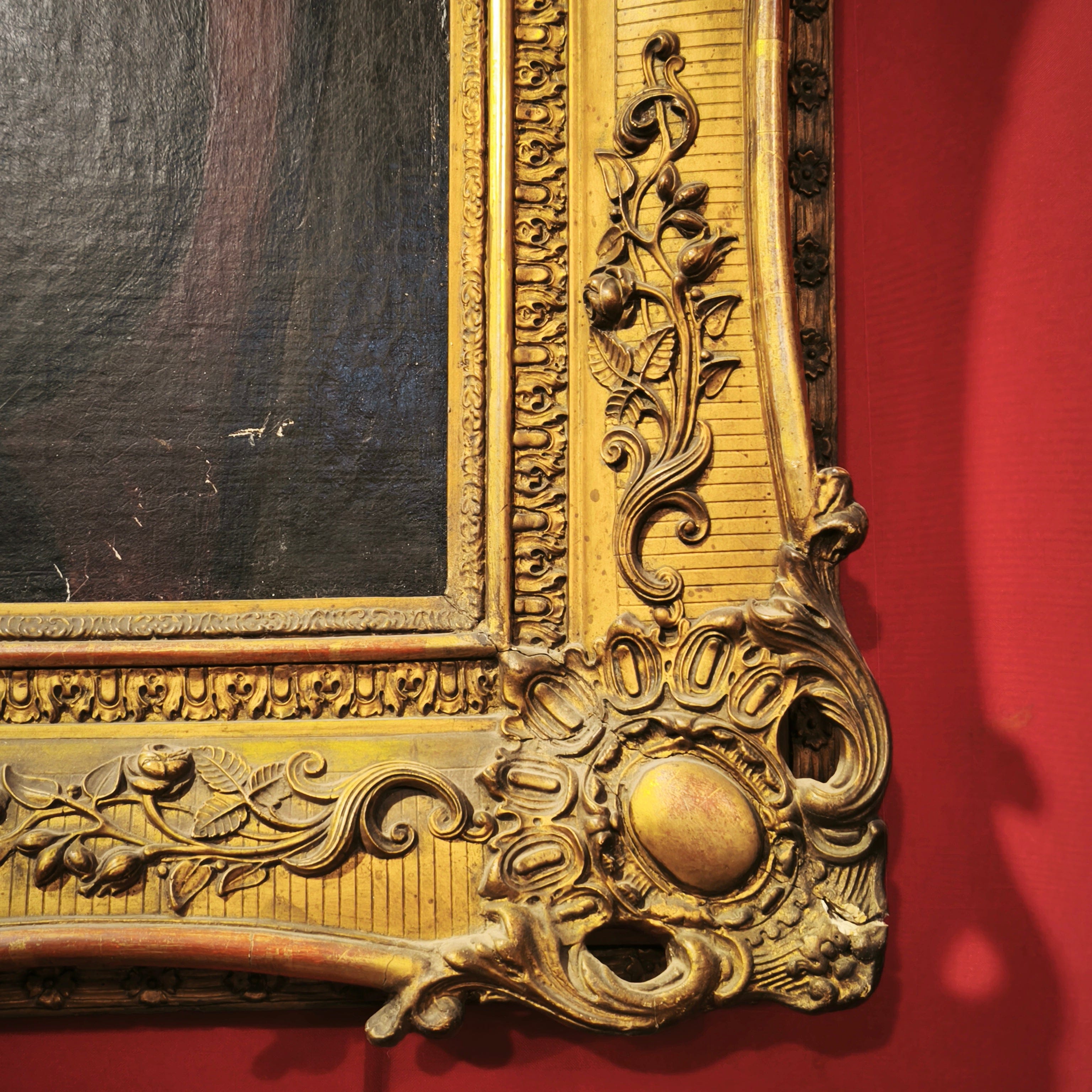 Cuadro con un imponente marco de madera tallada con detalles florales, pintado en dorado.