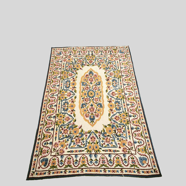 Tapicería de cachemira bordada a mano flores azules y doradas 134X204