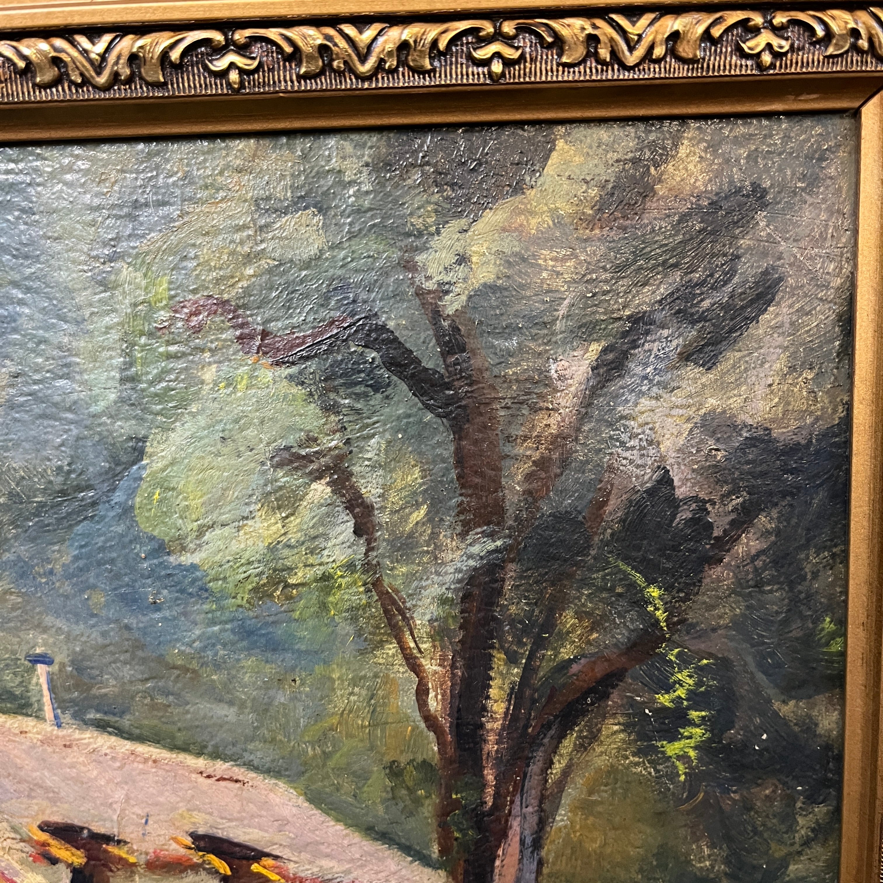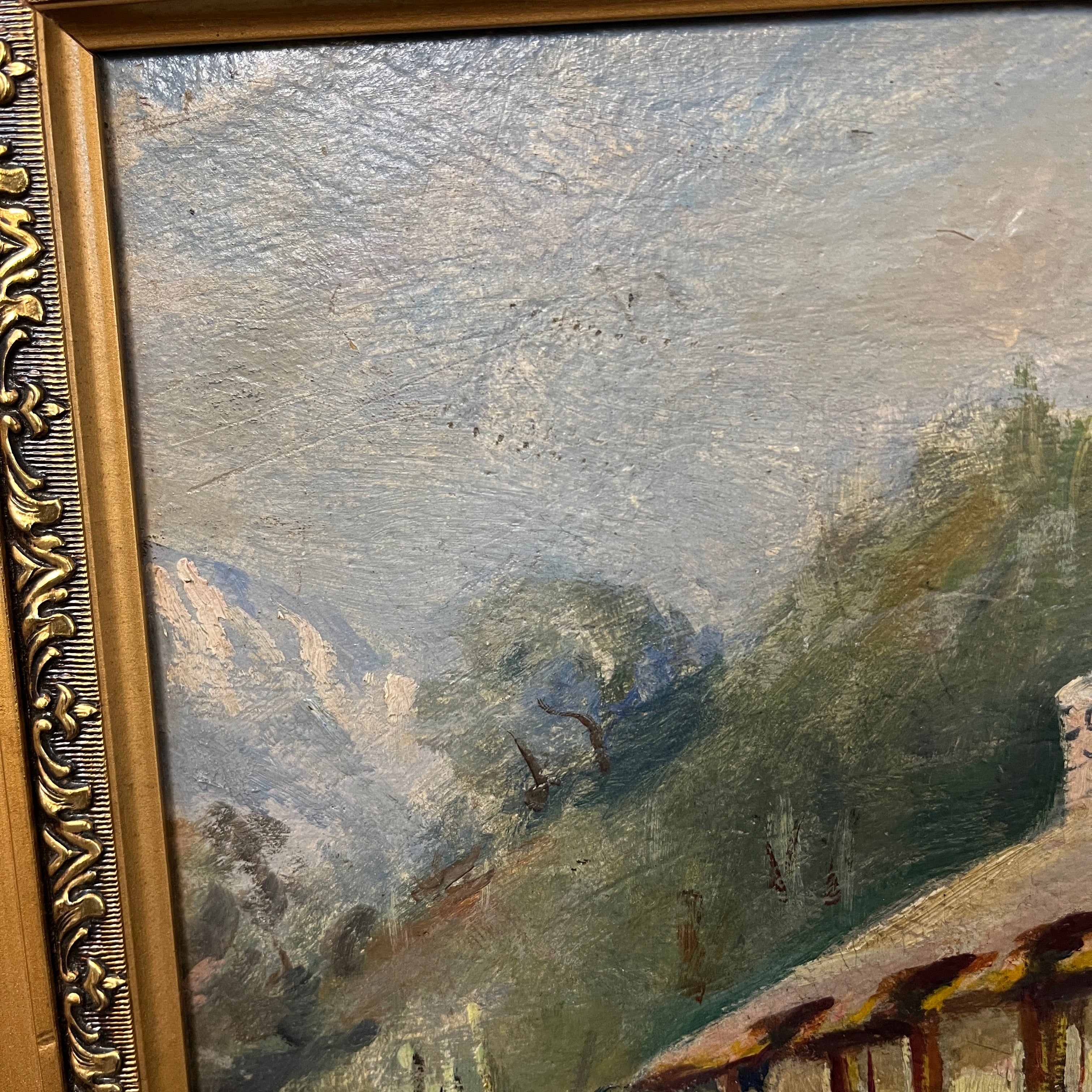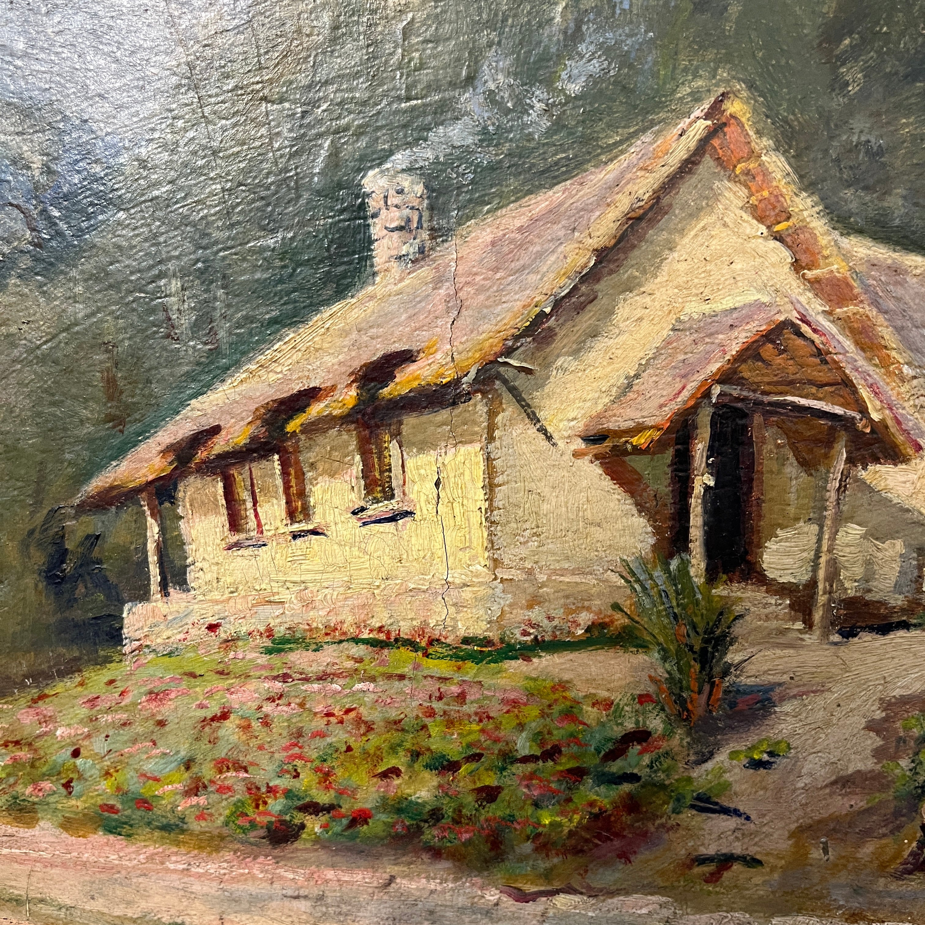 Anónimo - Óleo sobre madera ‘Casa vista desde el camino’