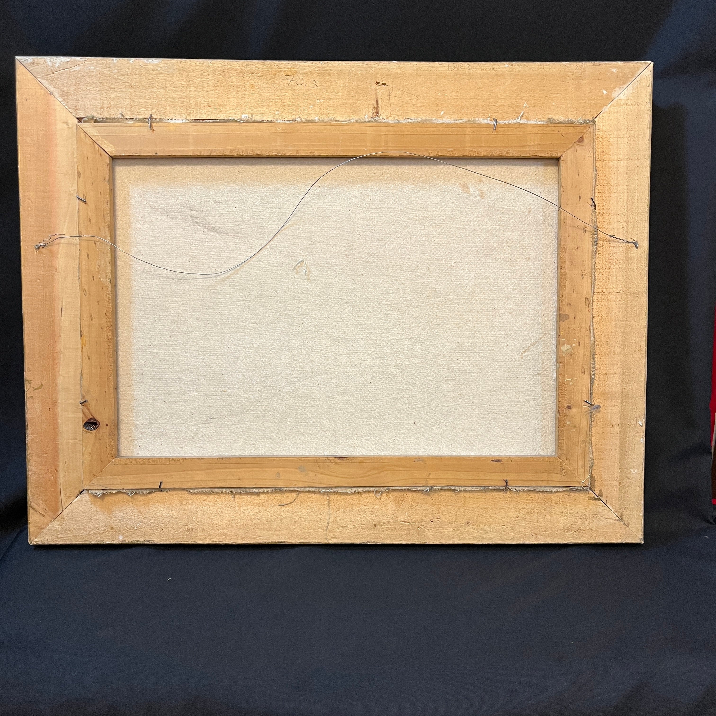 Dimensiones: Marco alto: 67 cm, ancho: 88 cm, profundidad: 7cm. Obra alto: 49 cm, ancho: 69 cm.