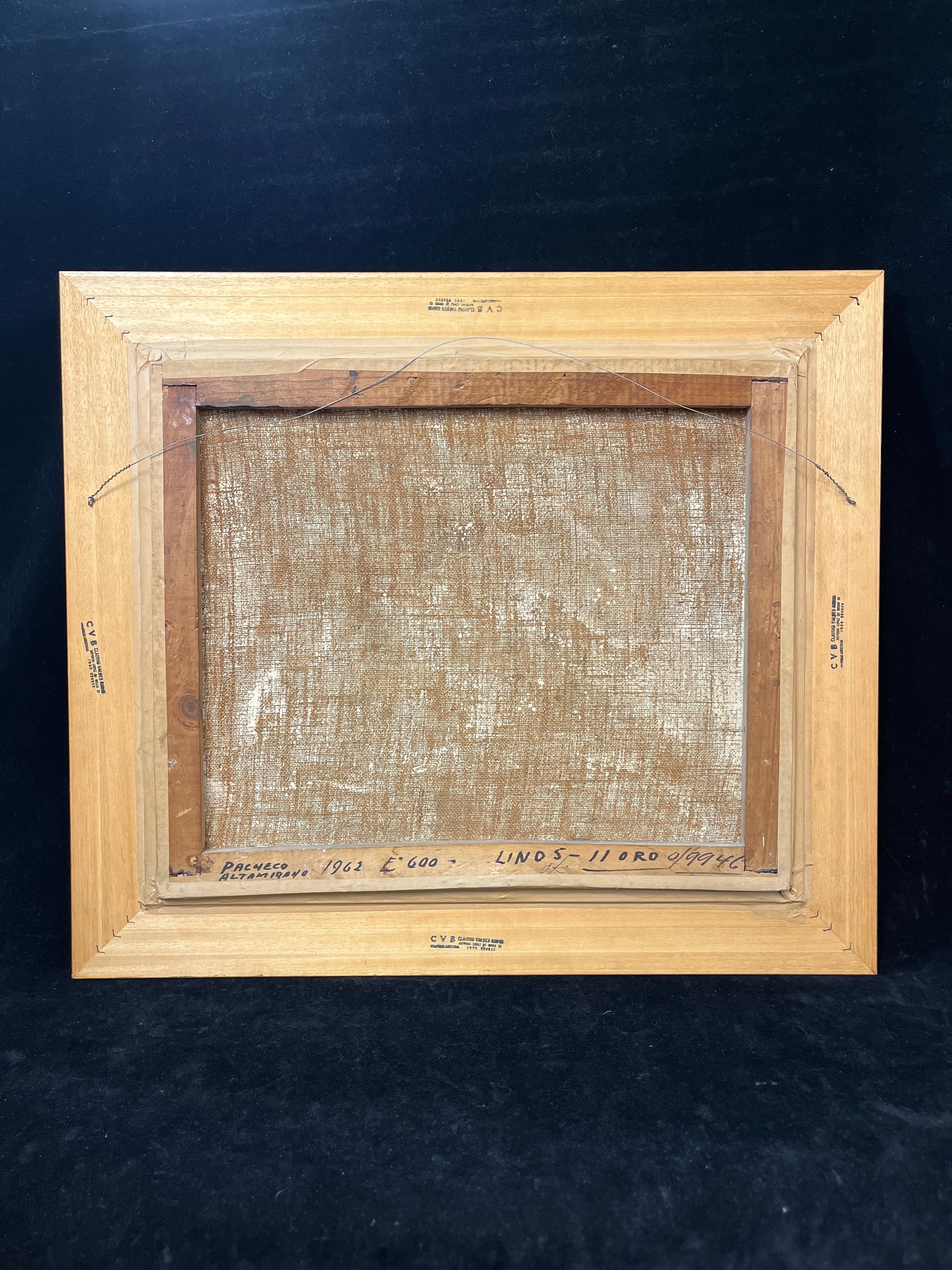 Dimensiones: Marco alto: 67cm ancho: 78cm profundidad: 5cm. Obra alto: 47cm ancho 58cm.