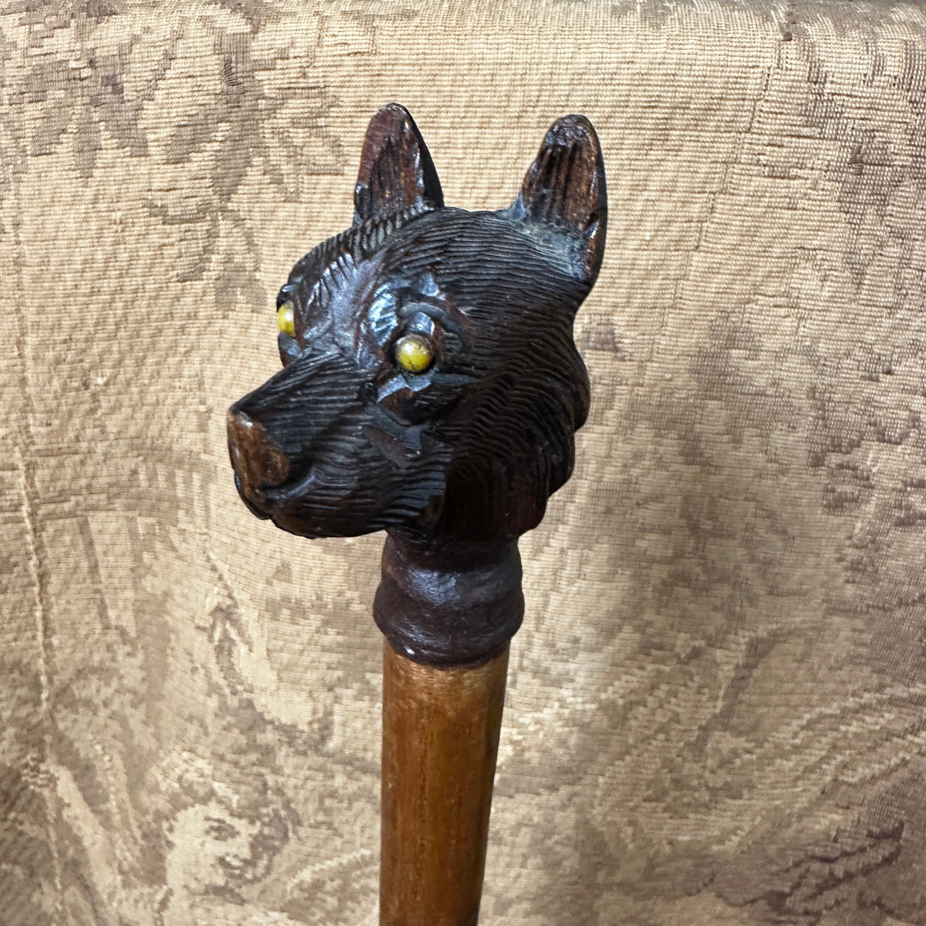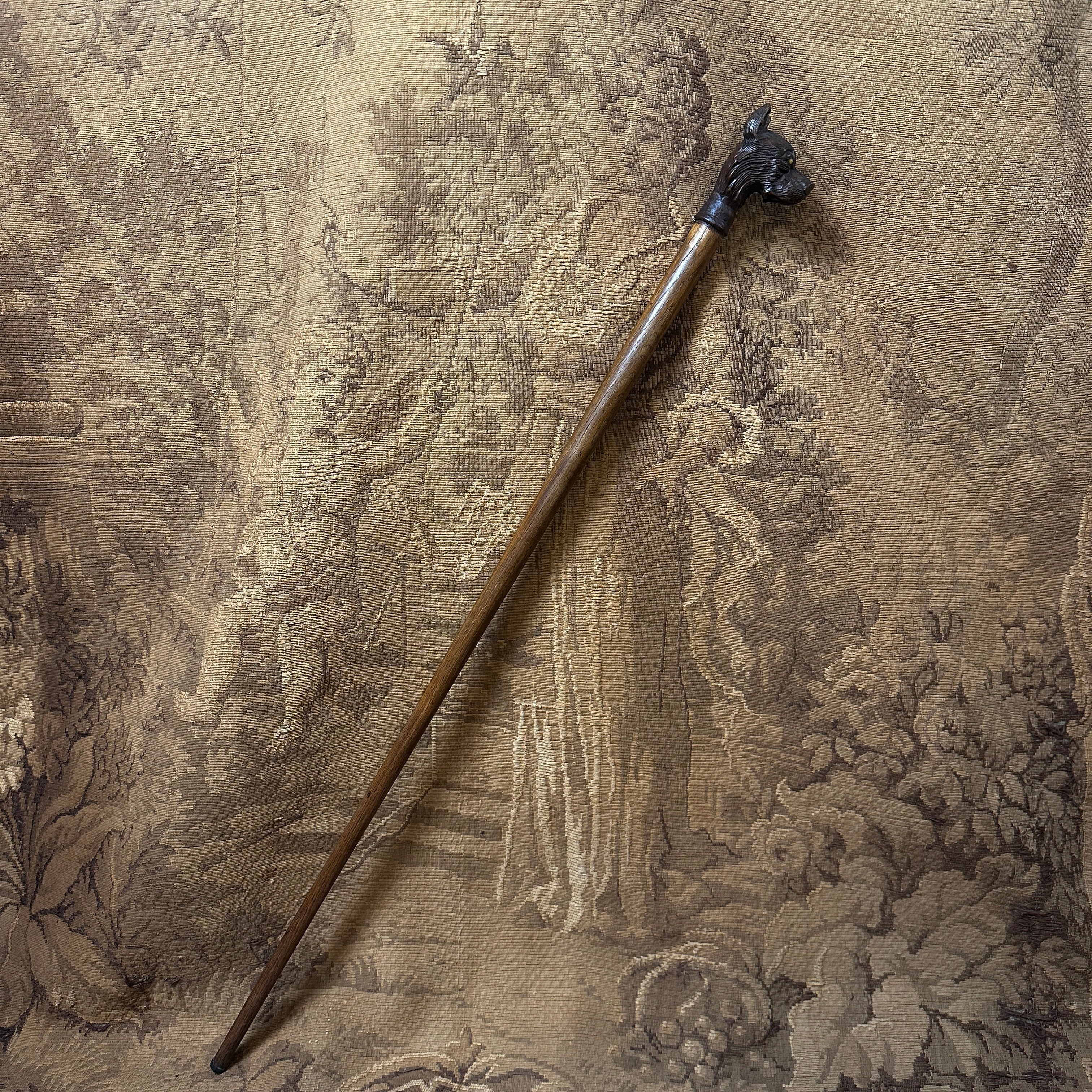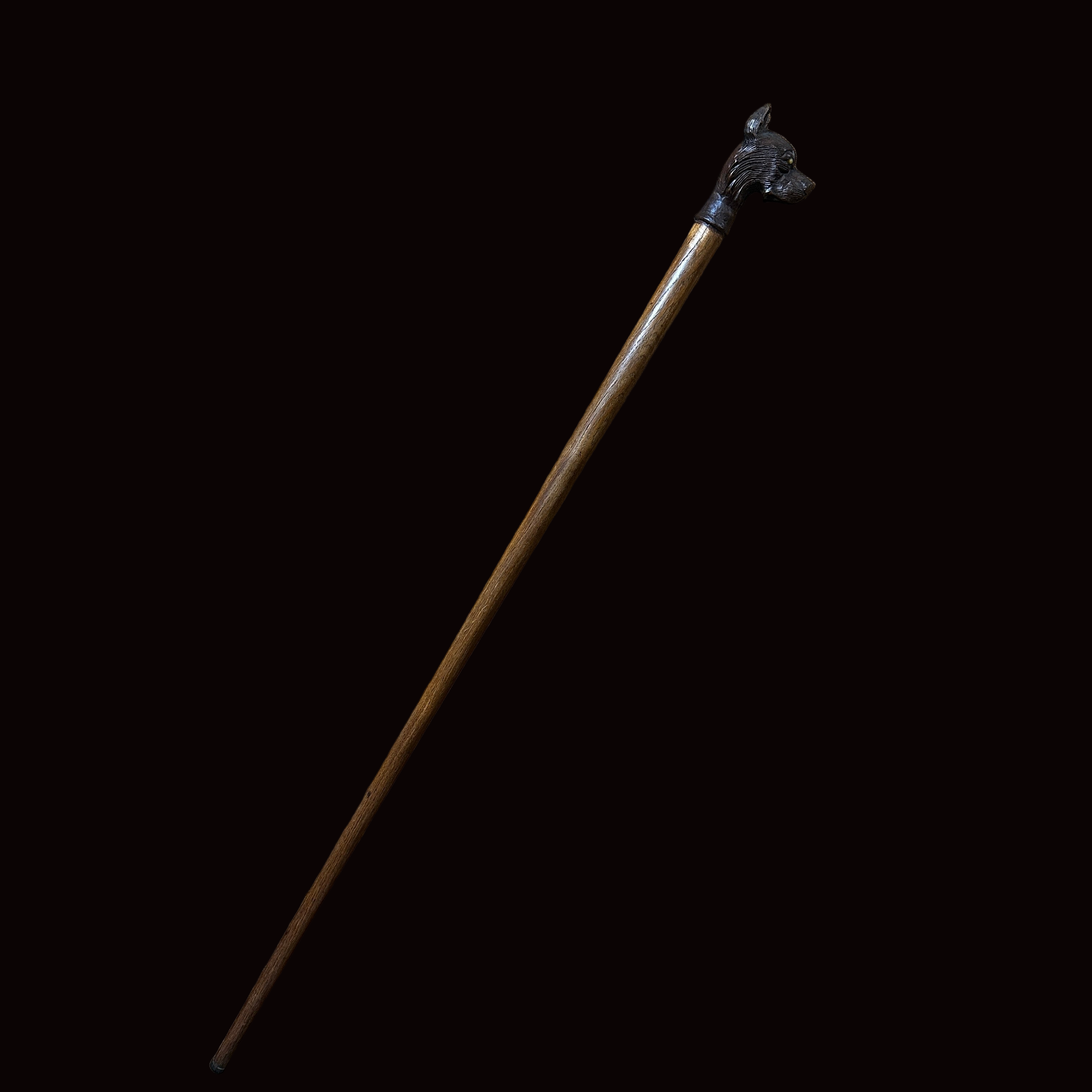 Vistoso bastón de caballero en roble americano con empuñadura tallada en forma de perro.