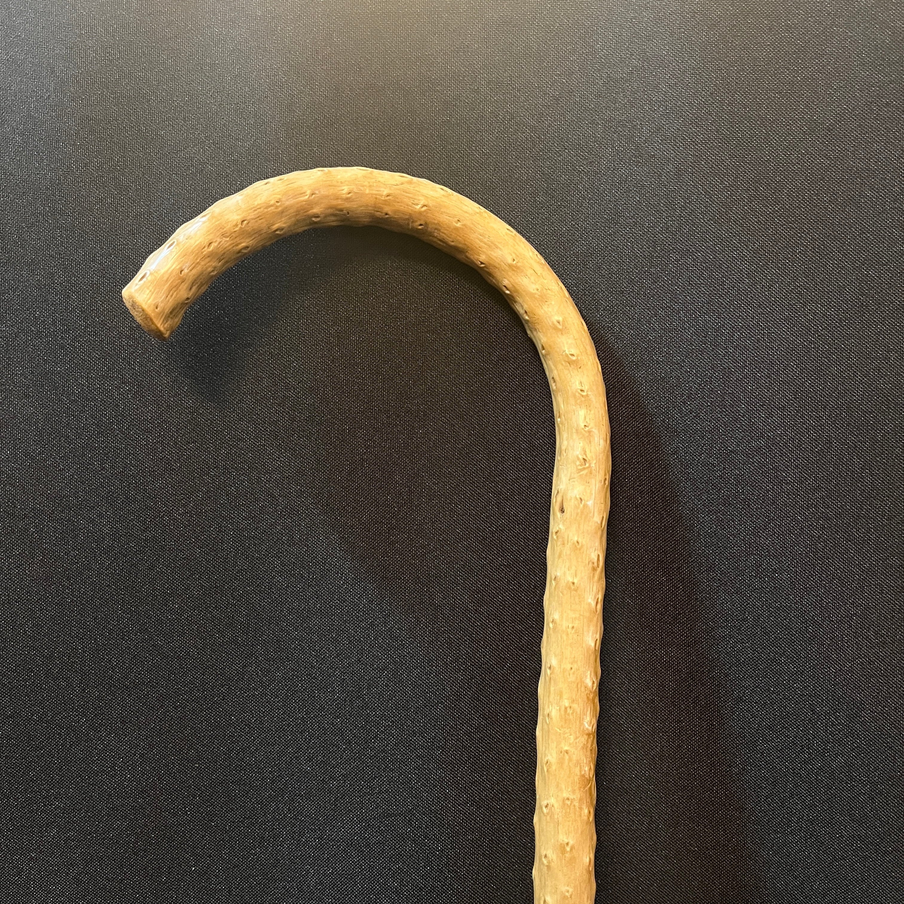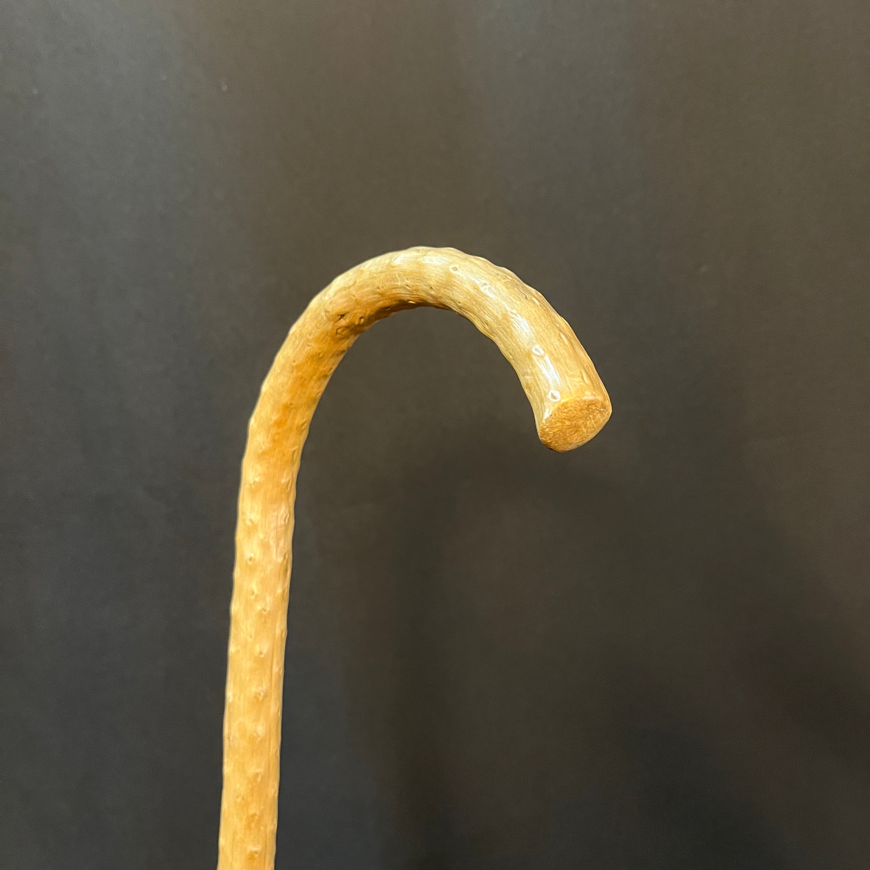 Sobrio bastón de madera de espino con interesante textura natural de la madera. Es un bastón ideal para utilizar en ciudad, firme lo que permita a la persona con total confianza usarlo de apoyo.