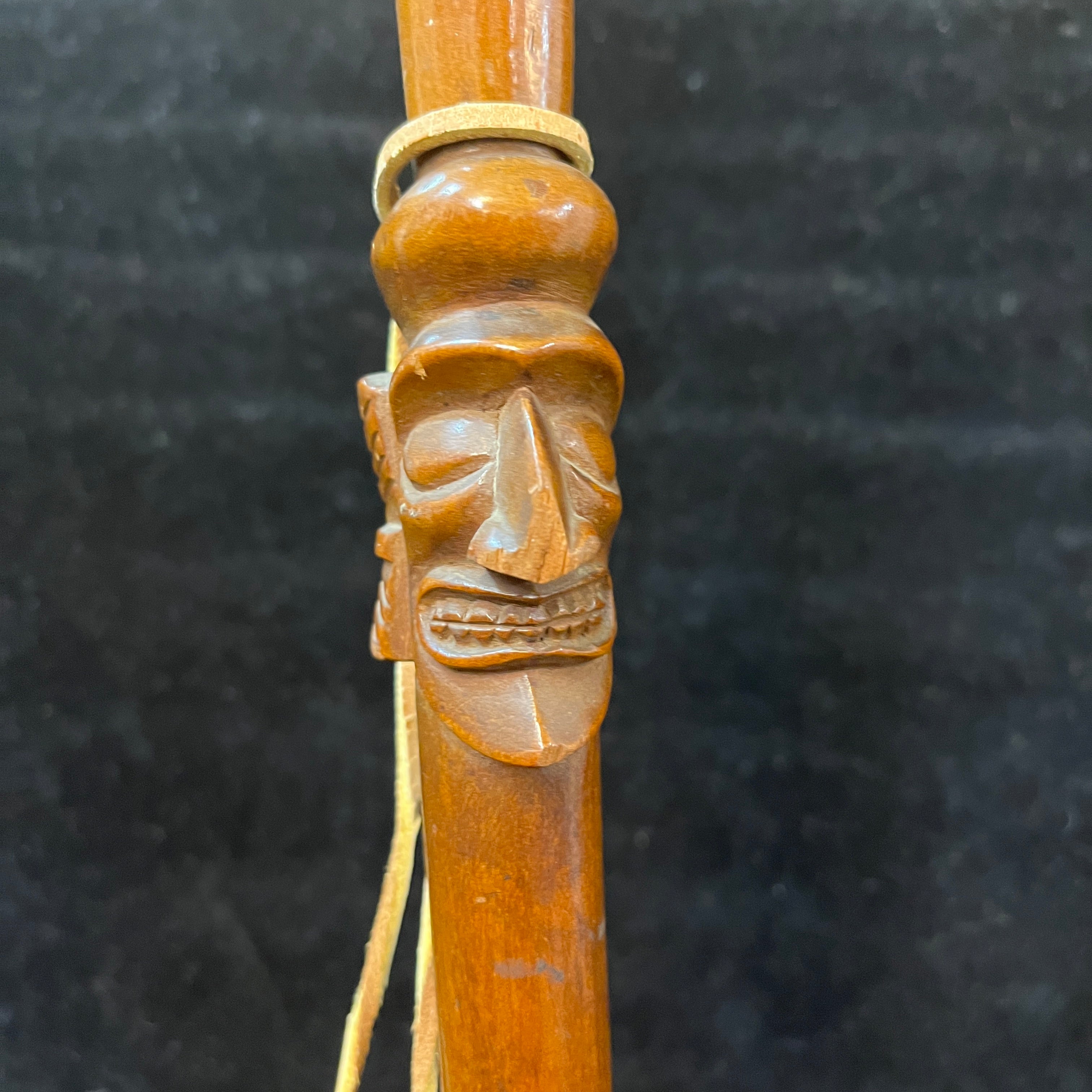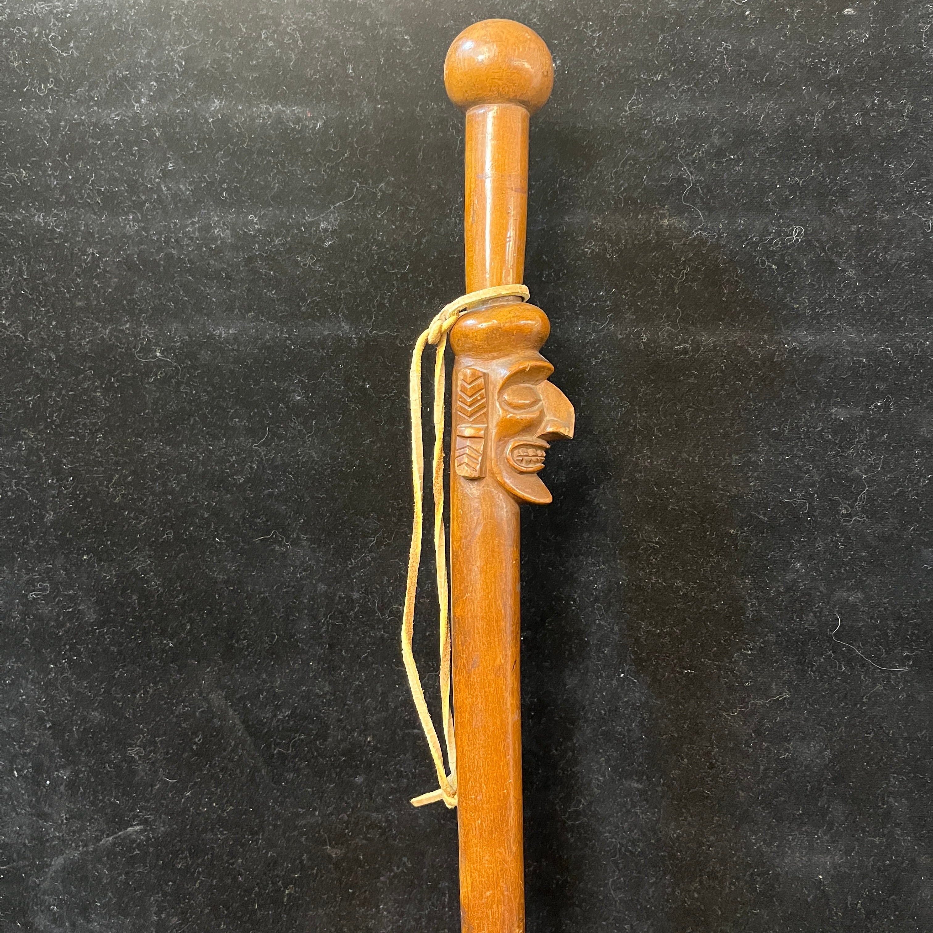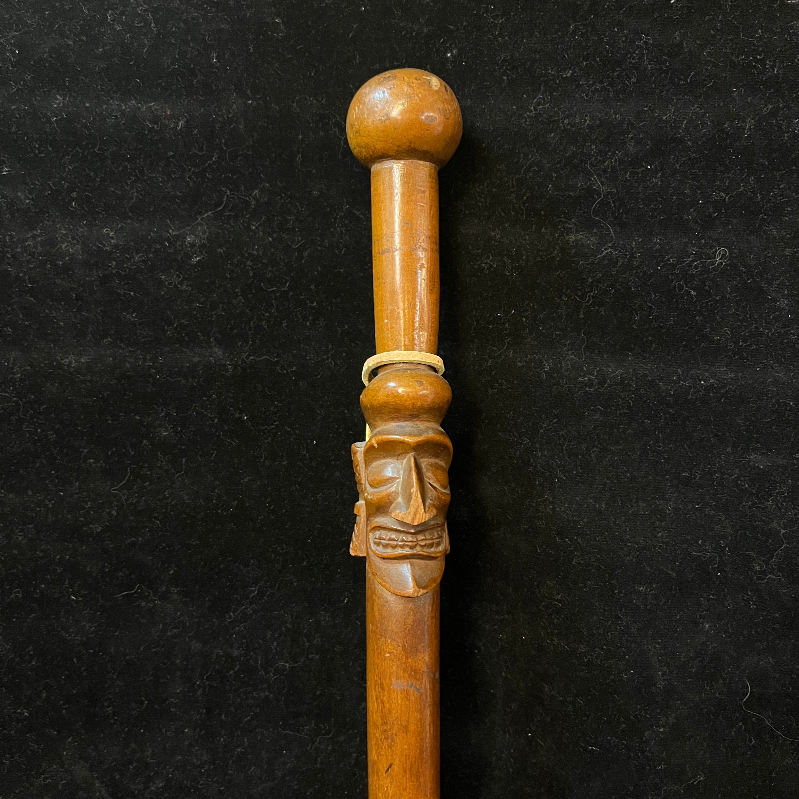 Bastón madera Rapa Nui rostro de Kava Kava tallado