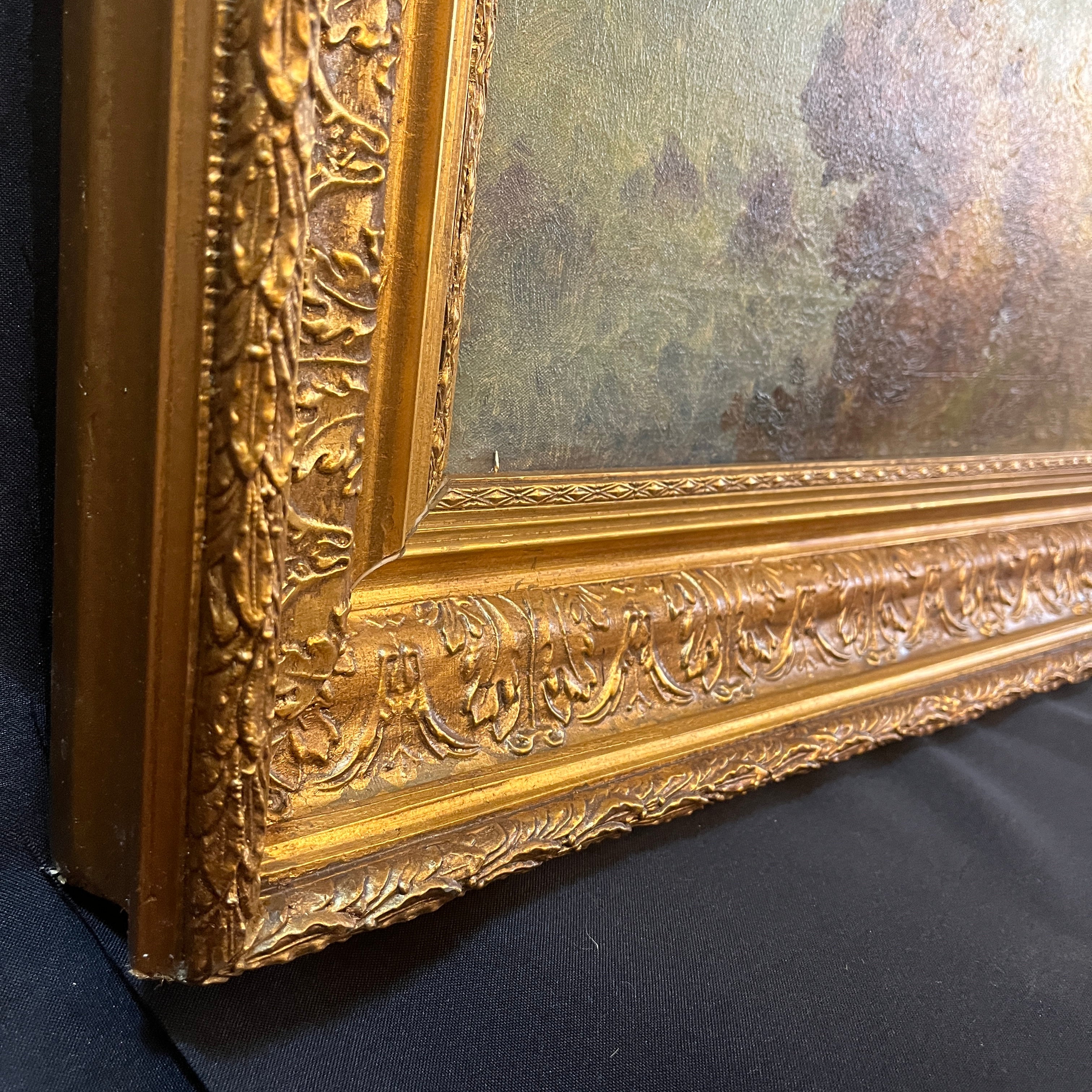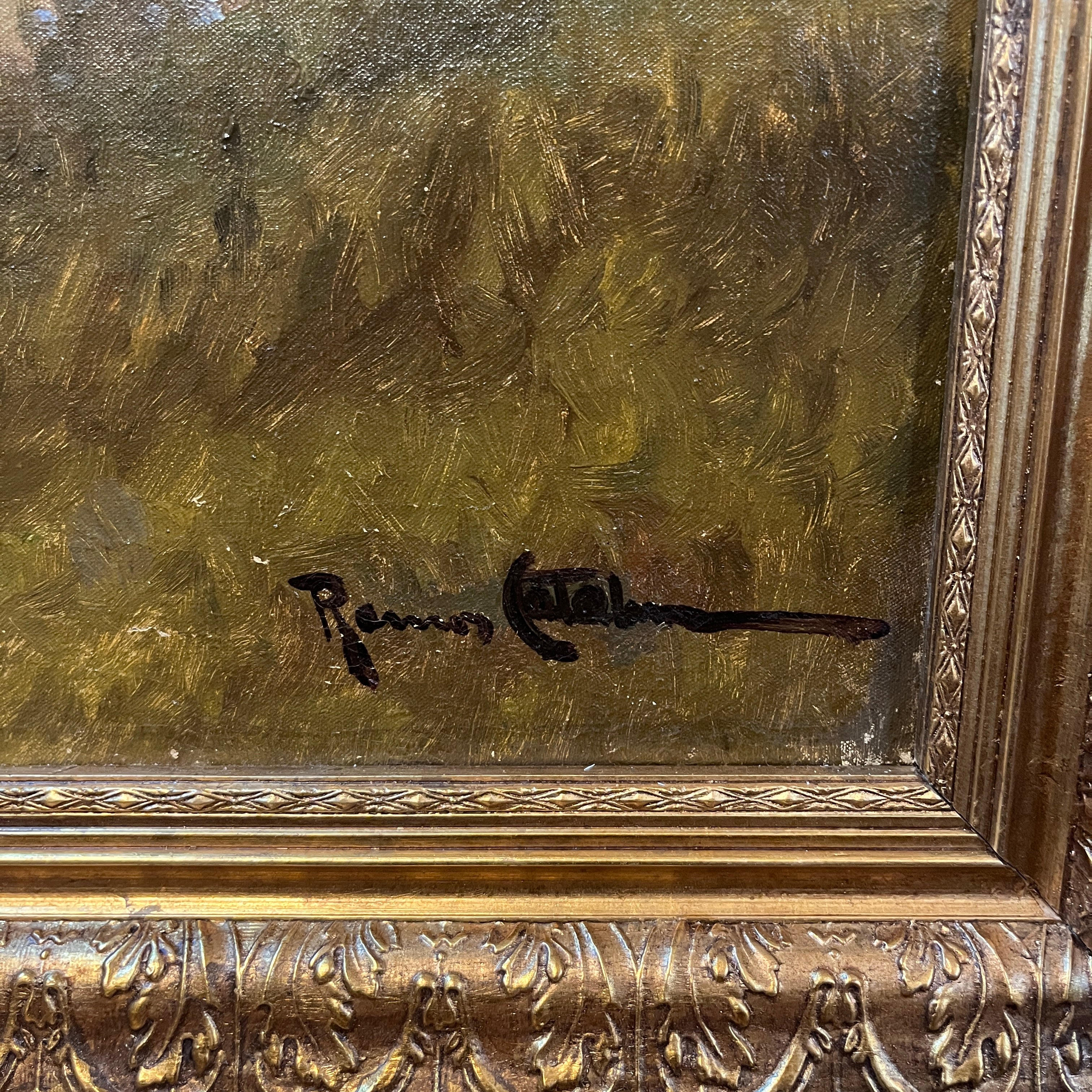 Benito Ramos Catalán - Óleo sobre tela ‘Paisaje cordillera y arbustos junto al río’