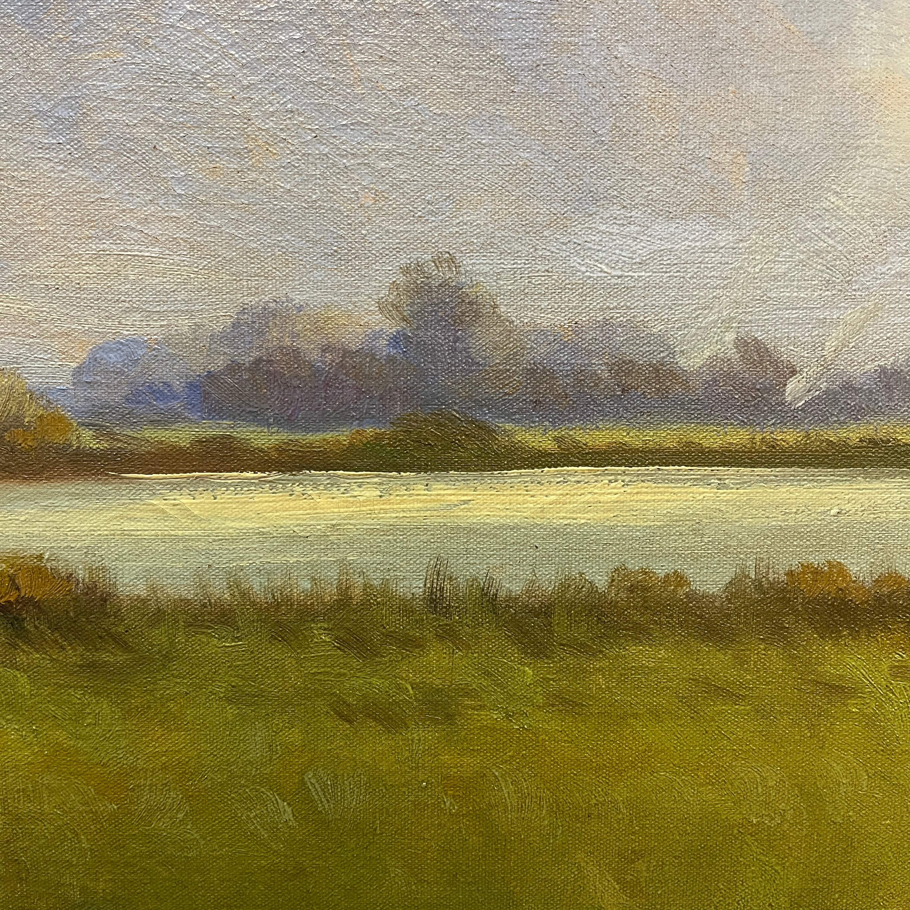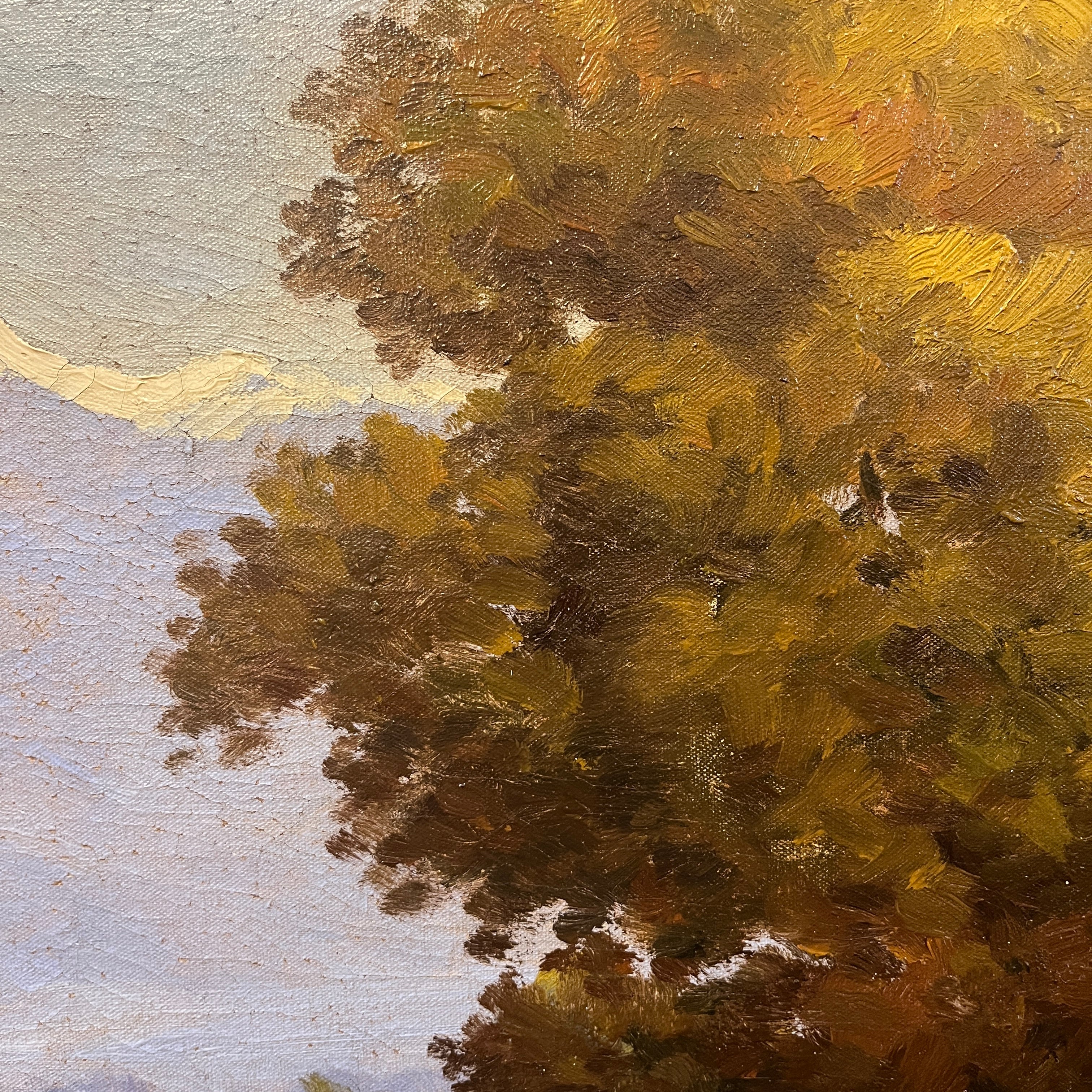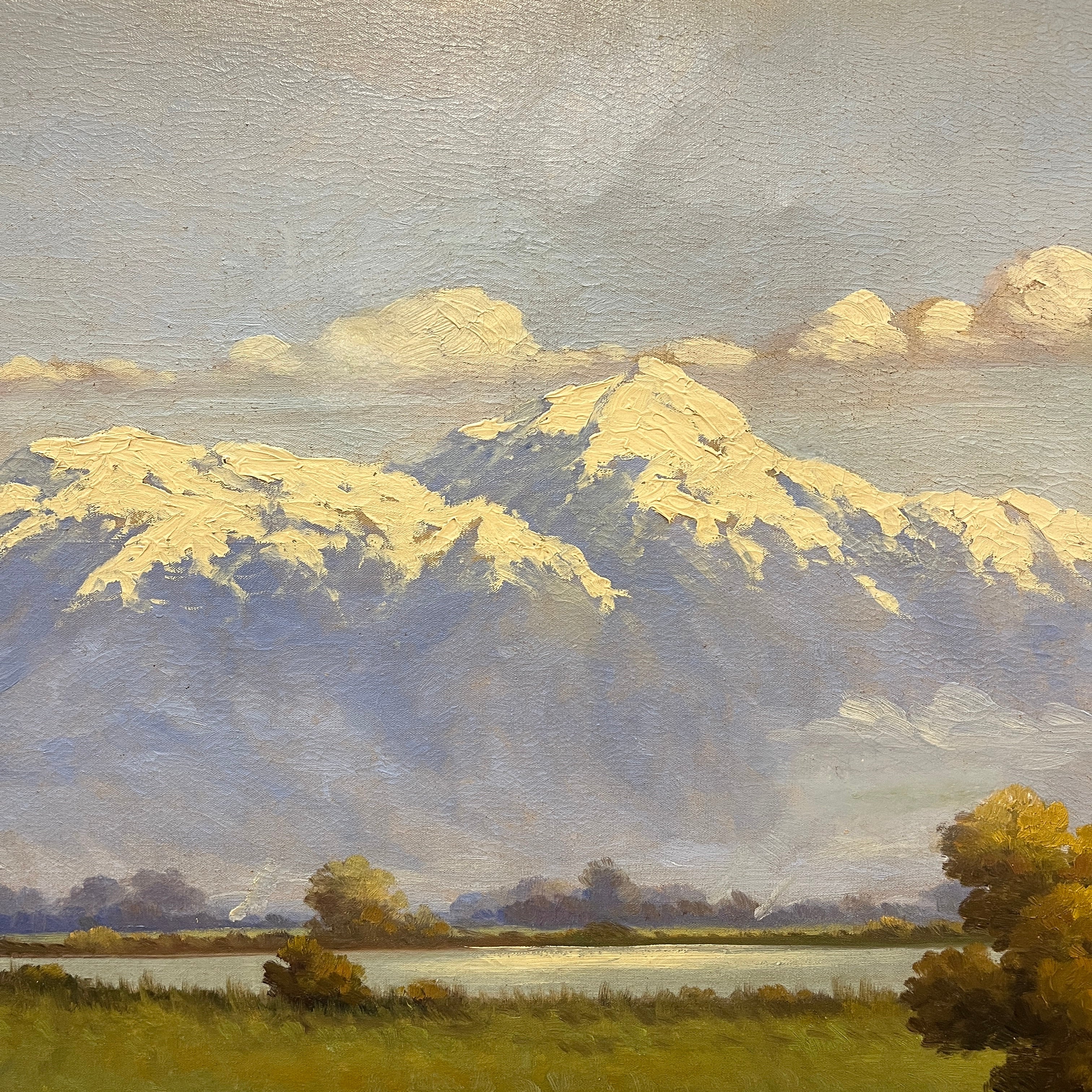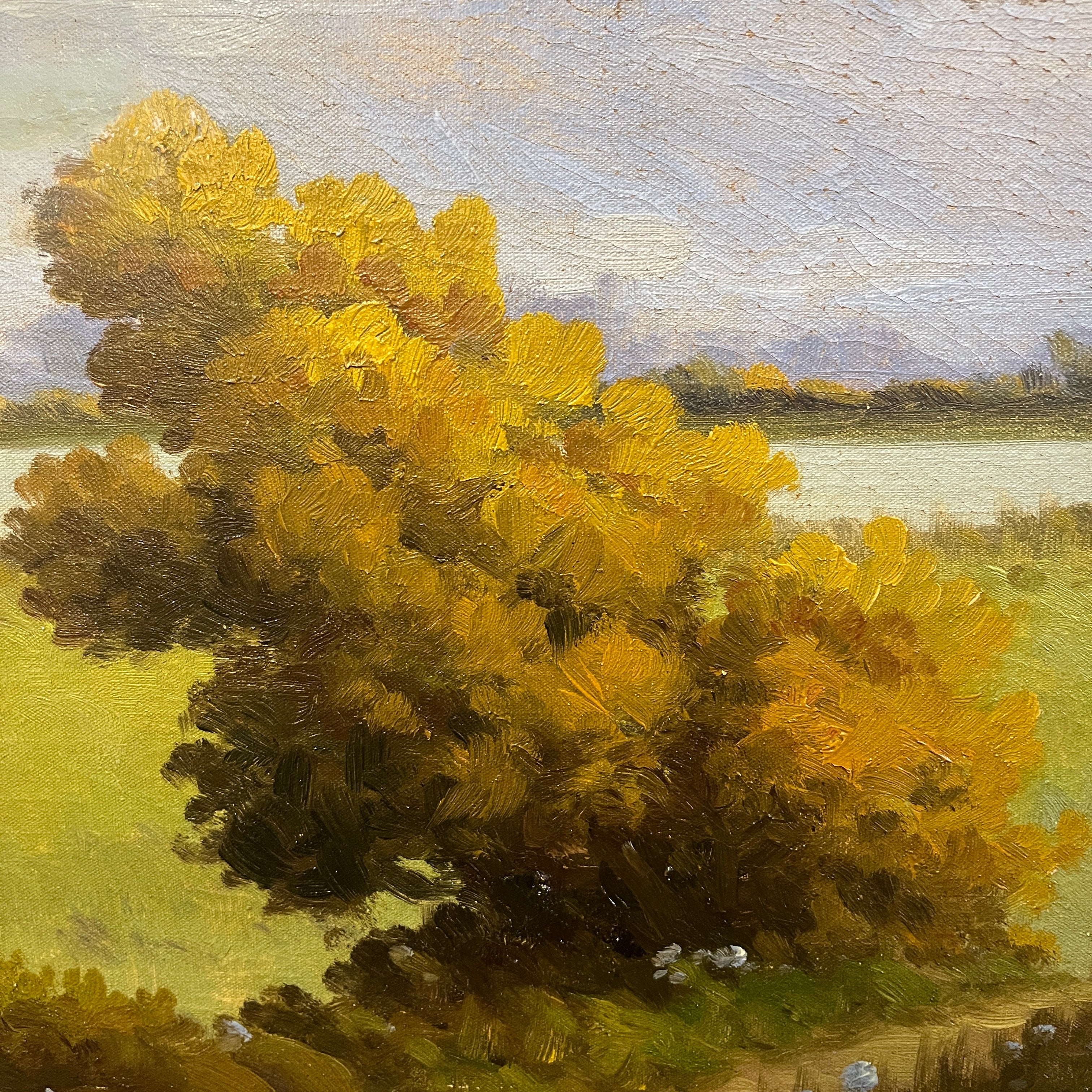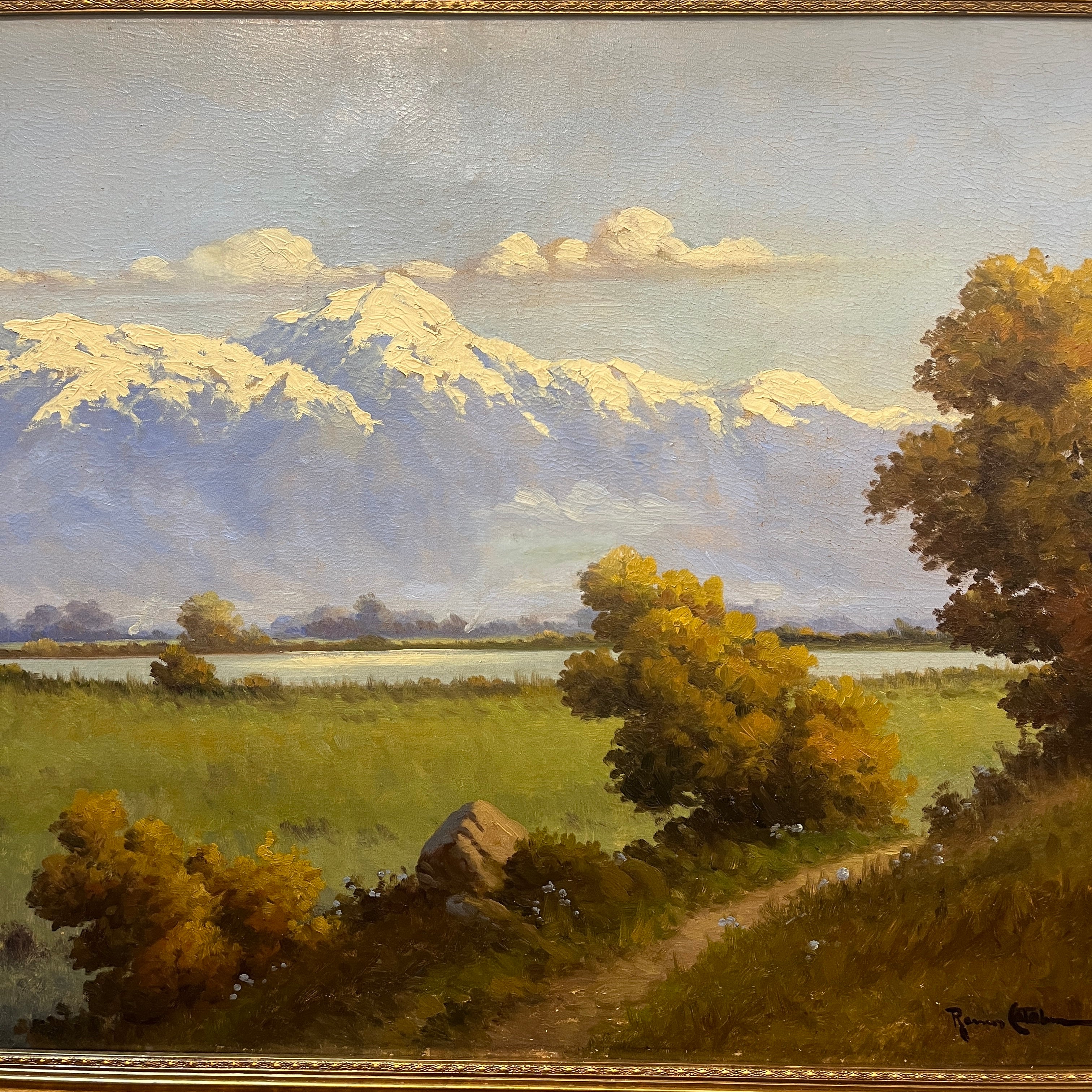 Hermoso paisaje del pintor chileno Benito Ramos Catalán. Su pasión por retratar paisajes serenos con la cordillera de fondo nunca deja de sorprender. Sus tonalidades entregan esa sensación de calidez, propia de su talento y estilo.