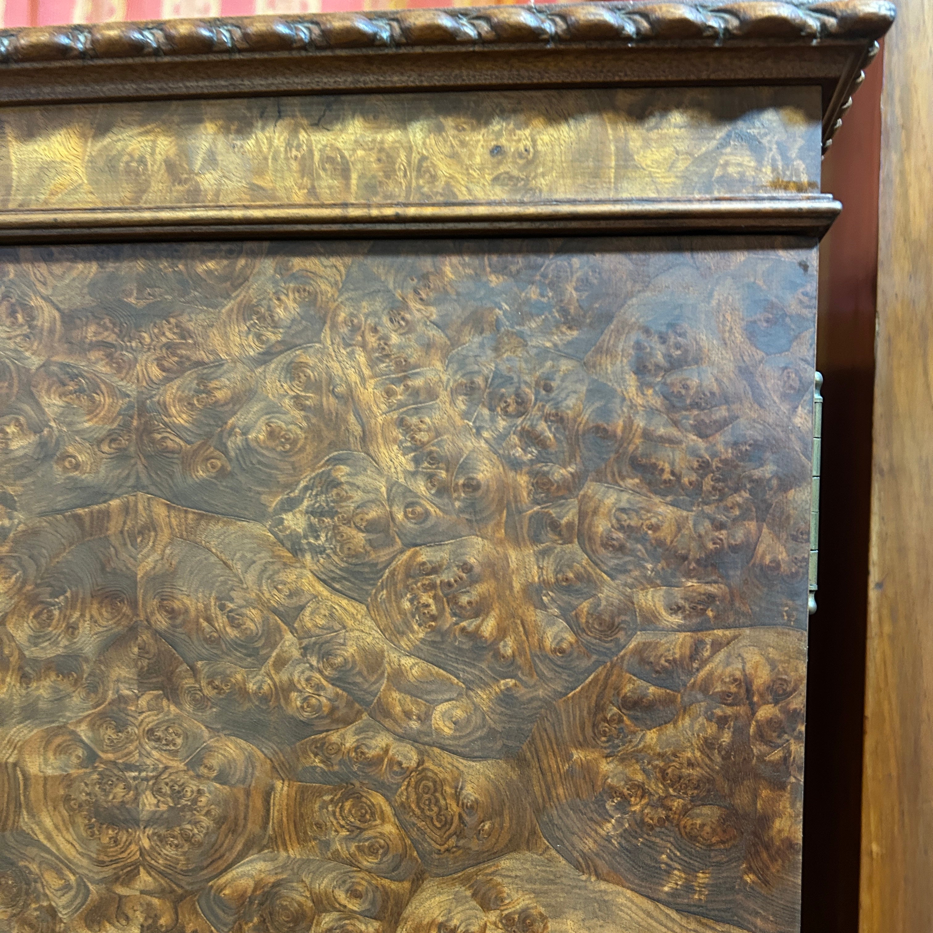 Cabinet chiffonier inglés Chippendale de nogal y raíz de nogal mediados siglo XX