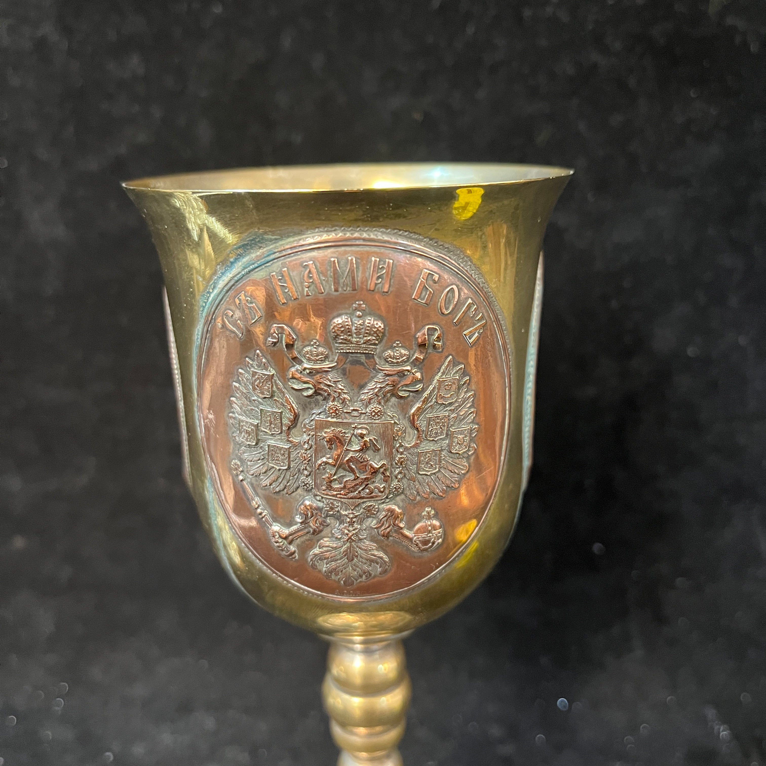 Copa de coronación Romanov de bronce con medallones en relieve