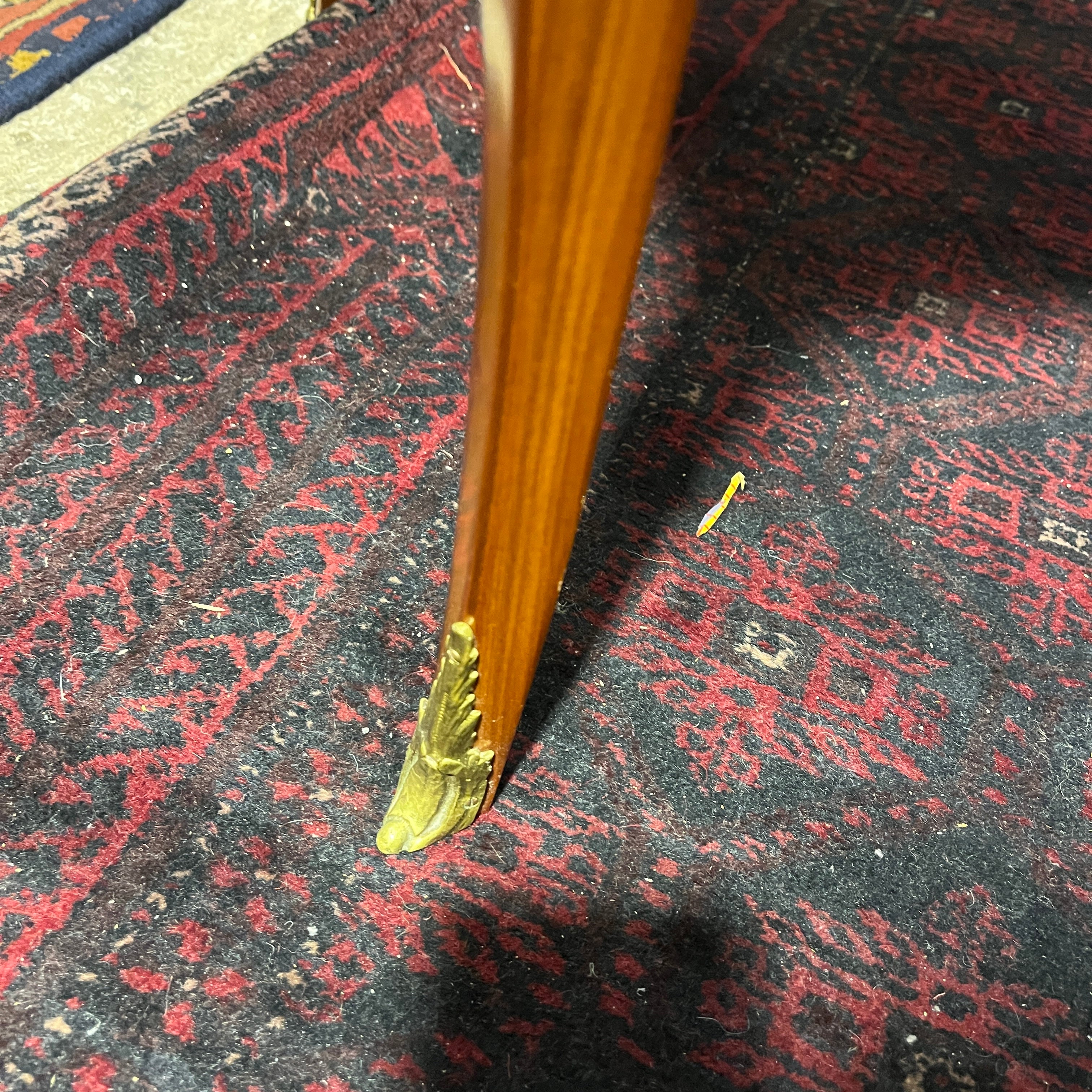 Bellísimo coiffeuse francés estilo Transición, trabajado en madera enchapada. Presenta marquetería con diversos motivos (trofeos, vasijas, música, bergère), aplicaciones y tiradores de bronce. Trabajo firmado por el ebanista contemporáneo René Barde (FR) en homenaje a sus predecesores. Francia, 2001.
