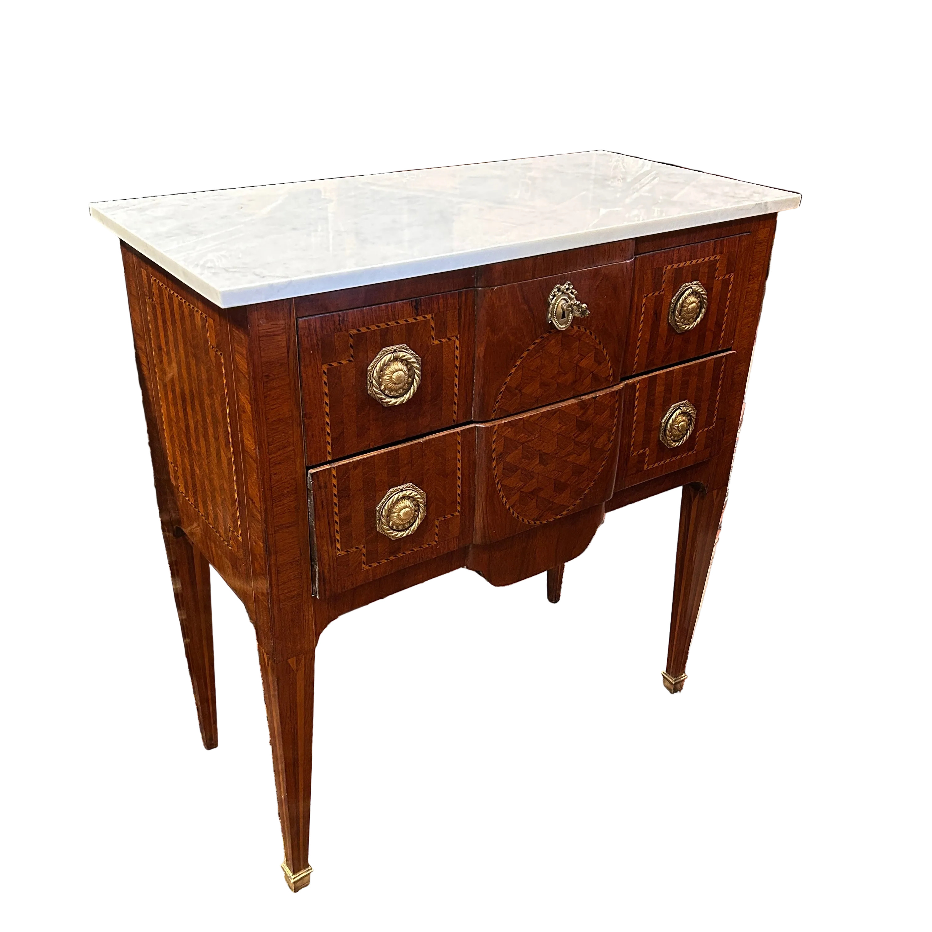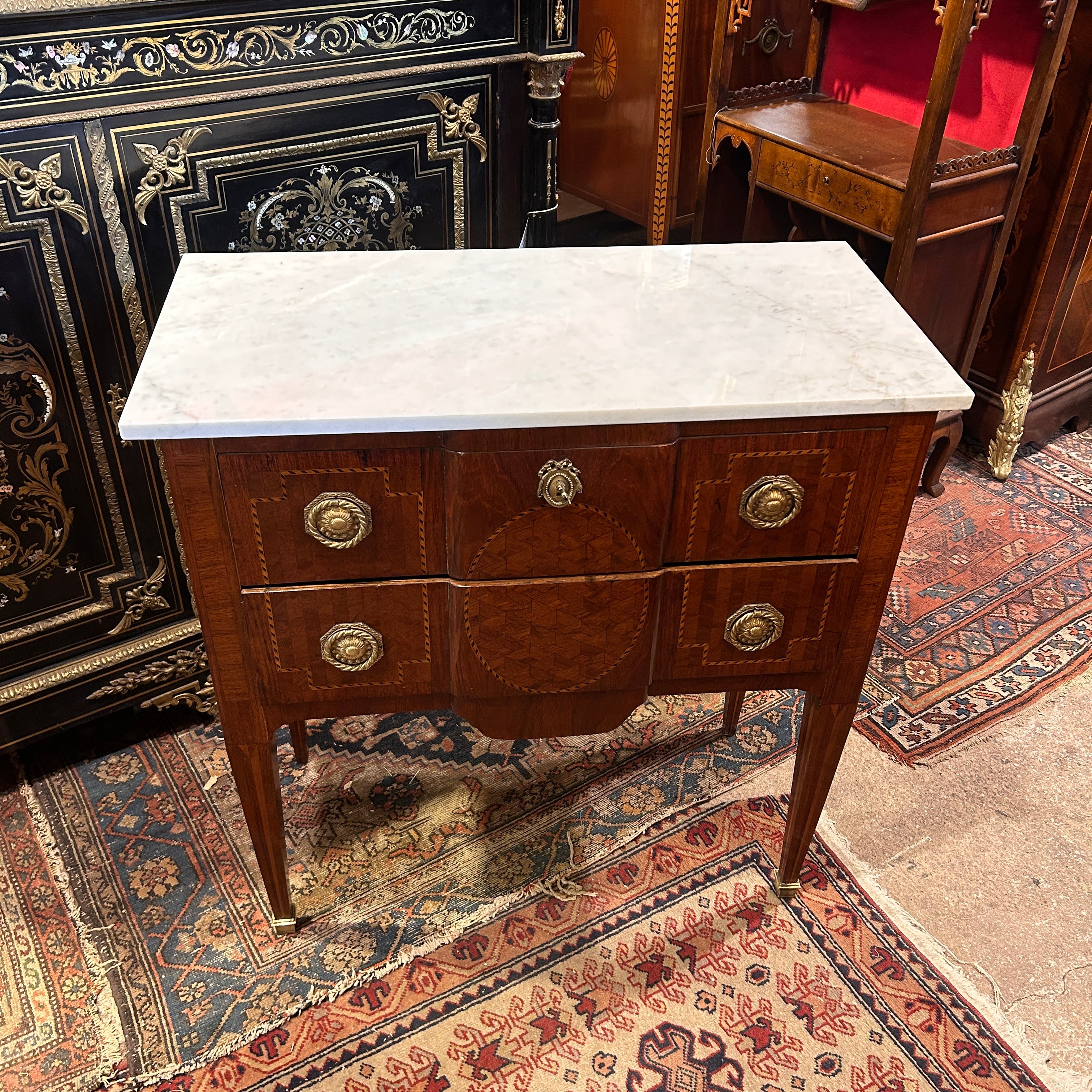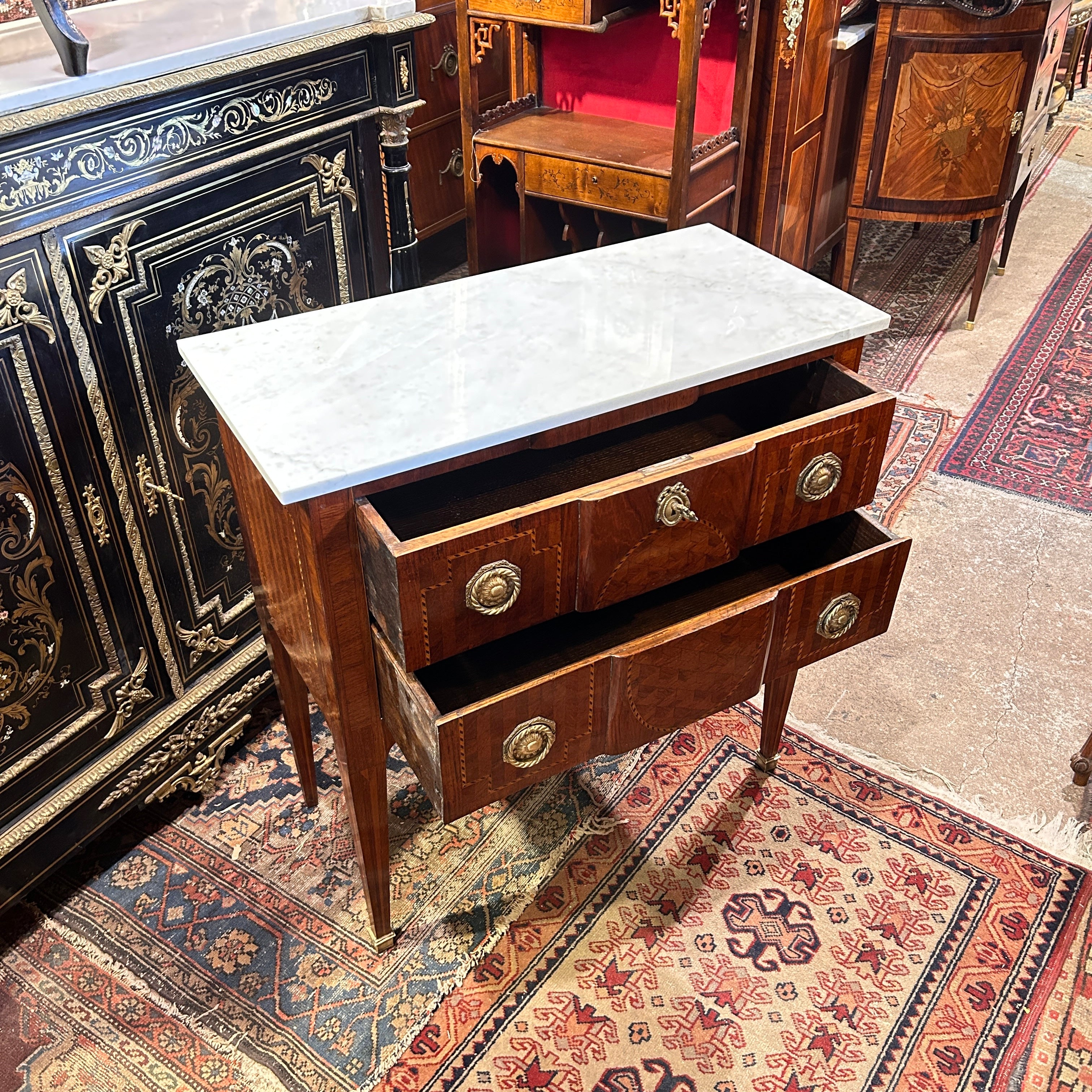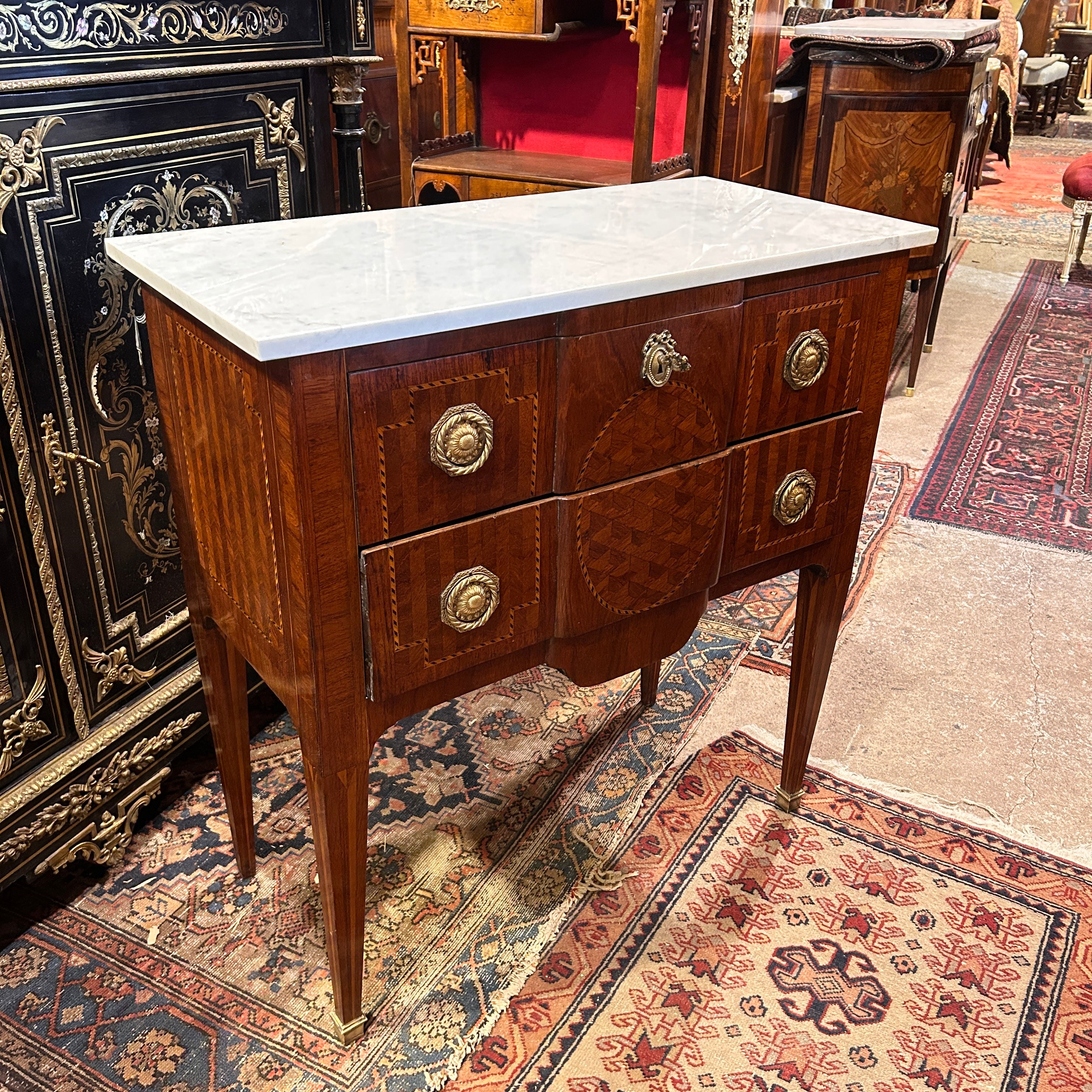 Cómoda francesa estilo Transición marquetería trampantojo circa 1900