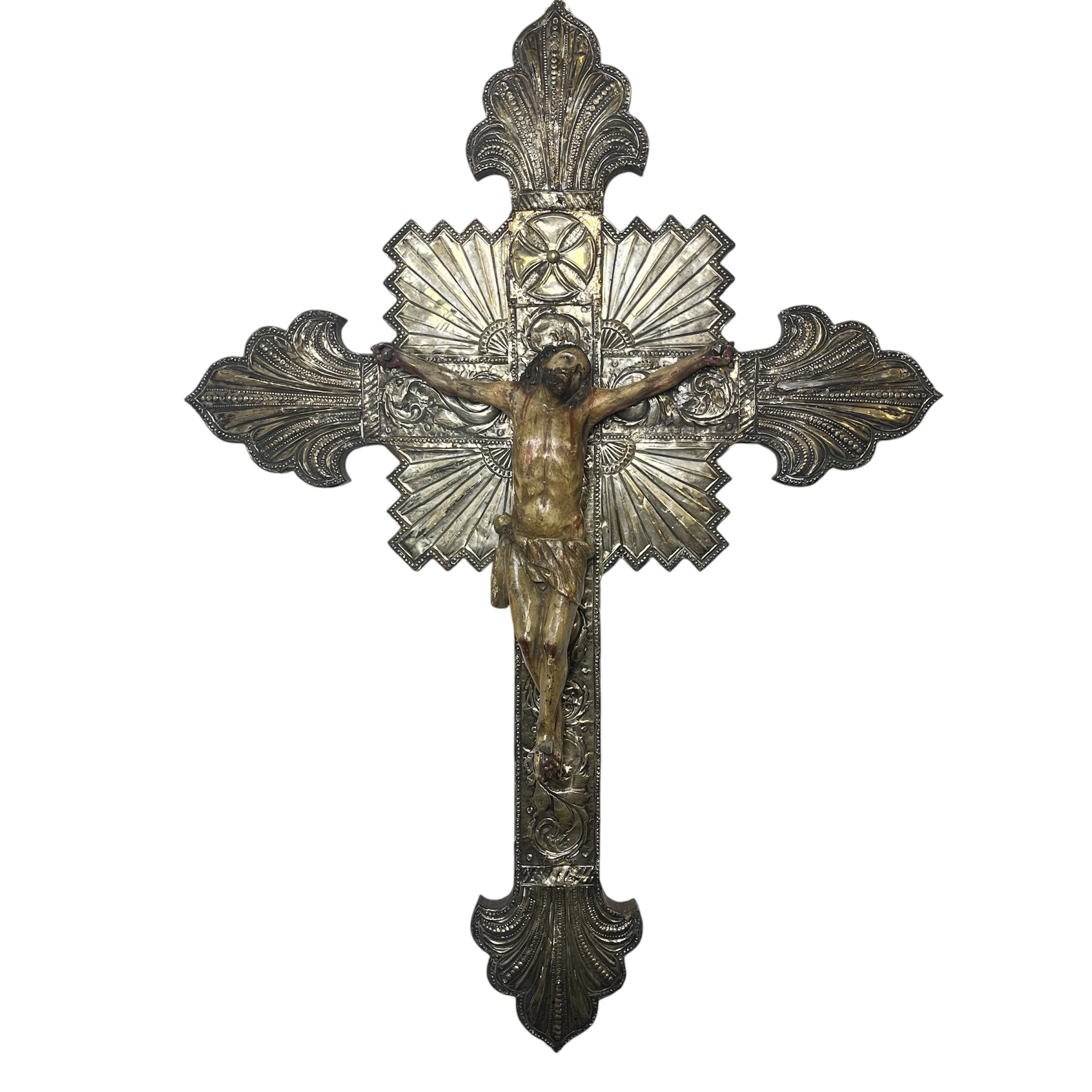 Cristo en la cruz de plata y madera 1900