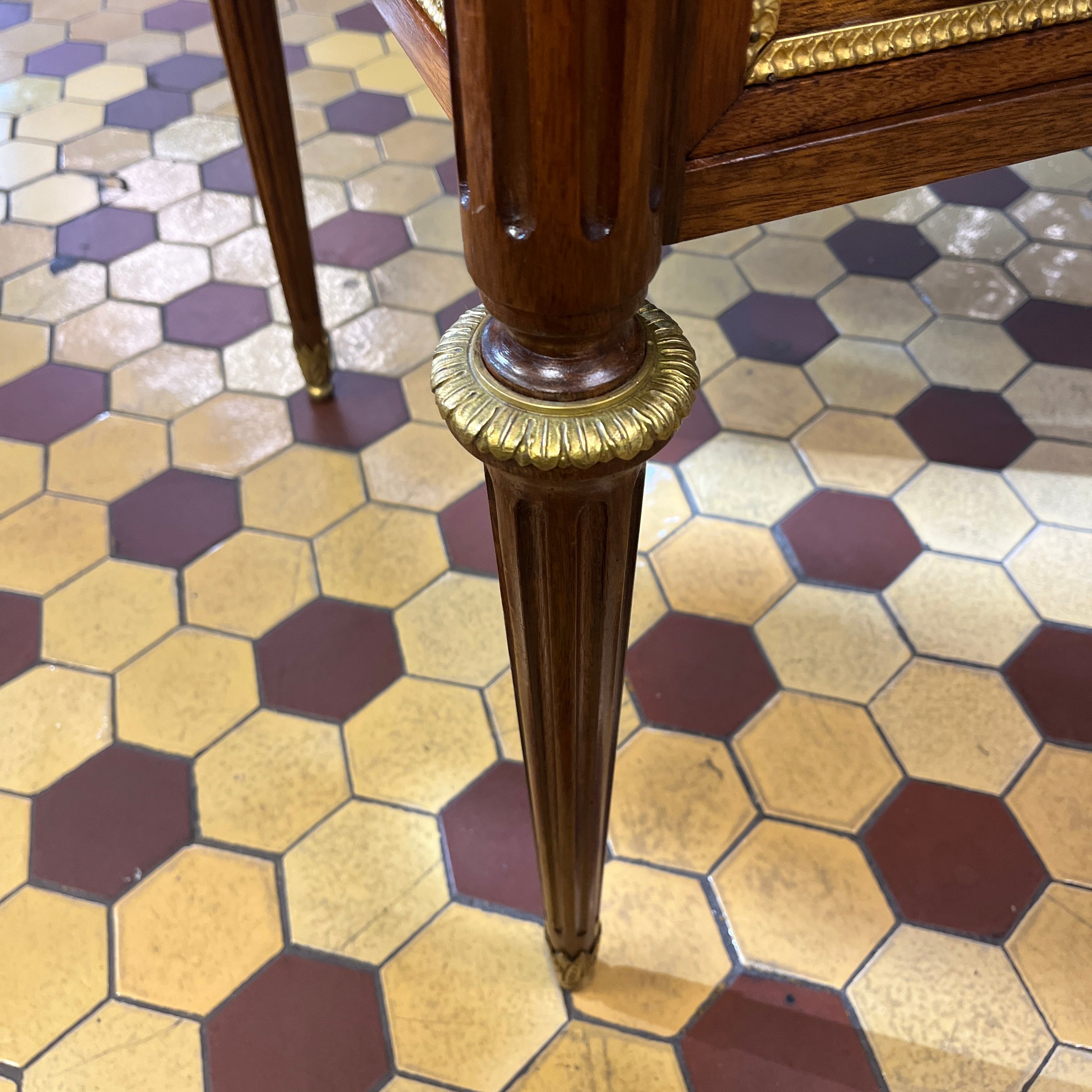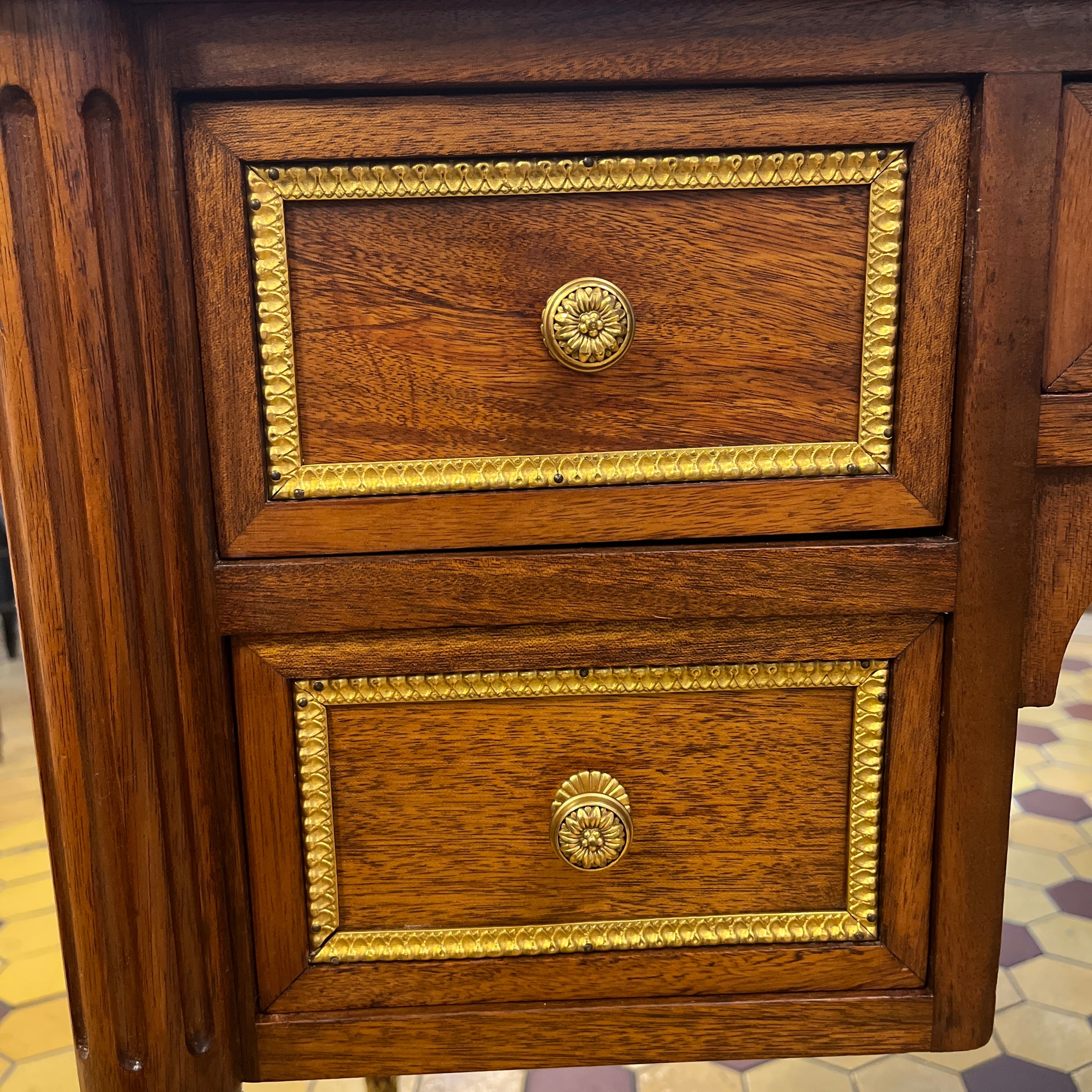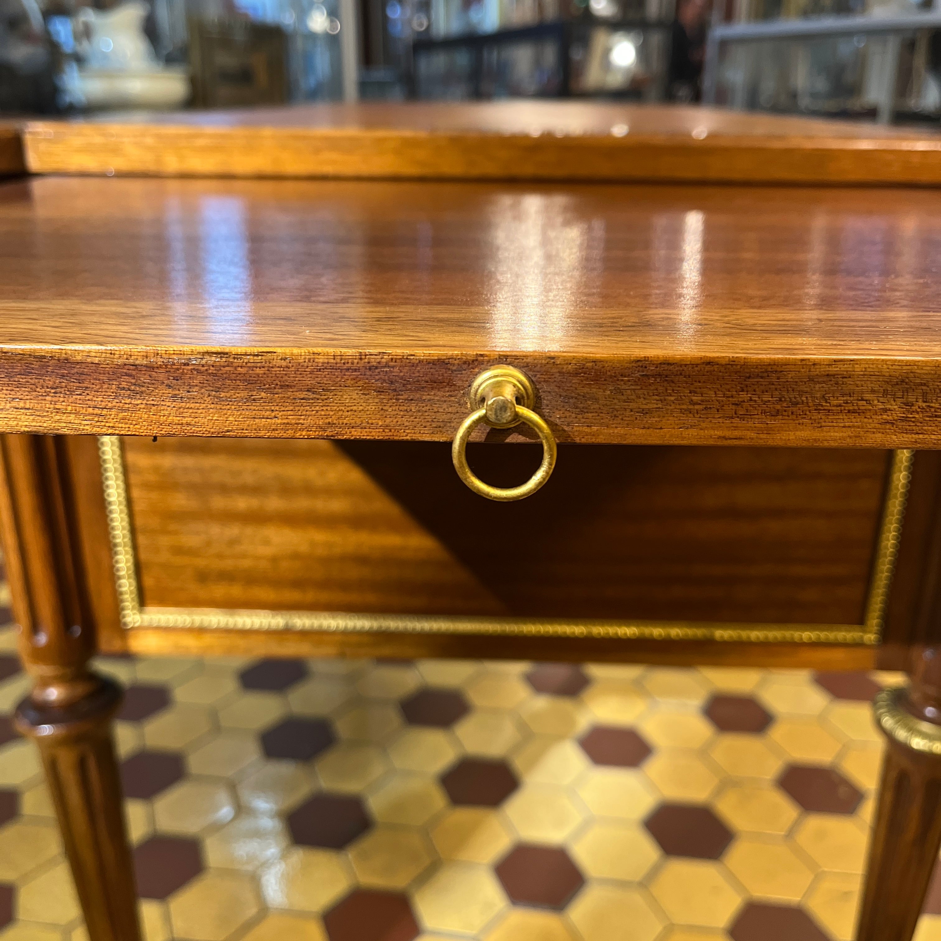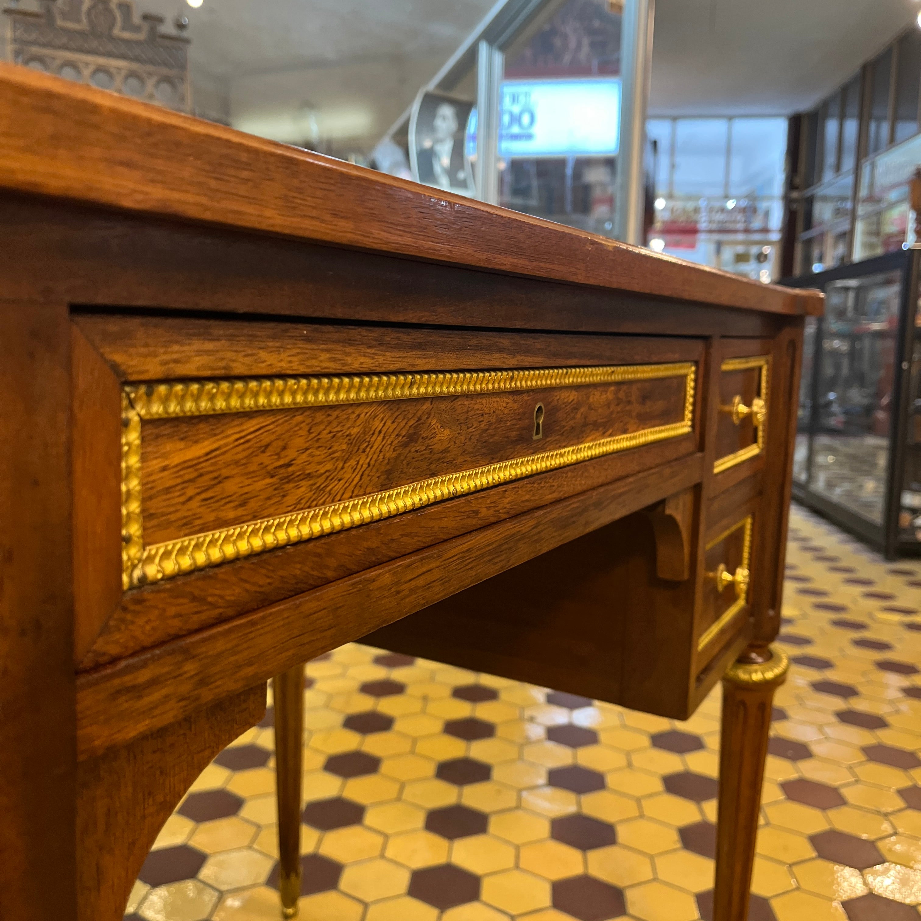 Escritorio francés Luis XVI extensible bronces y cuero ruleteado