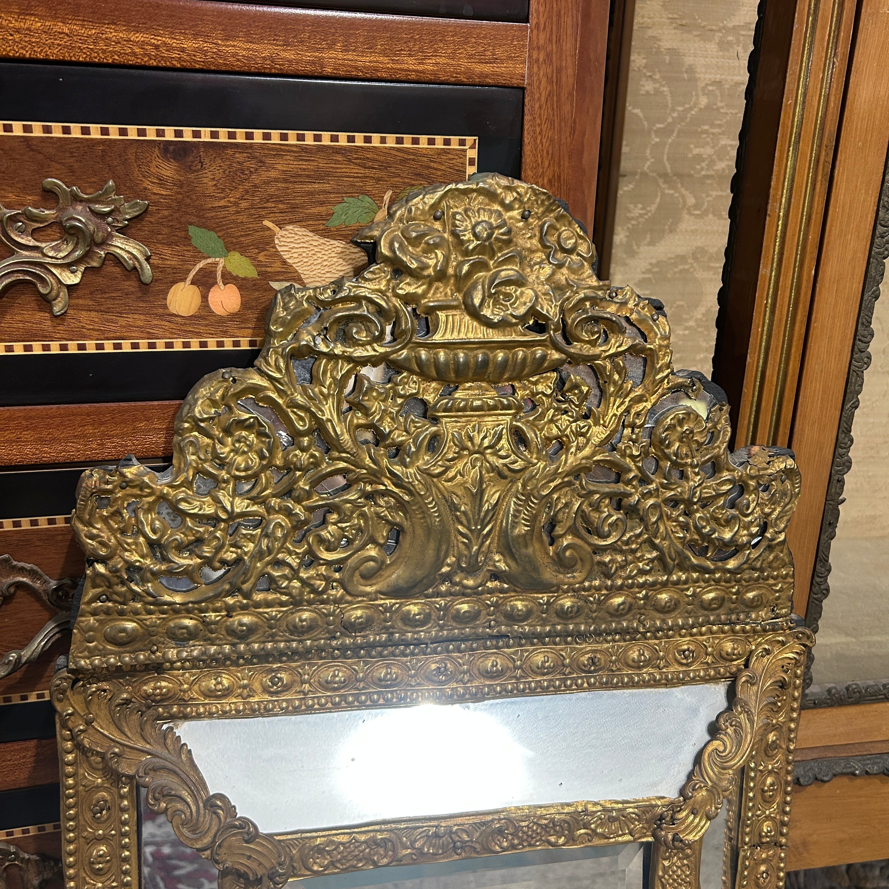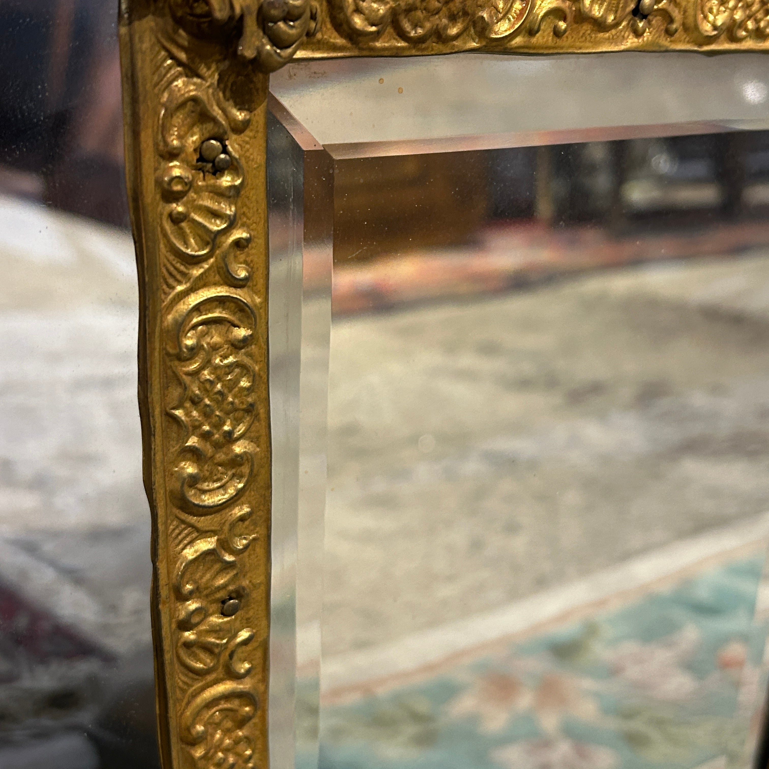 Espejo estilo Luis XIV Latón repujado y doble bisel