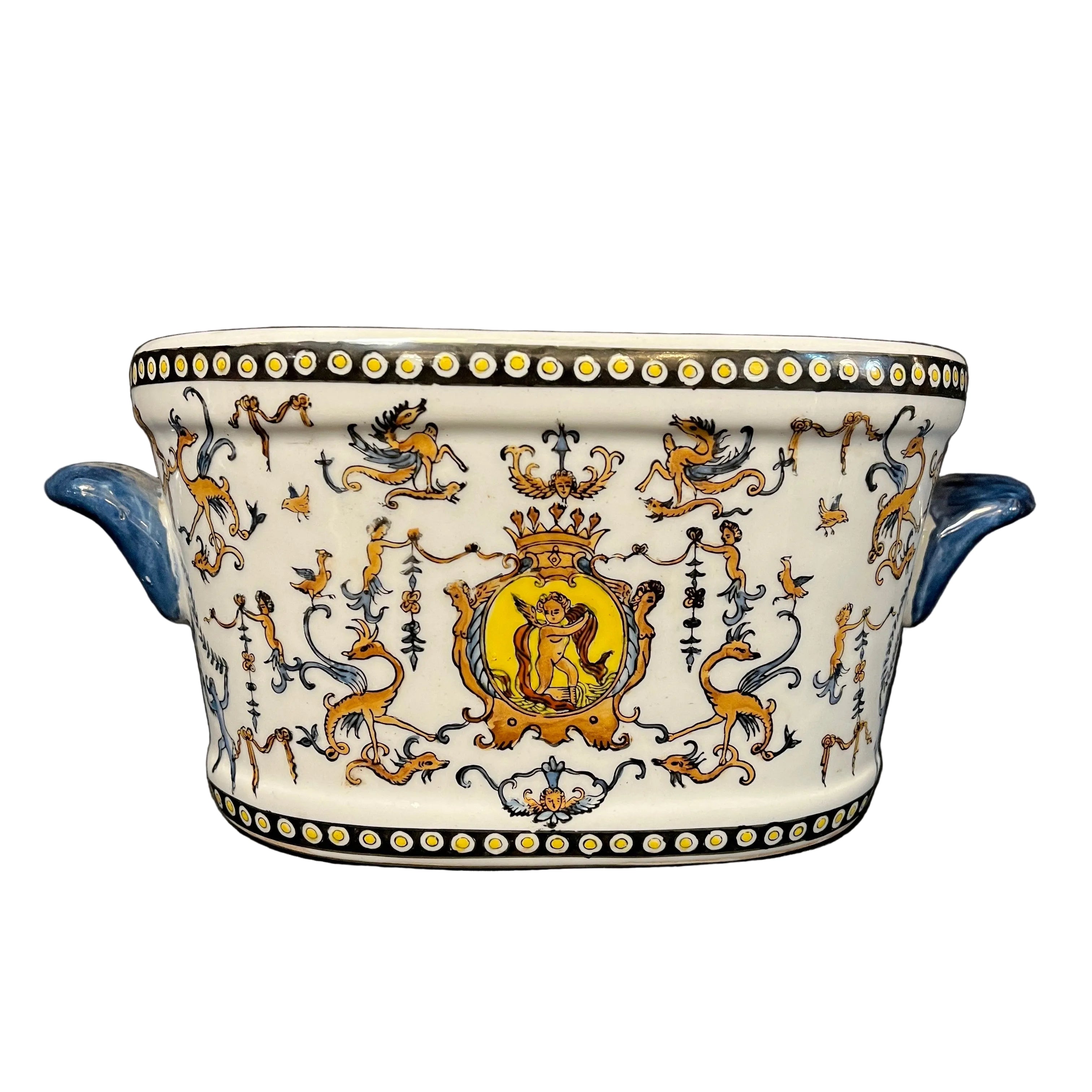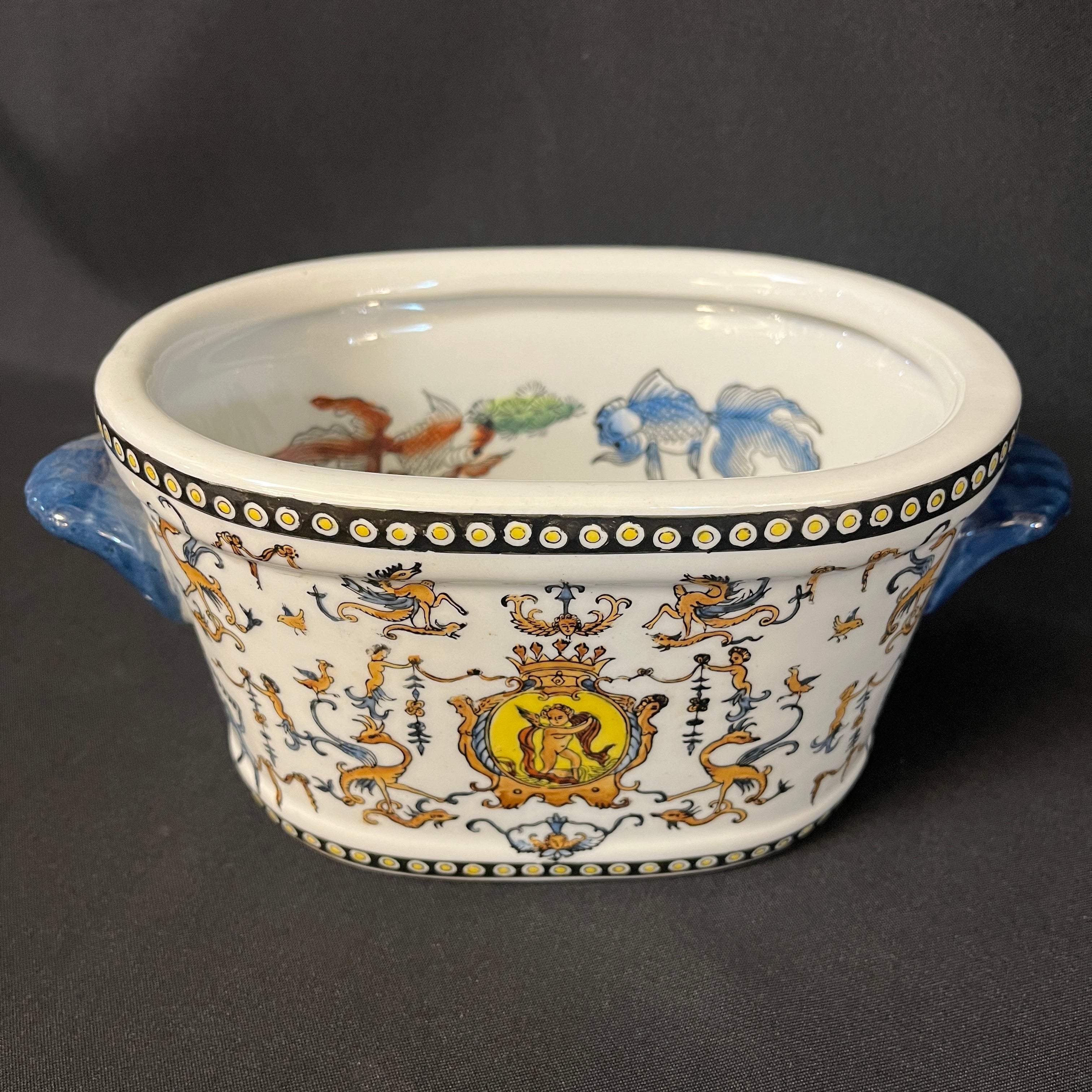 Jardinera China decorativa con motivos naturales coloridos s.XX