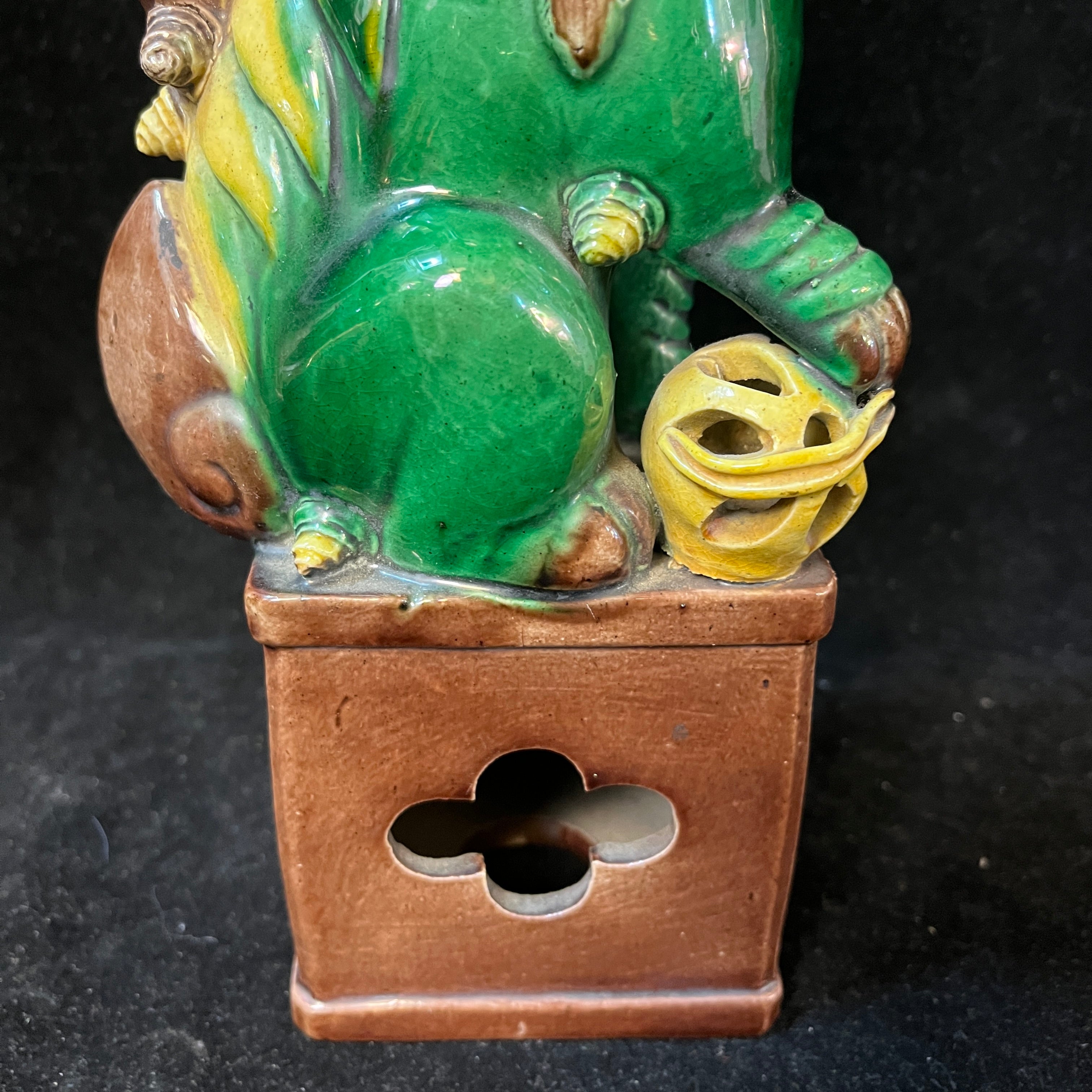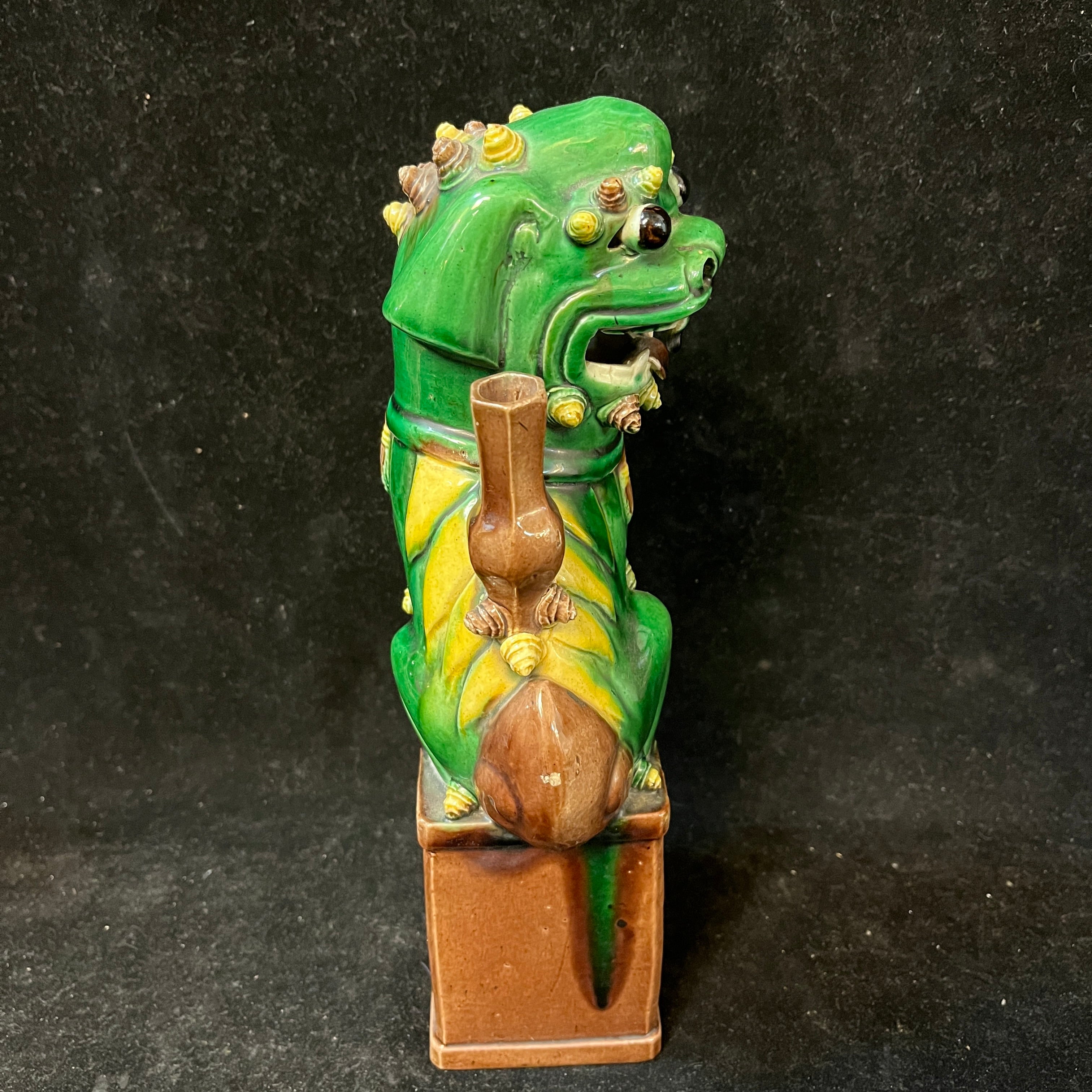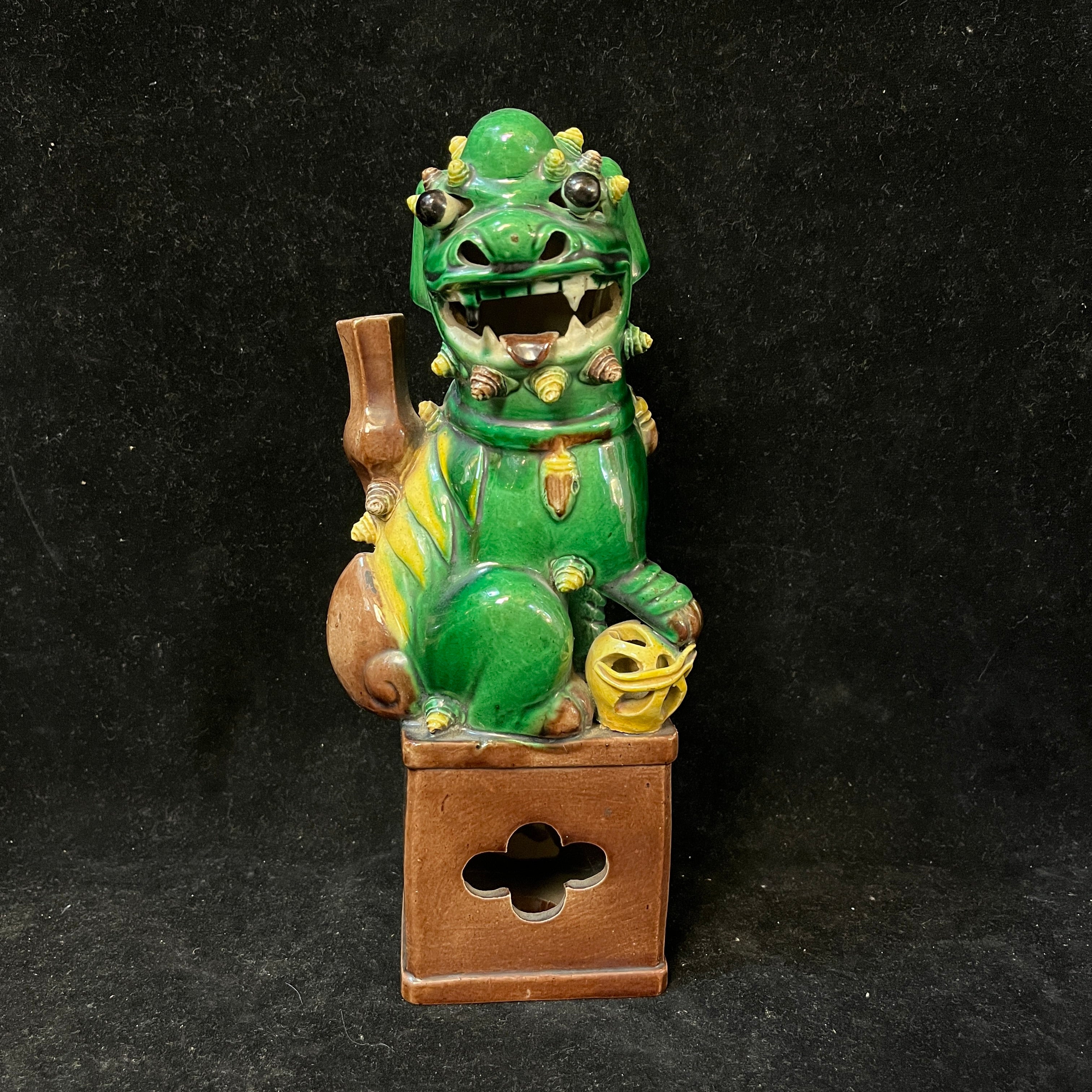 Hermosa figura mitológica china de tamaño medio de un clásico perro fu Verte, colocados habitualmente en las entradas de los hogares como símbolo de protección y para ahuyentar las malas energías.