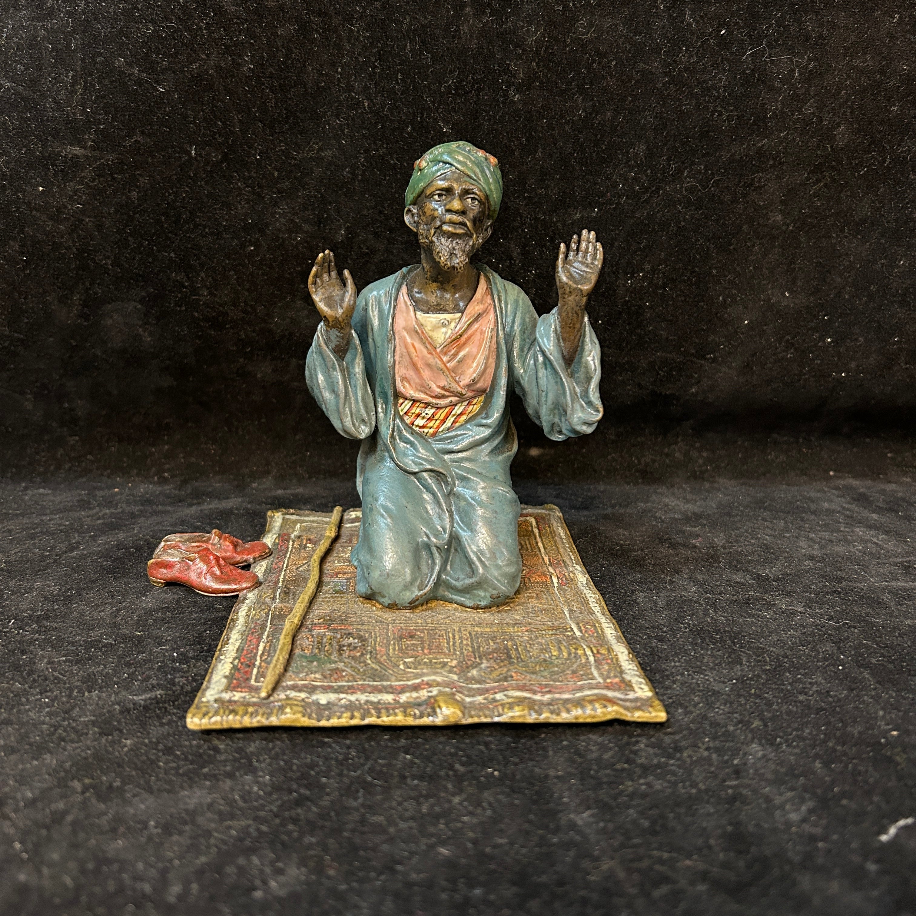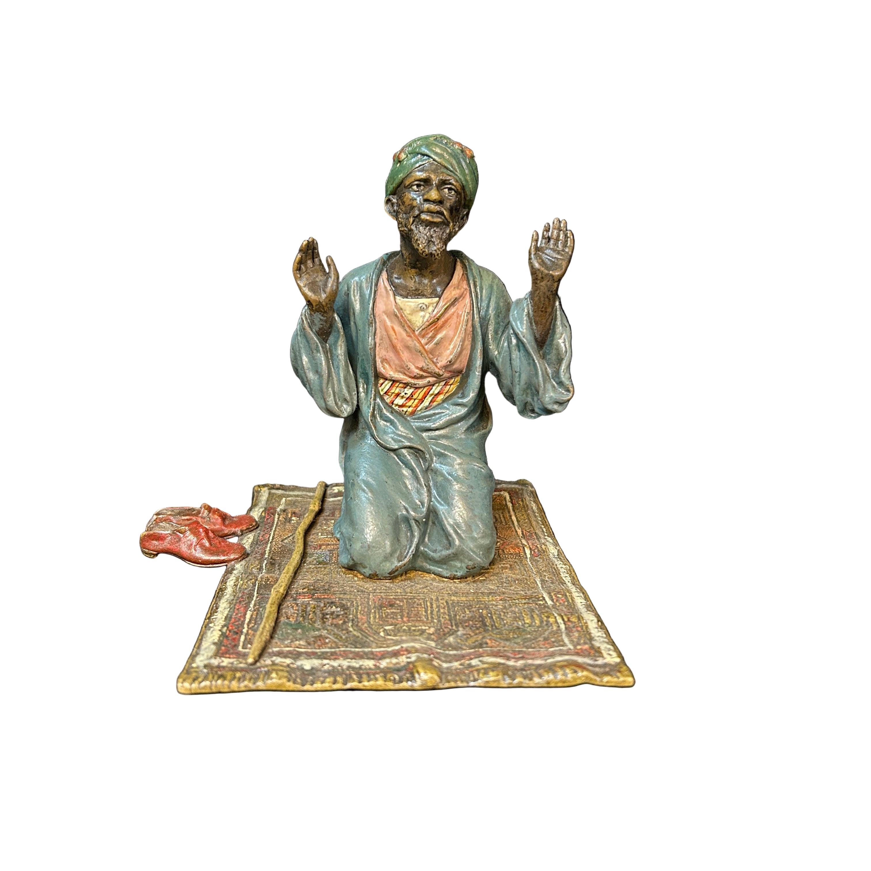 Franz Bergmann- Figura austriaca de bronce ‘Hombre orando sobre Sajjada’