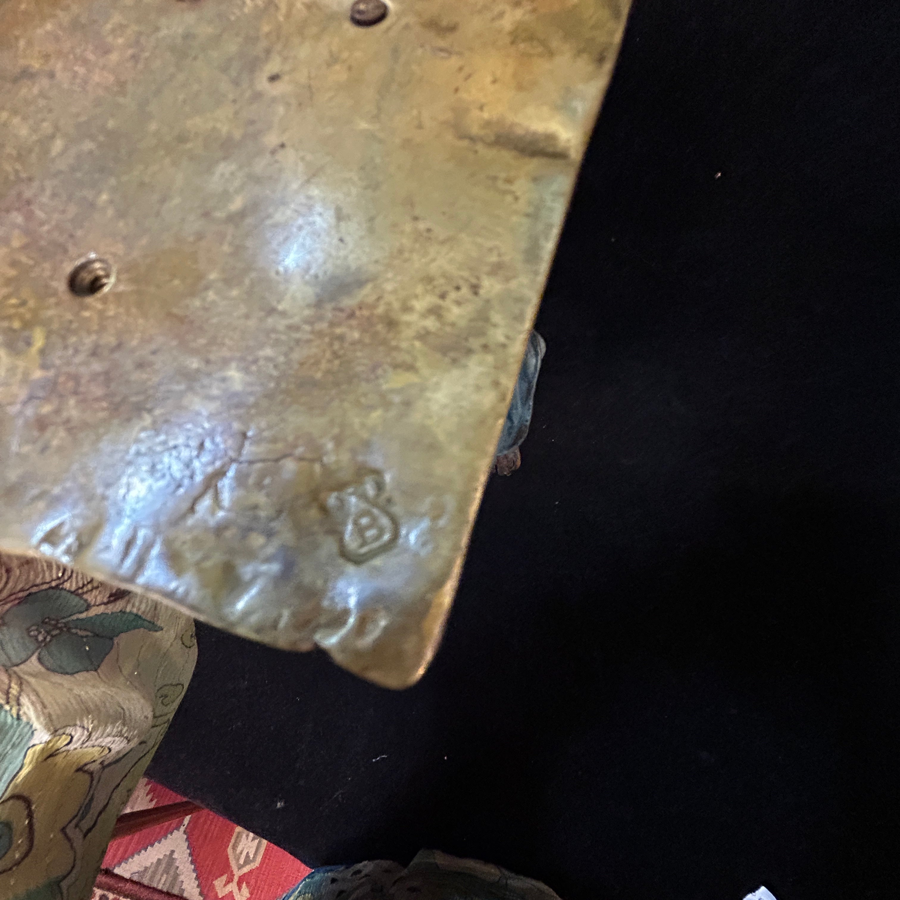 Figura de bronce del reconocido escultor austriaco Franz Bergamnn, representando a un hombre sobre su alfombra, conocida como sajjada en el mundo musulmán, orando. El hombre, que se ha sacado los zapatos y dejado su bastón de lado, está inmortalizado en un gesto de adoración, con su mirada hacia el cielo. Es una figura que va en línea con las temáticas reconocibles del artista, que puso su foco en escenas y gestos de oriente medio y África. En su parte inferior se puede ver un sello o marca de fundición con la letra B, sello distintivo de las creaciones en bronce de Bergmann.