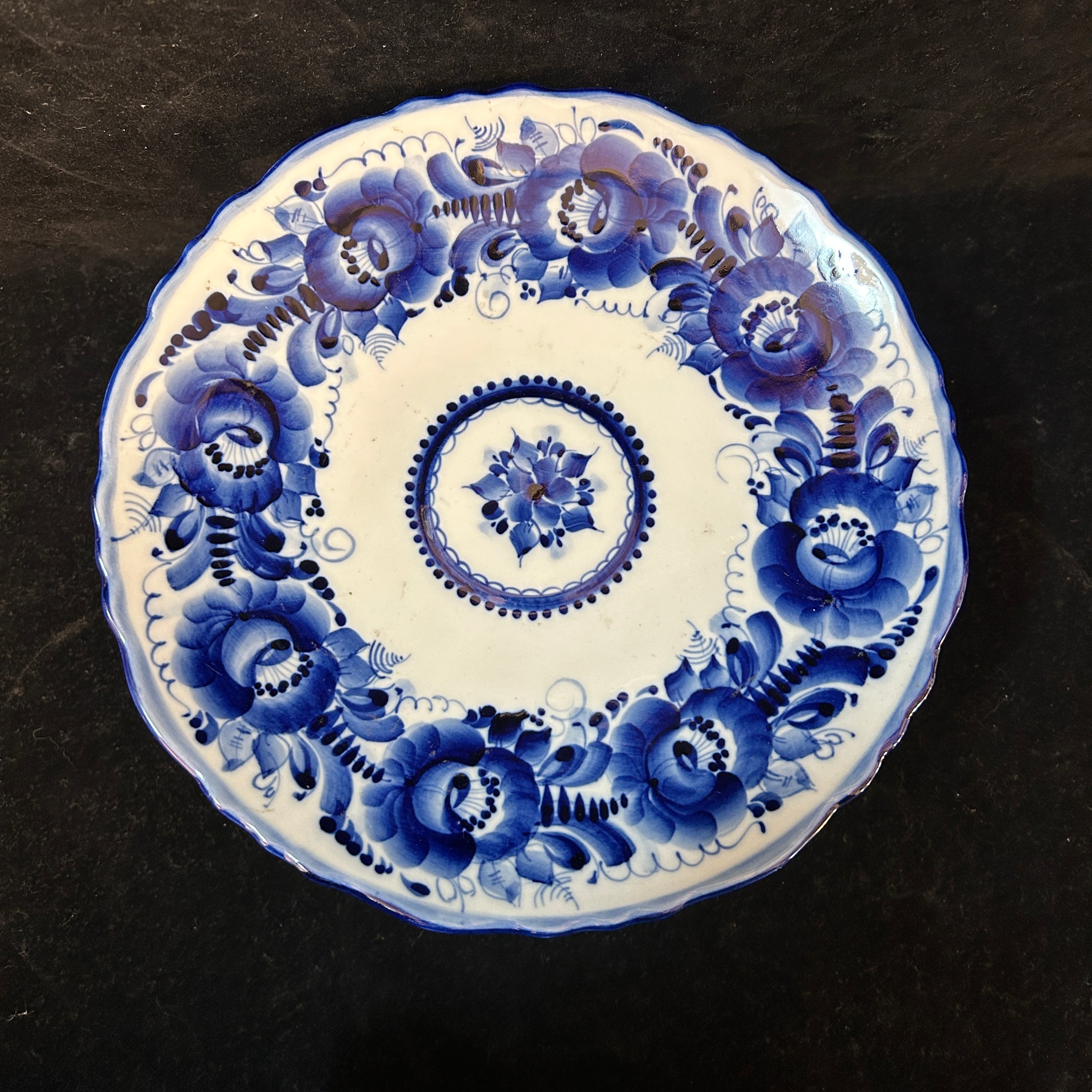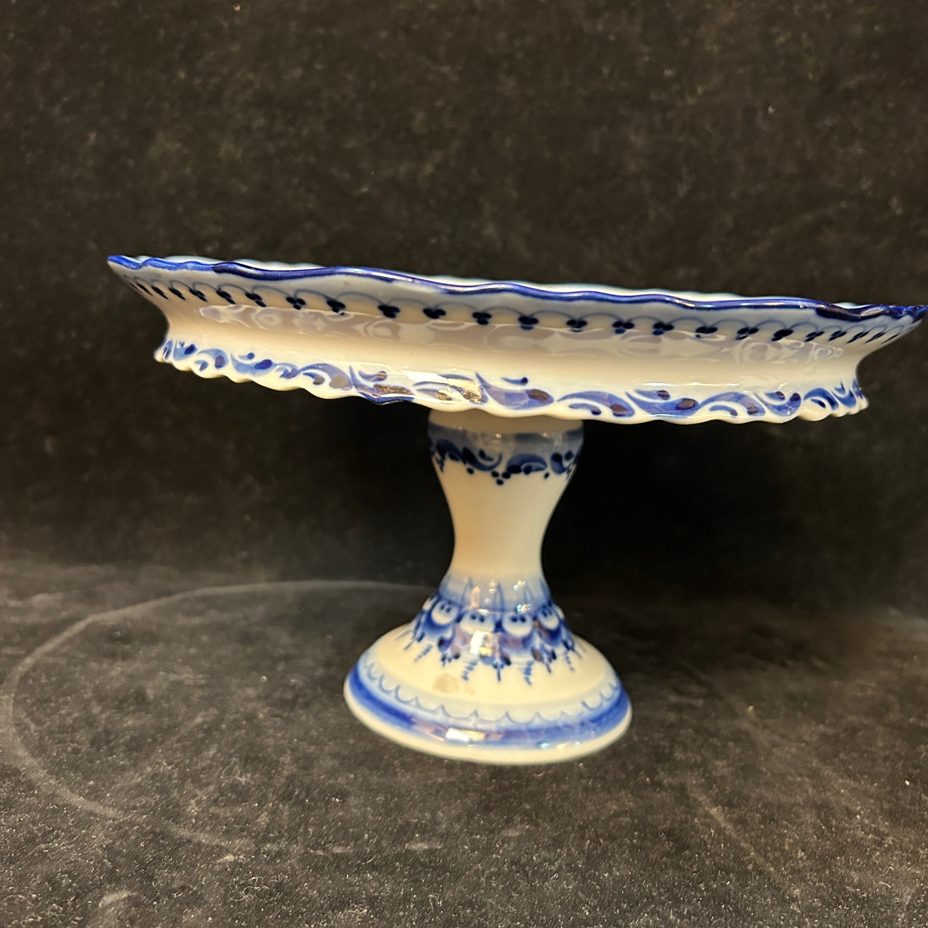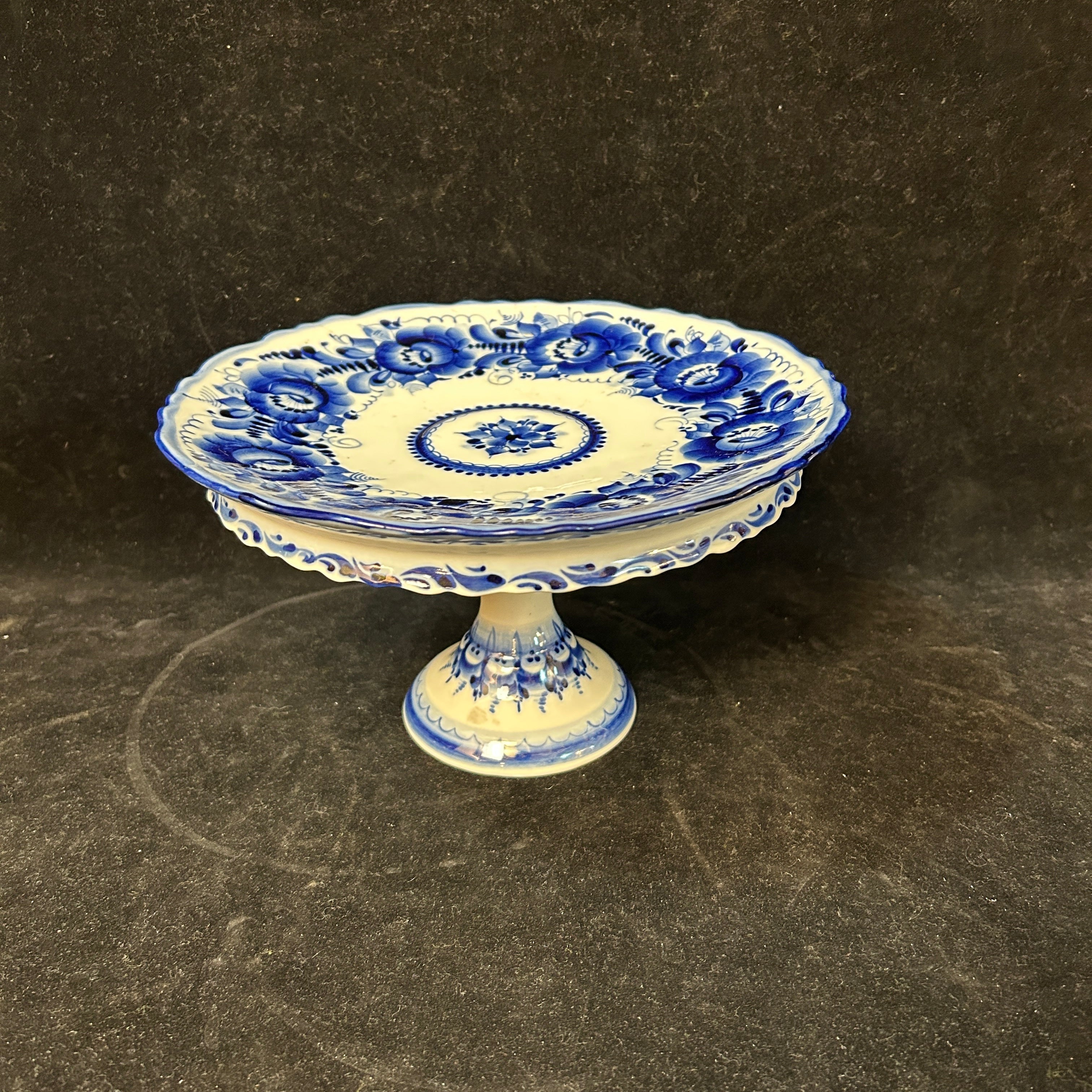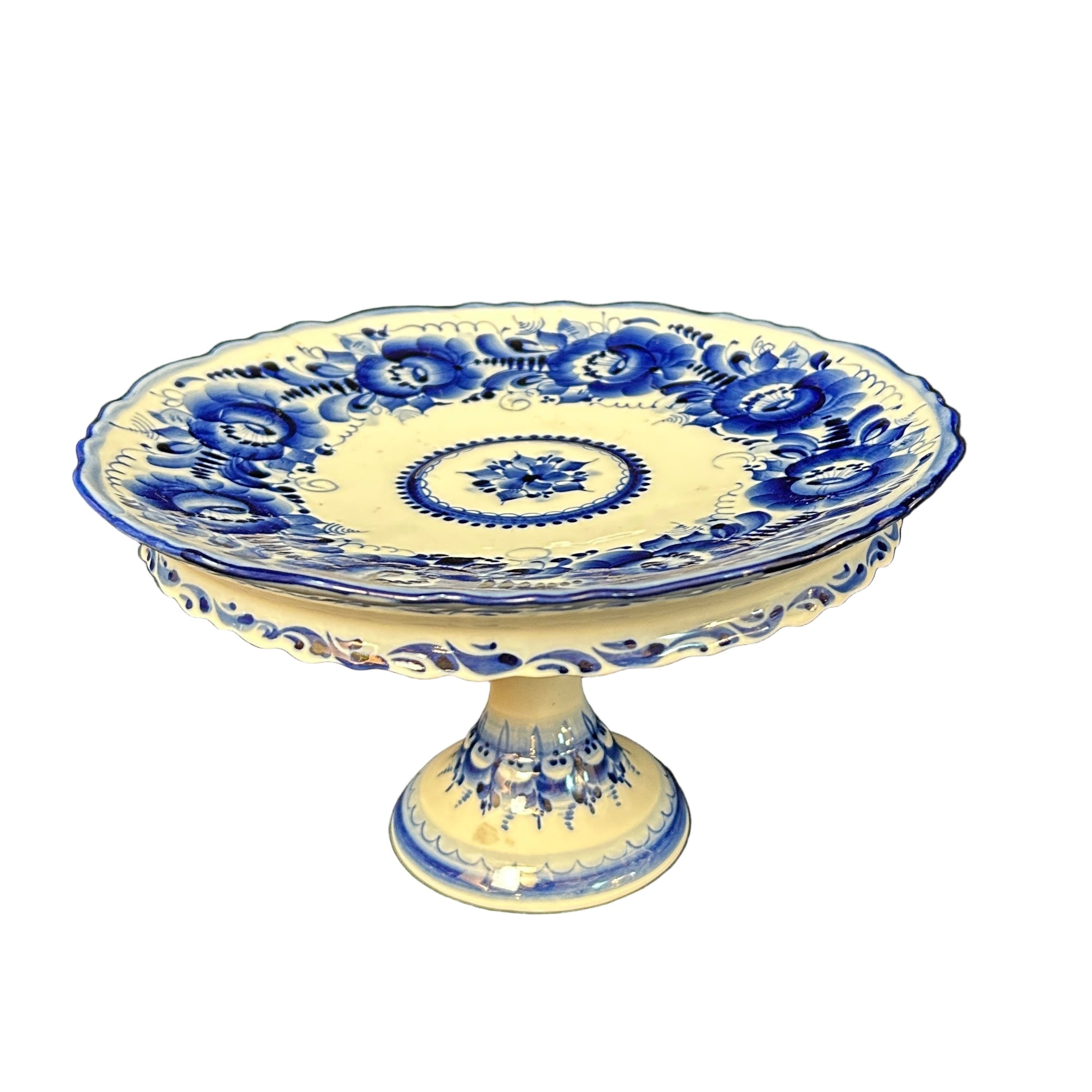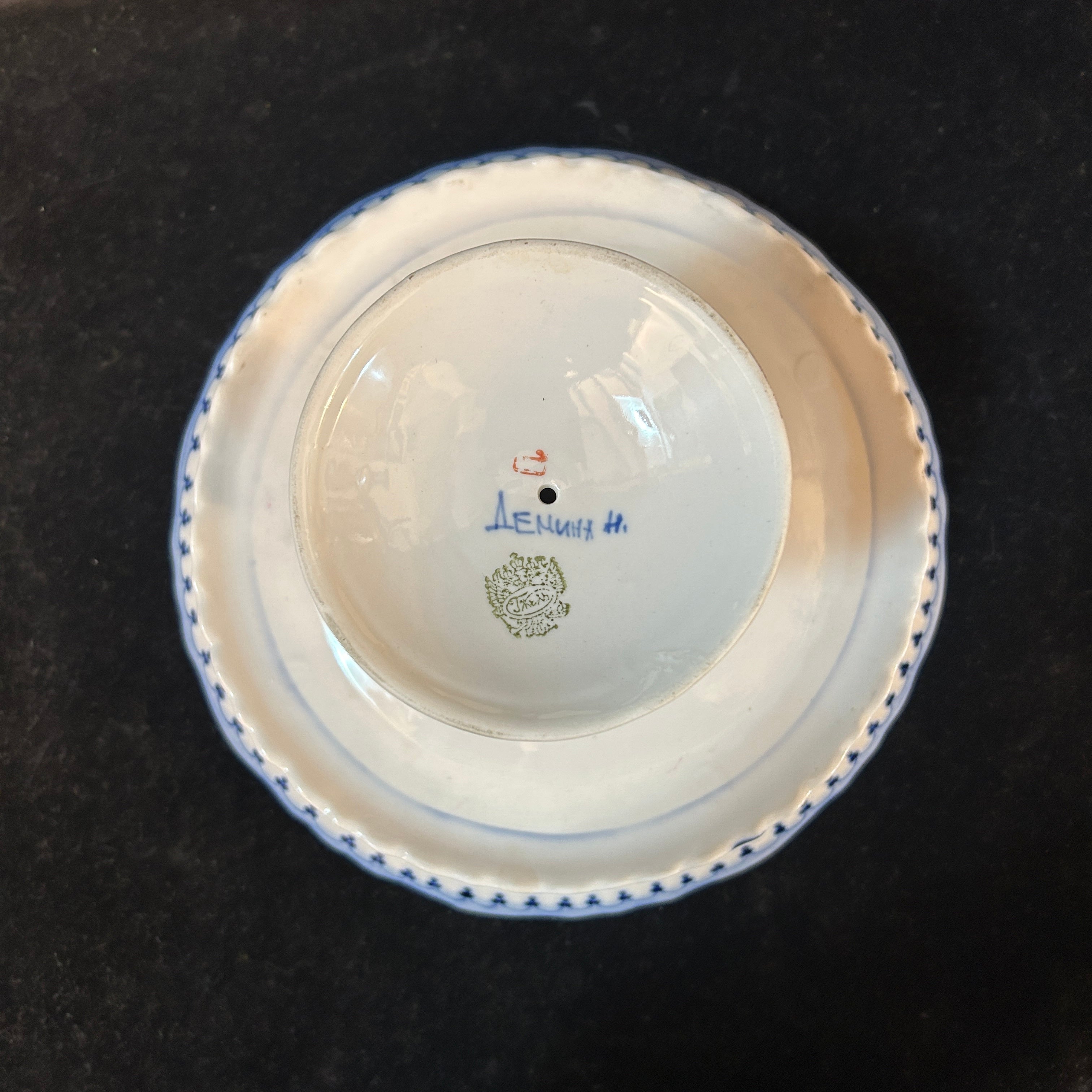 Maravillosa fuente rusa de porcelana, especial para utilizar con bocados o incluso un pastel. La fuente fue pintada a mano y es de la reconocida marca rusa Freab Porcelain de la localidad de Lomonosov. Circa mediados siglo XX