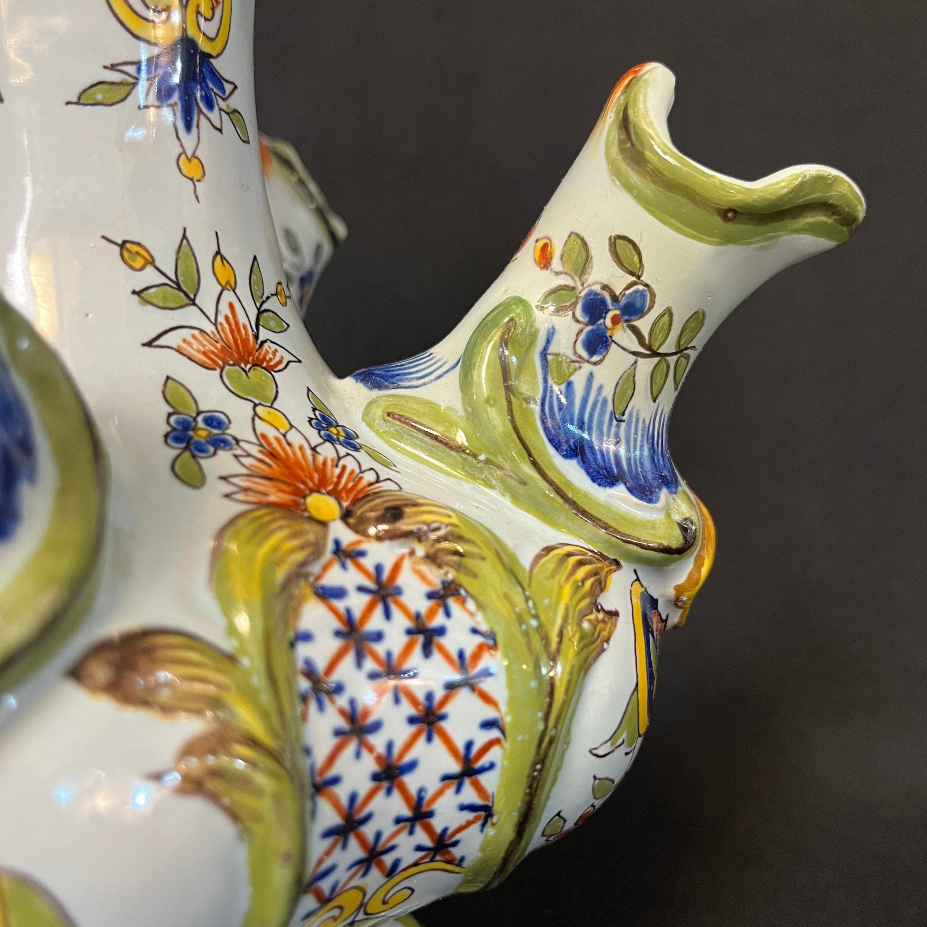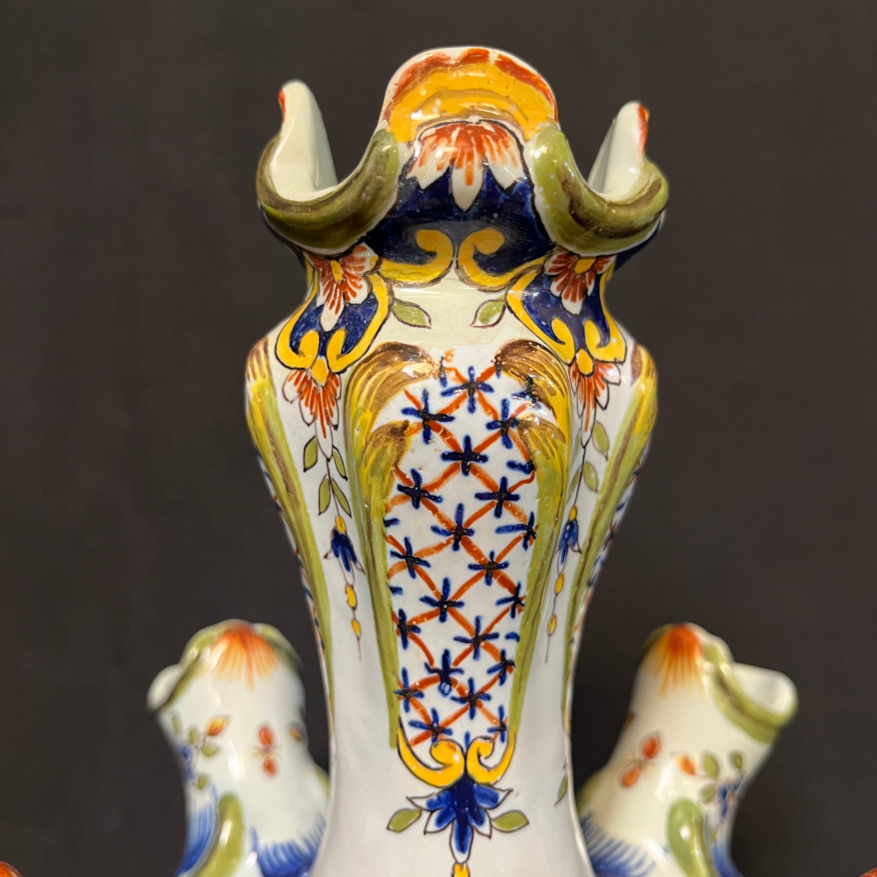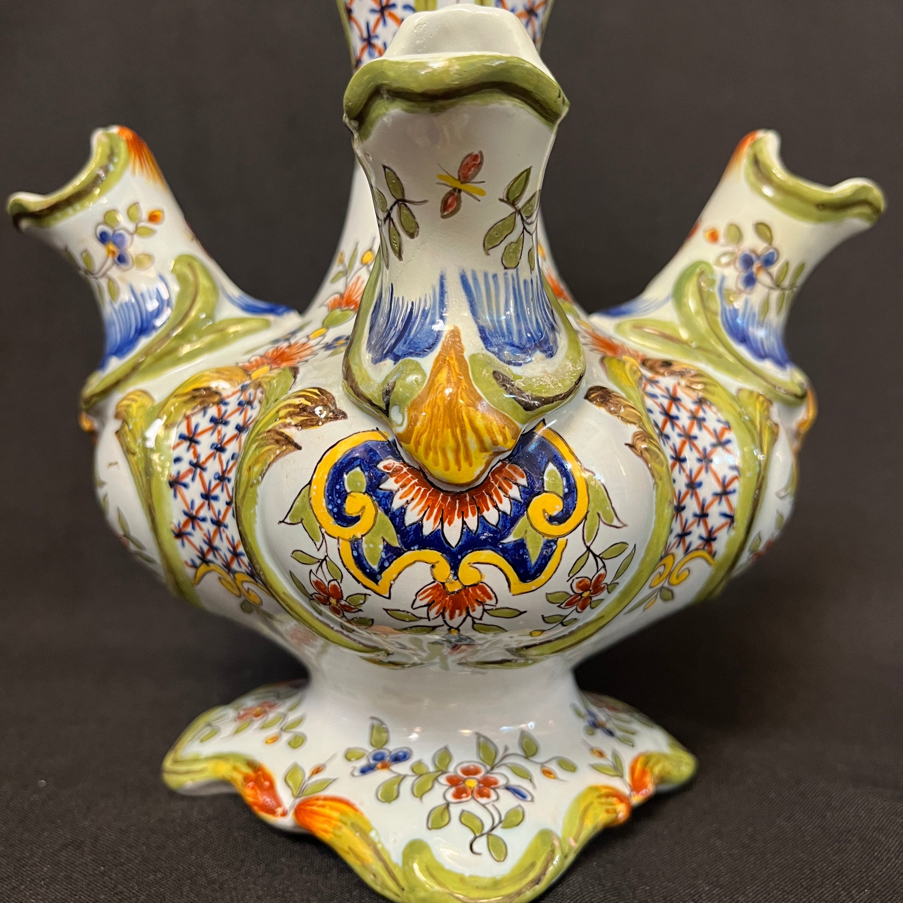 Esta fascinante pieza es un florero de porcelana o tulipero de boquillas múltiples, pensada originalmente para poner tulipanes de manera individual, convirtiéndose en un elemento muy popular en el siglo XVII en Francia.