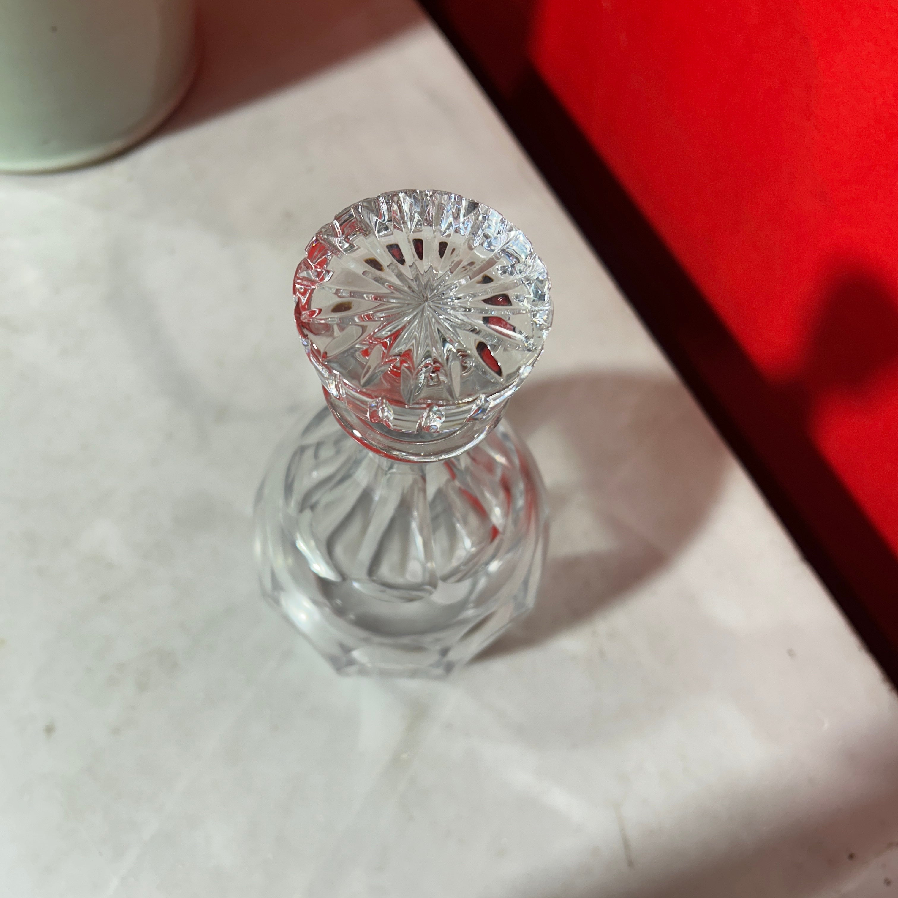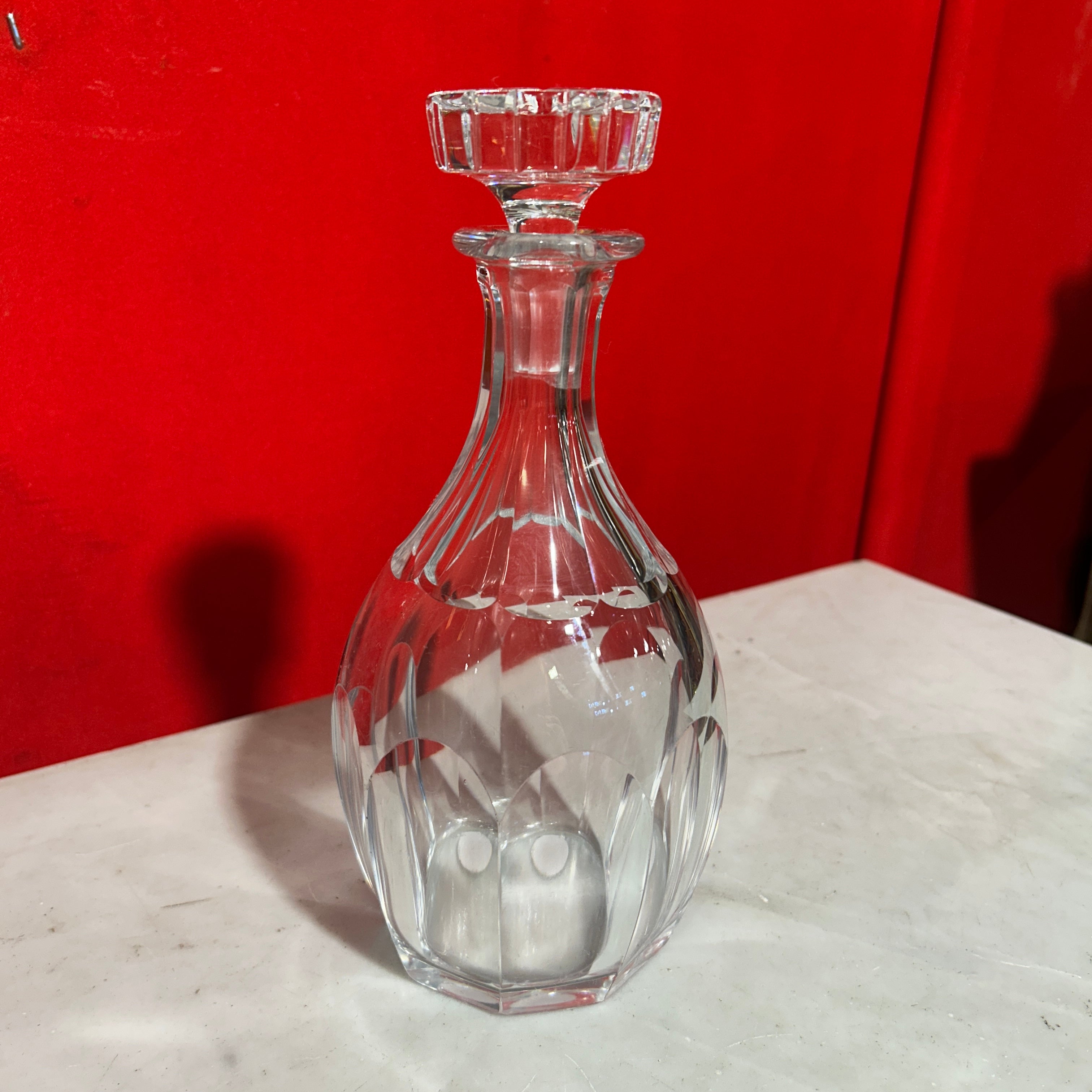 Bonita decantadora de vino francesa St Louis de cristal. Históricamente, estas jarras se han utilizado para almacenar y servir licores como whisky, brandy o coñac.