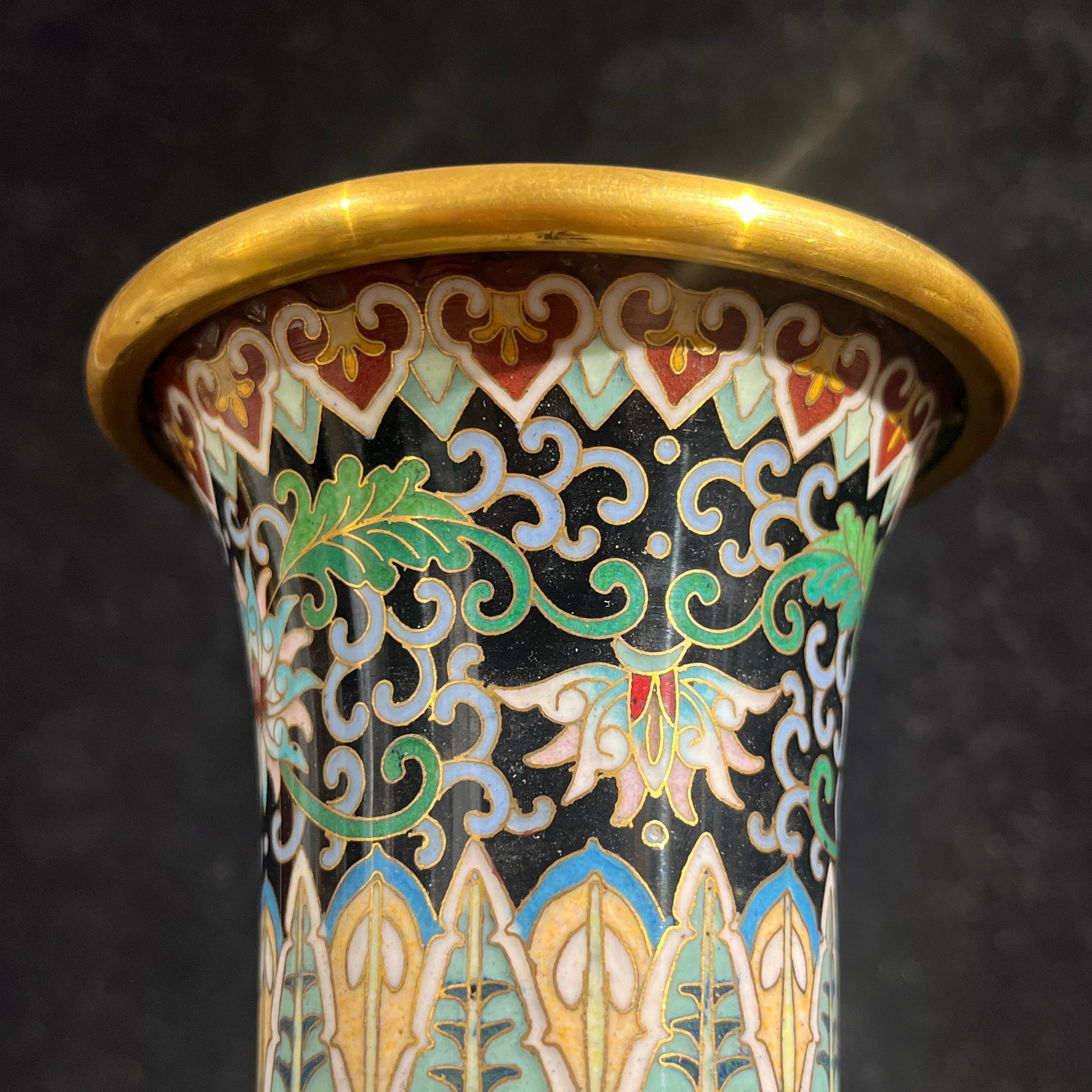 Jarrones cloissoné chinos bronce y diseño floral noire