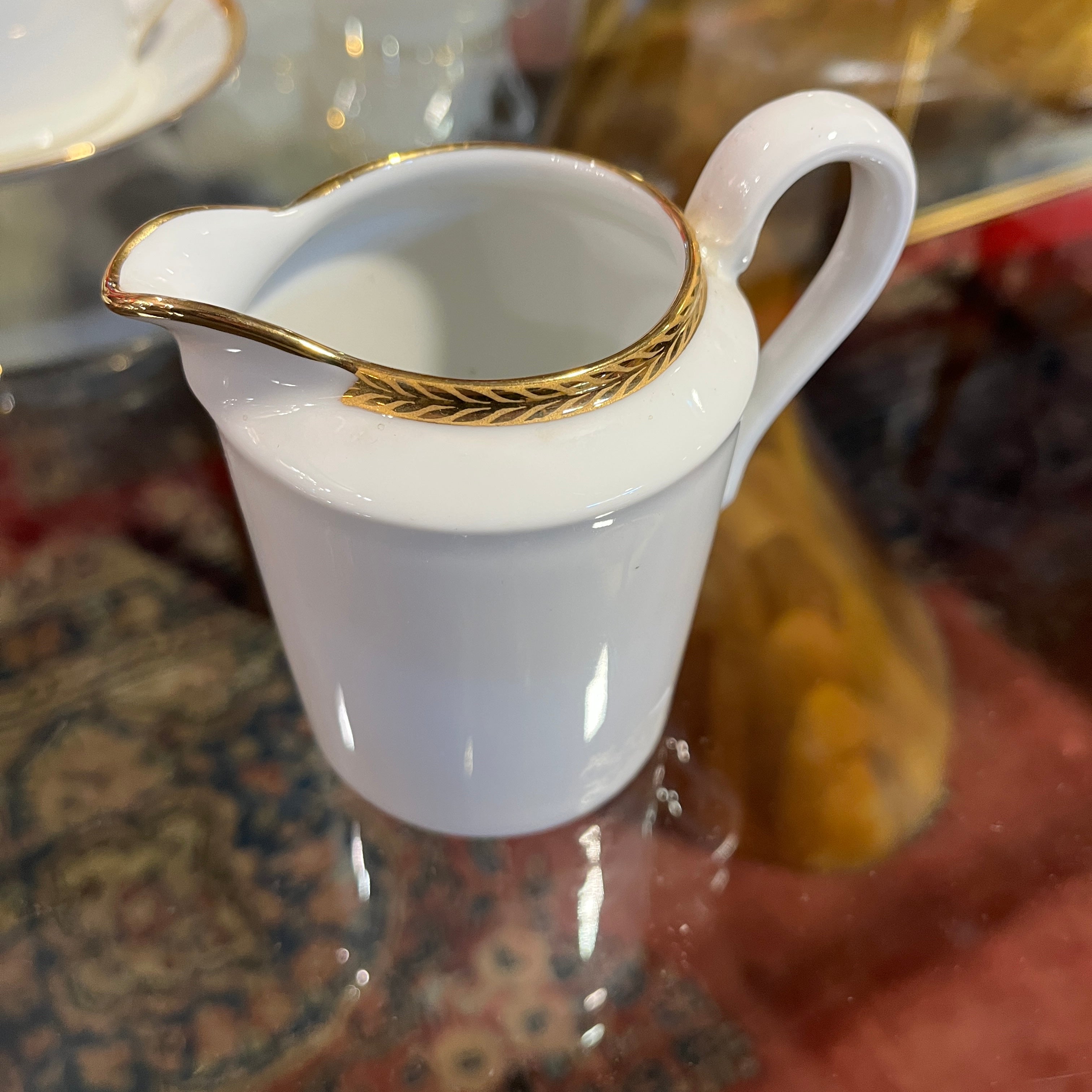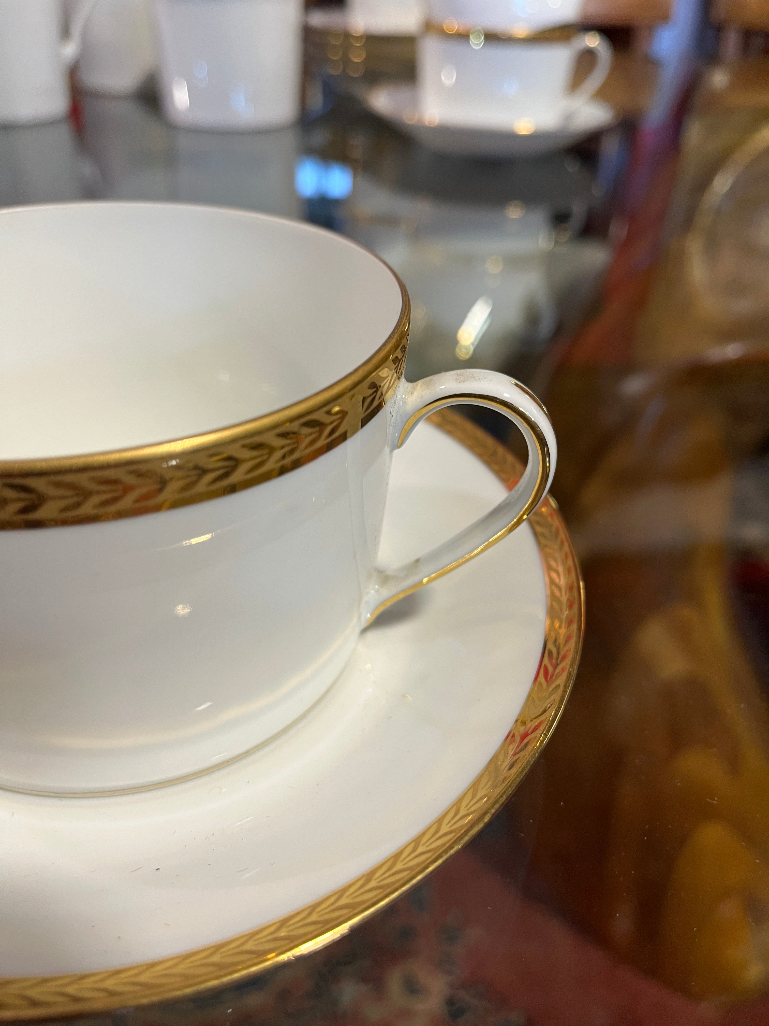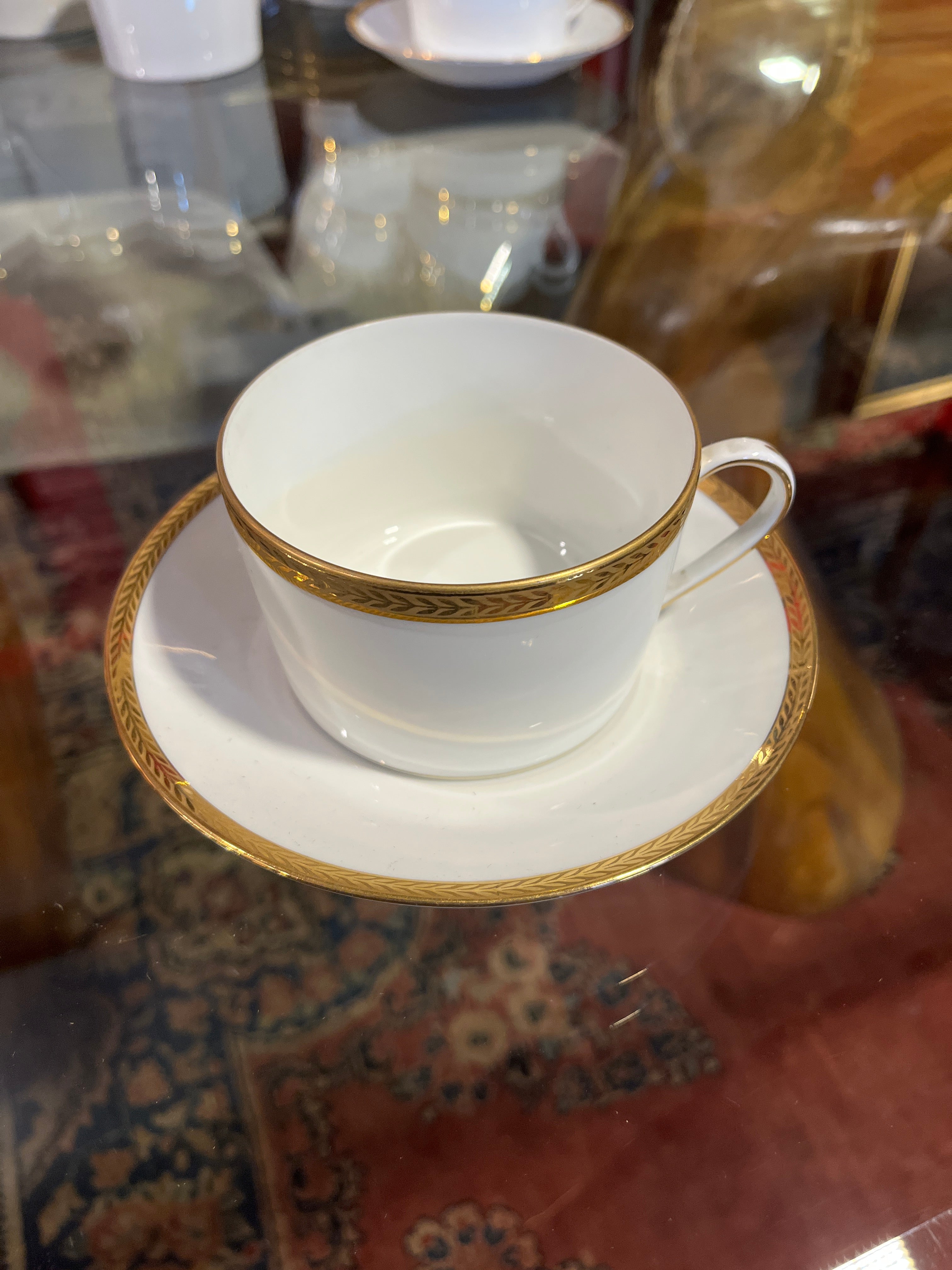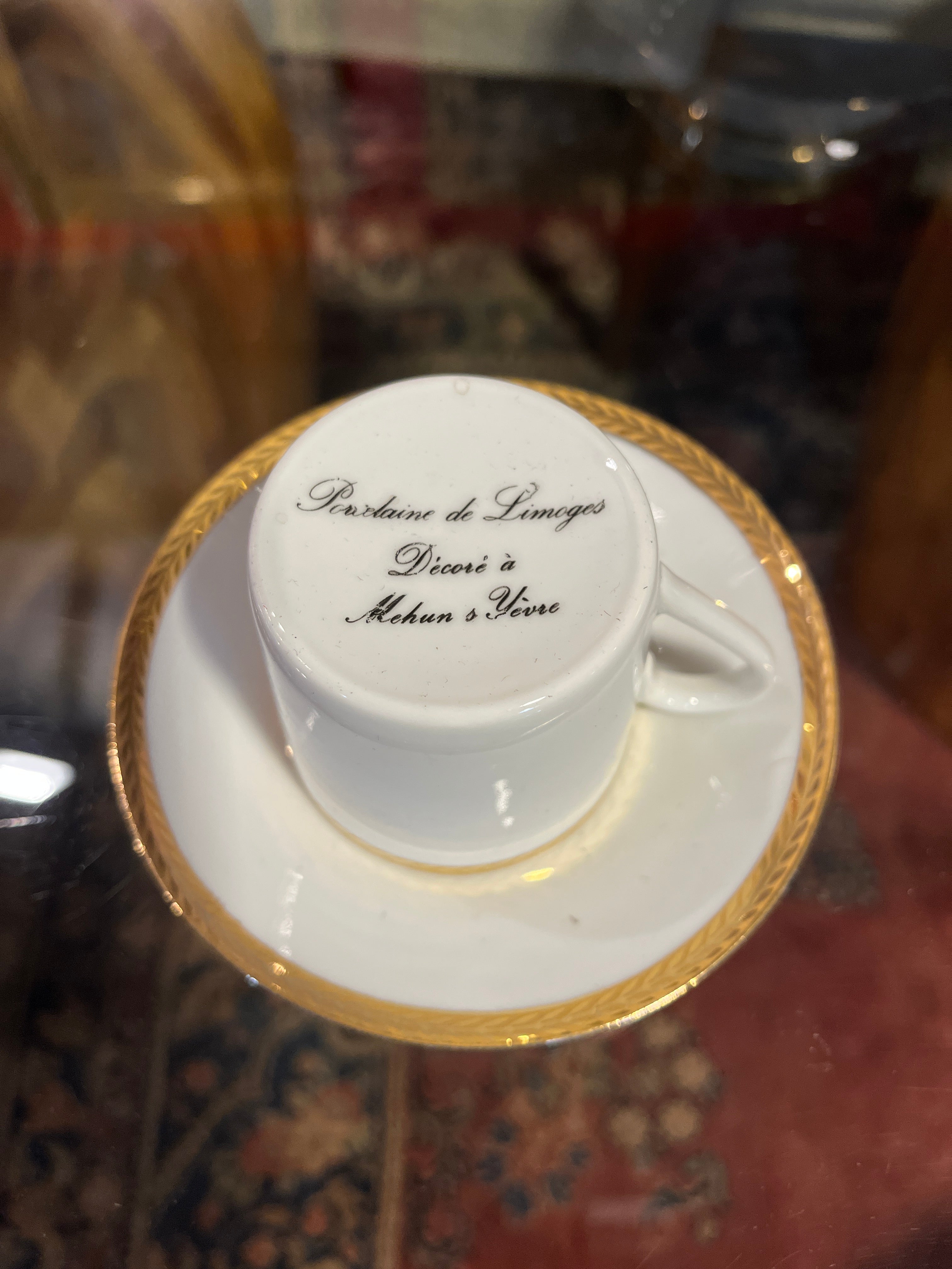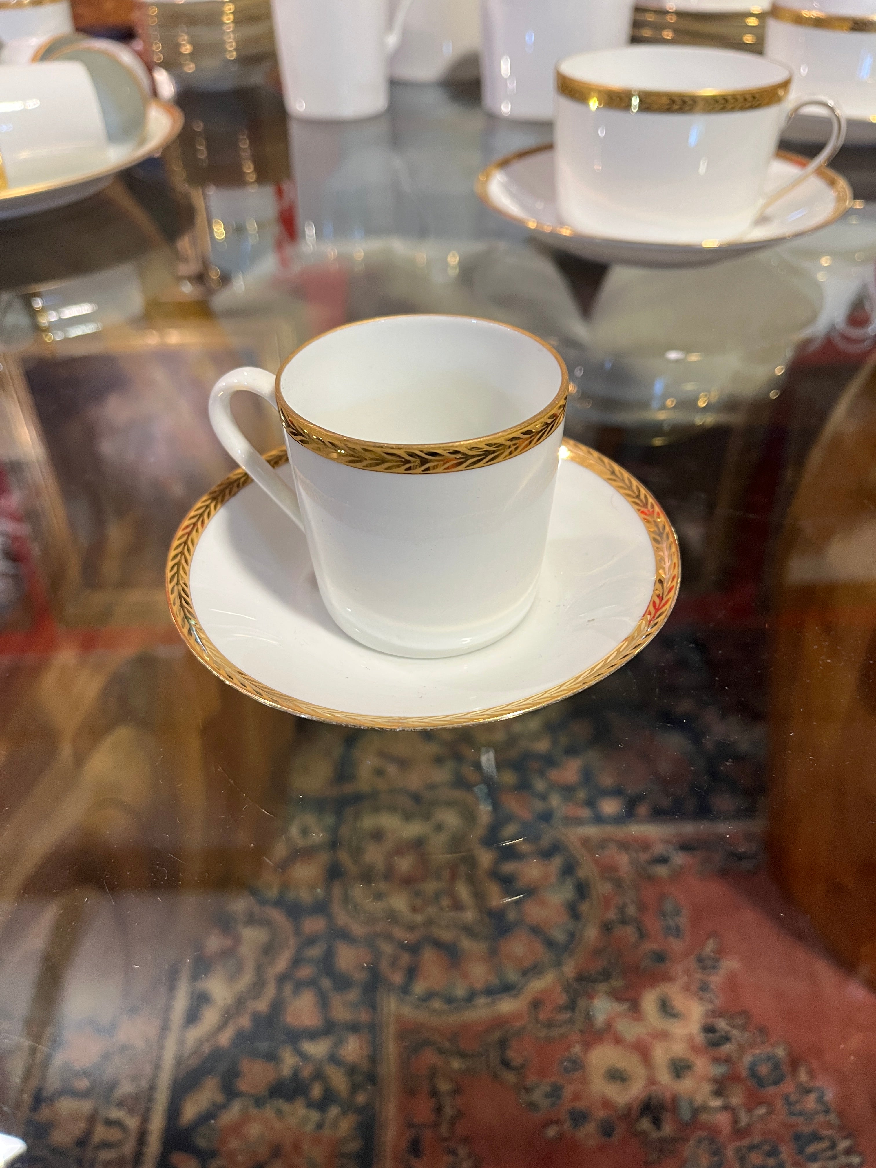 Juego de té y café 6 personas porcelana francesa Limoges borde guirnalda dorada