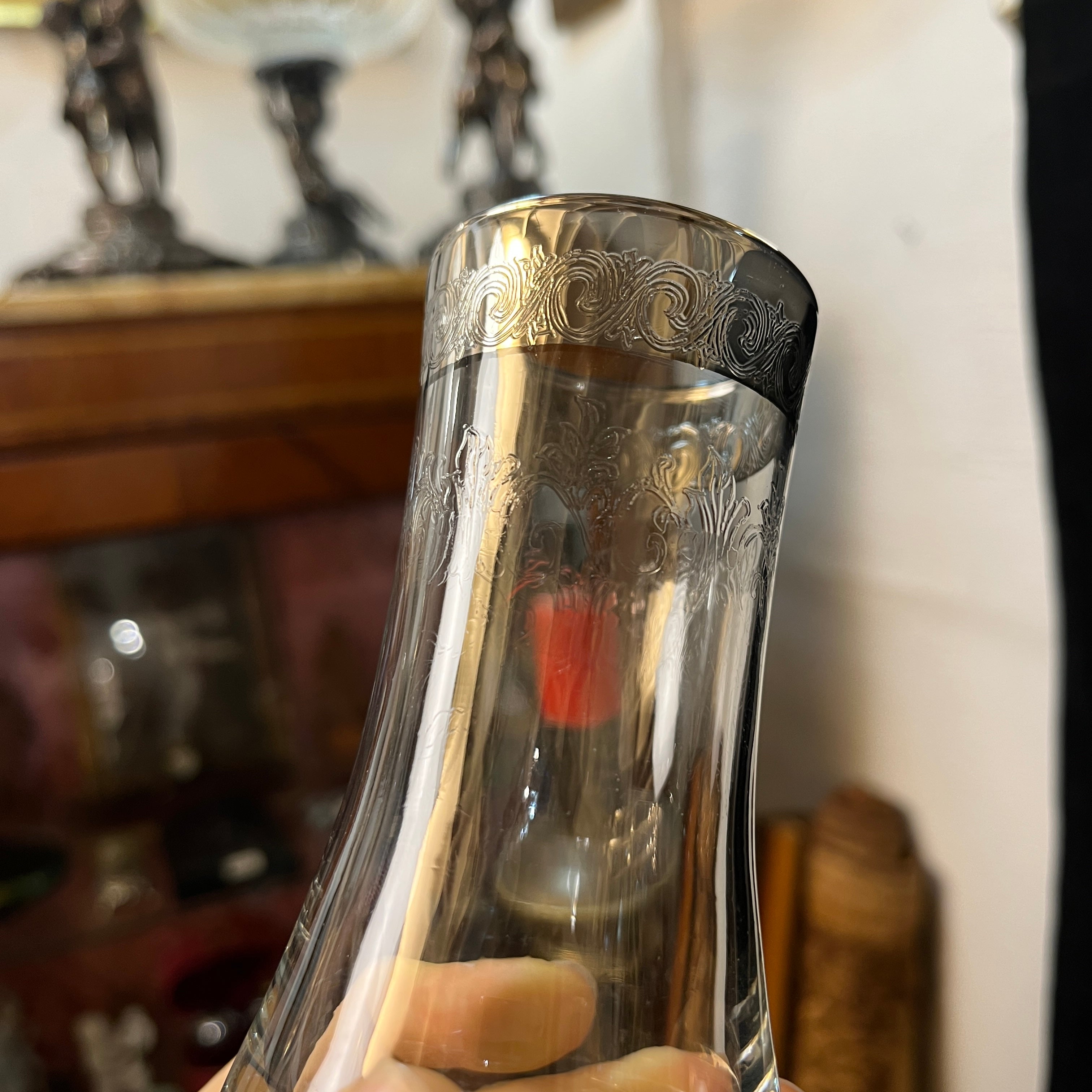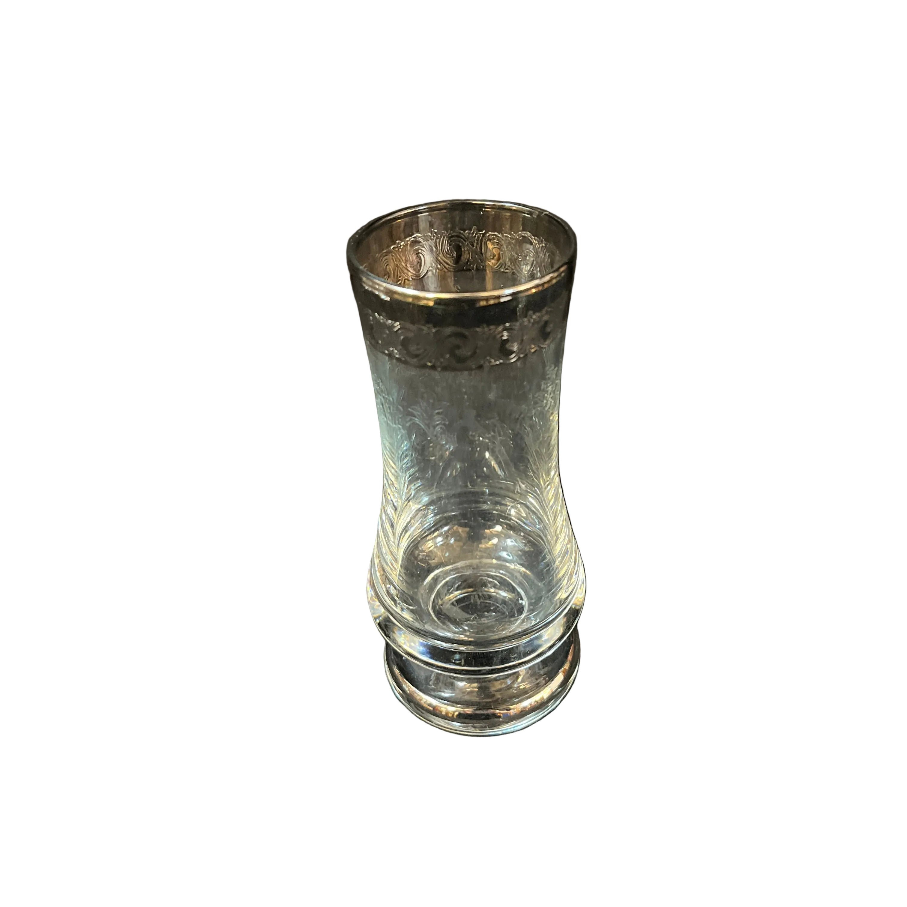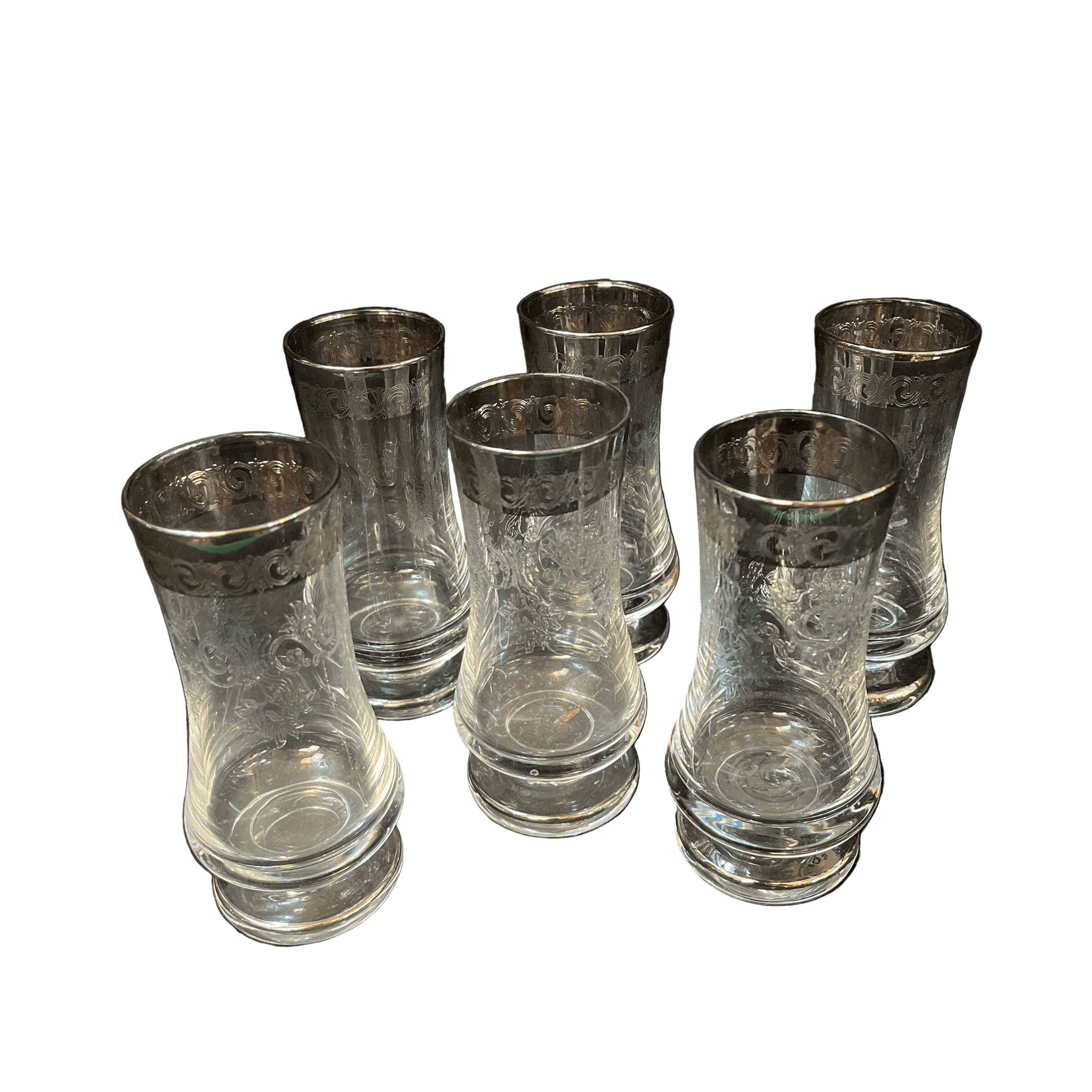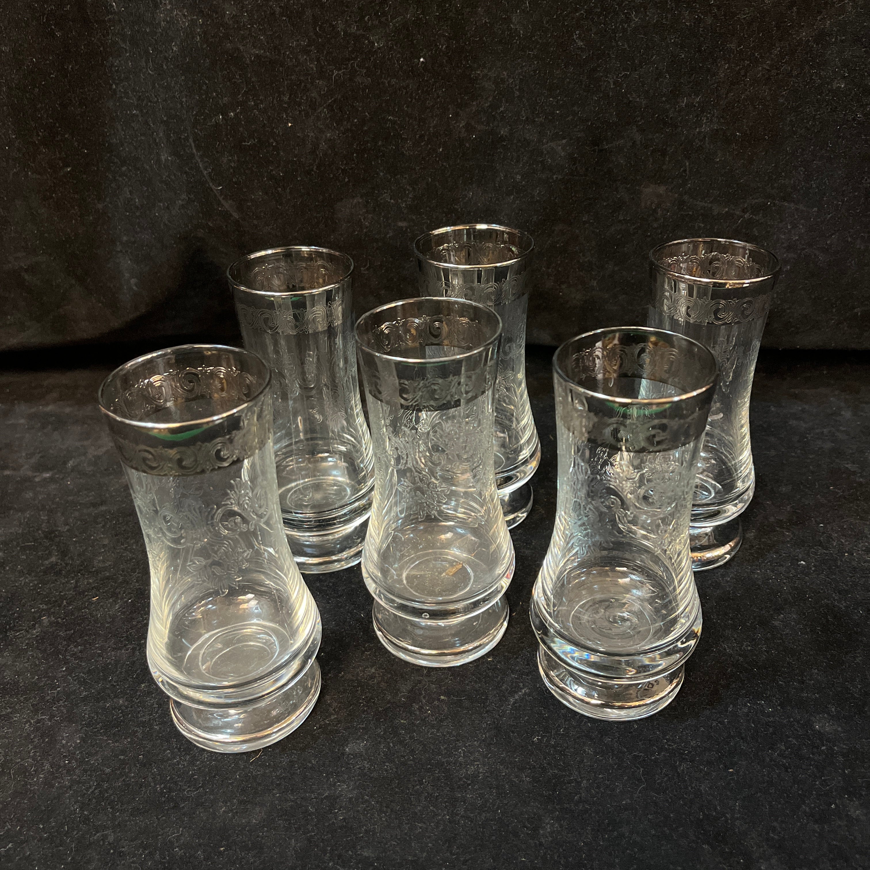 Juego de seis vasos largos de agua vidrio y plaqué decoraciones talladas