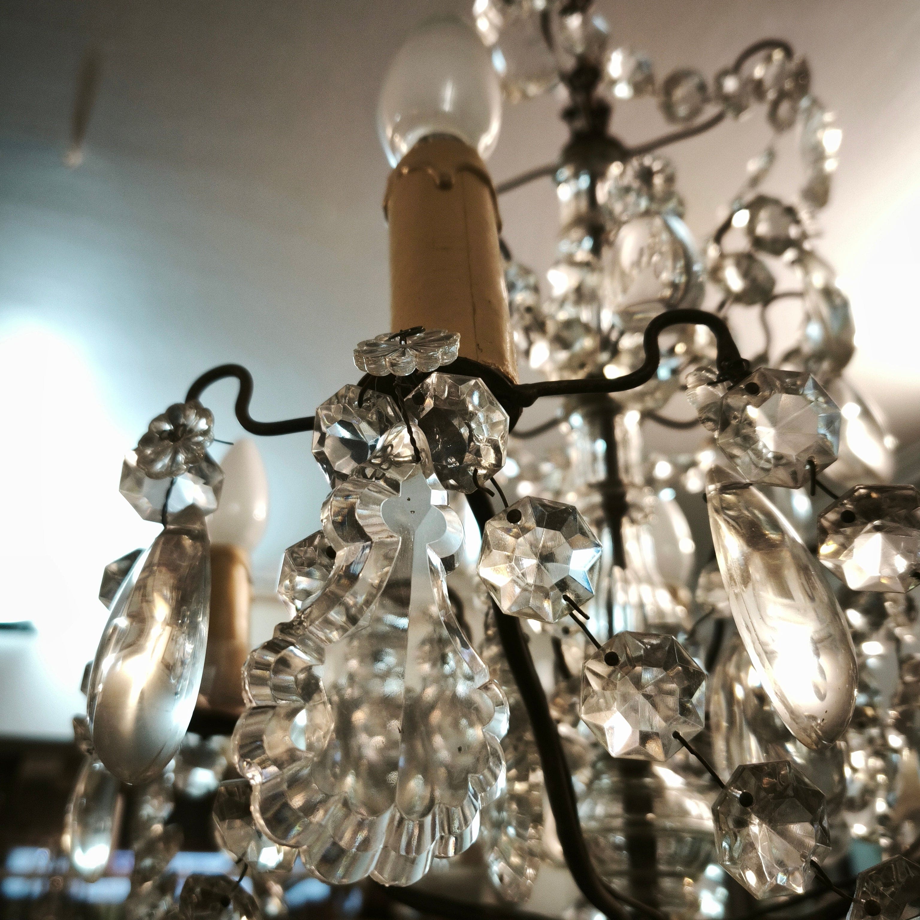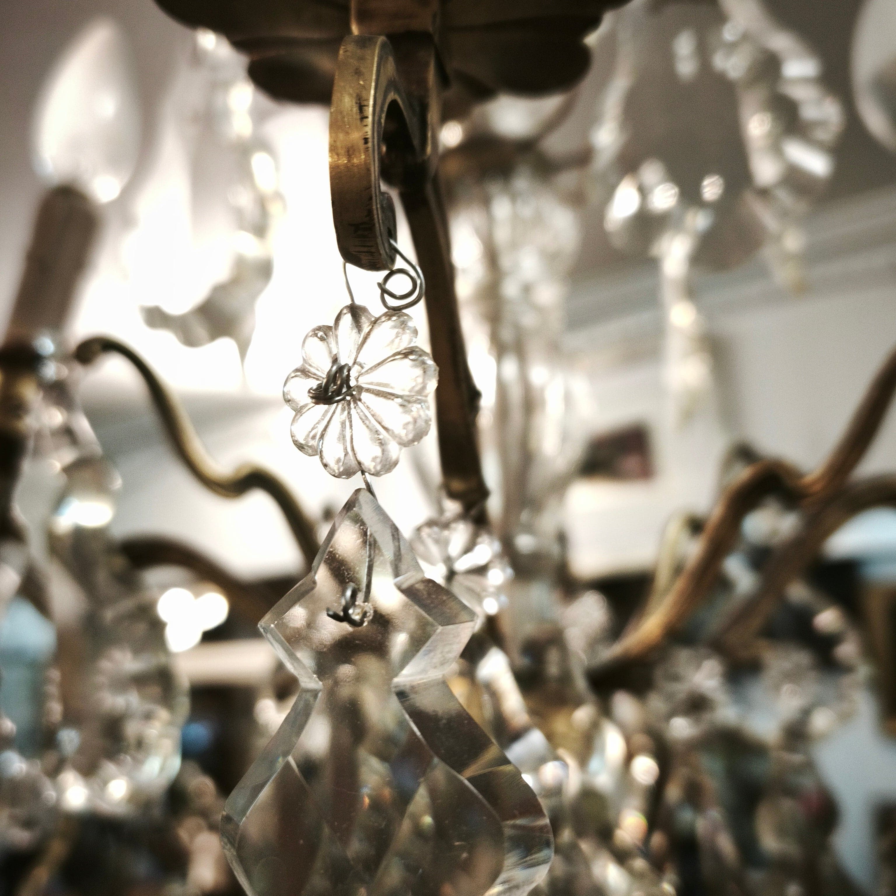 Lámpara de lágrimas cristal y bronce cuatro luces