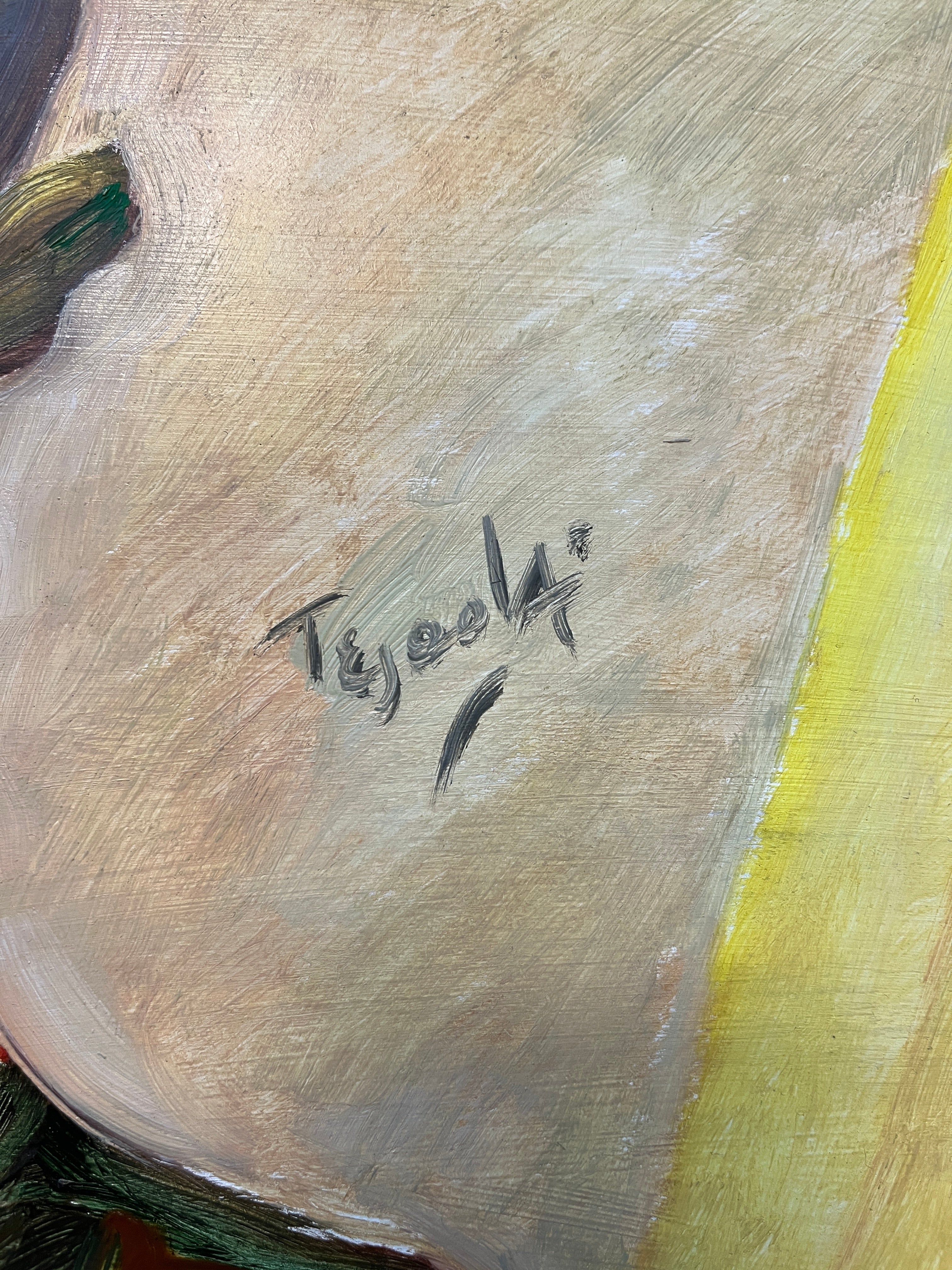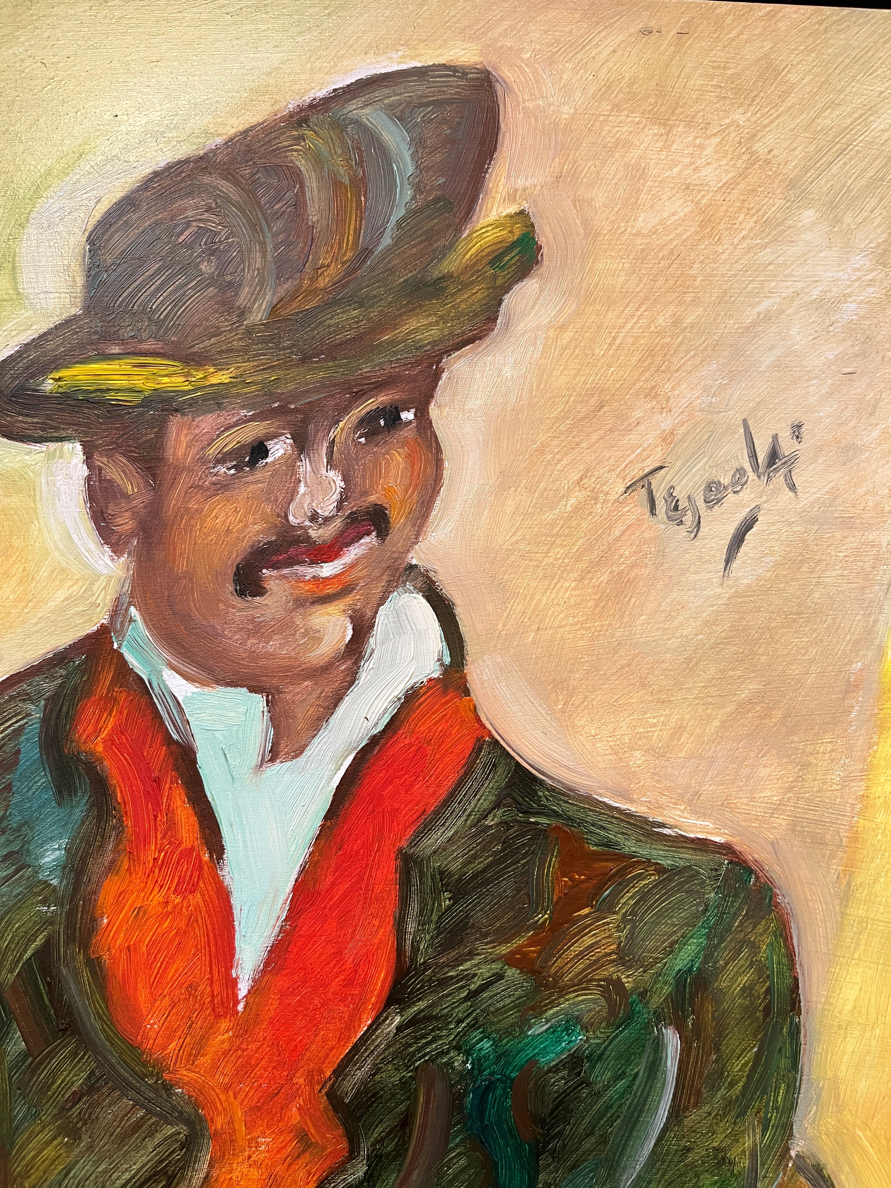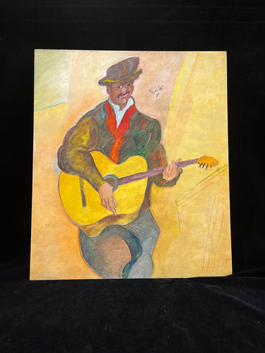 Luís Tejada - Óleo sobre cholguan 'Guitarrista sonriente'