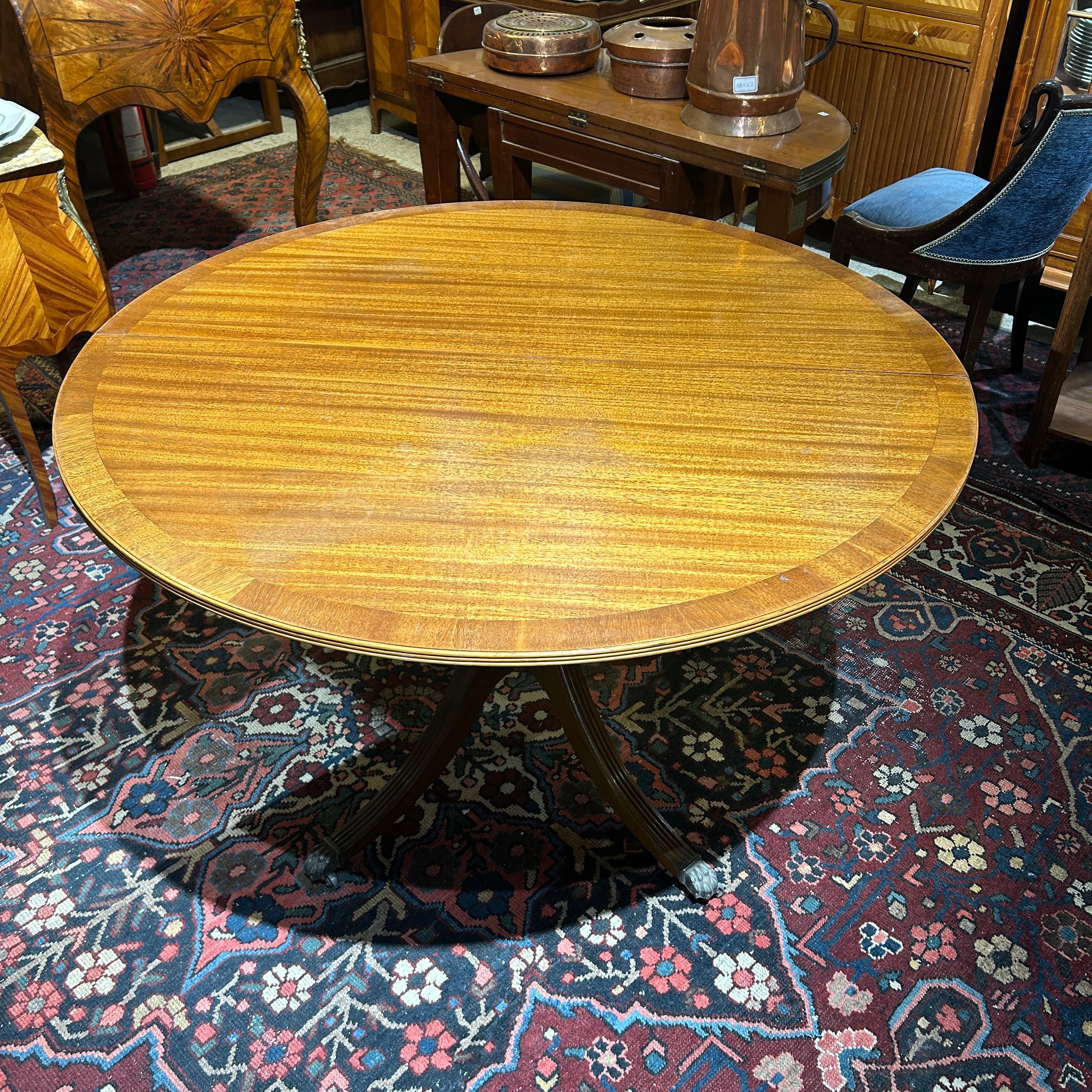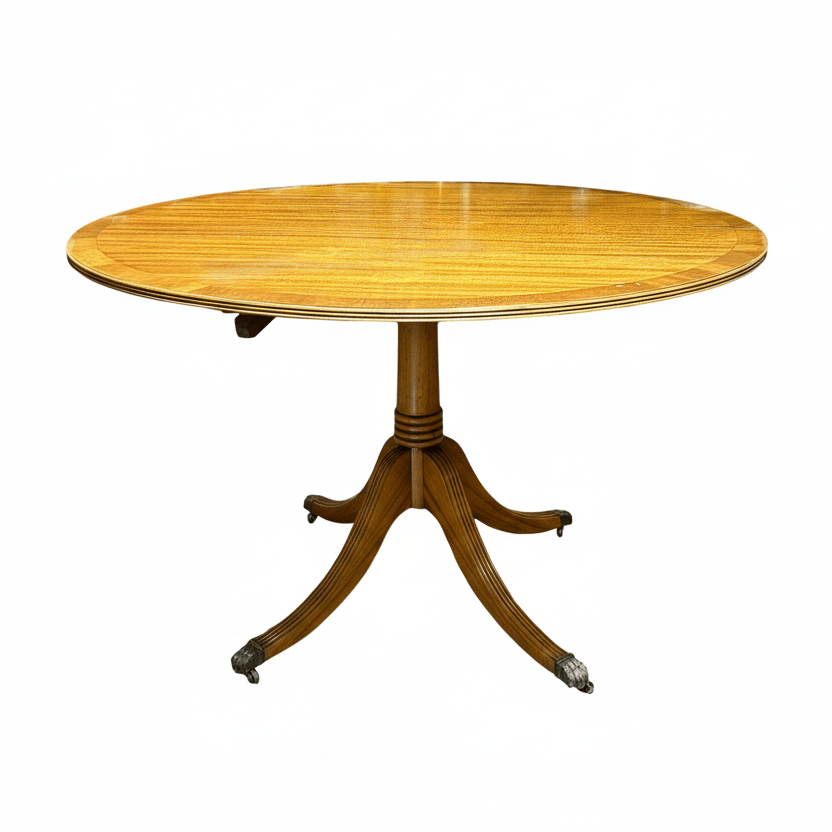 Mesa inglesa redonda Edwardian caoba rubia patas de León en bronce